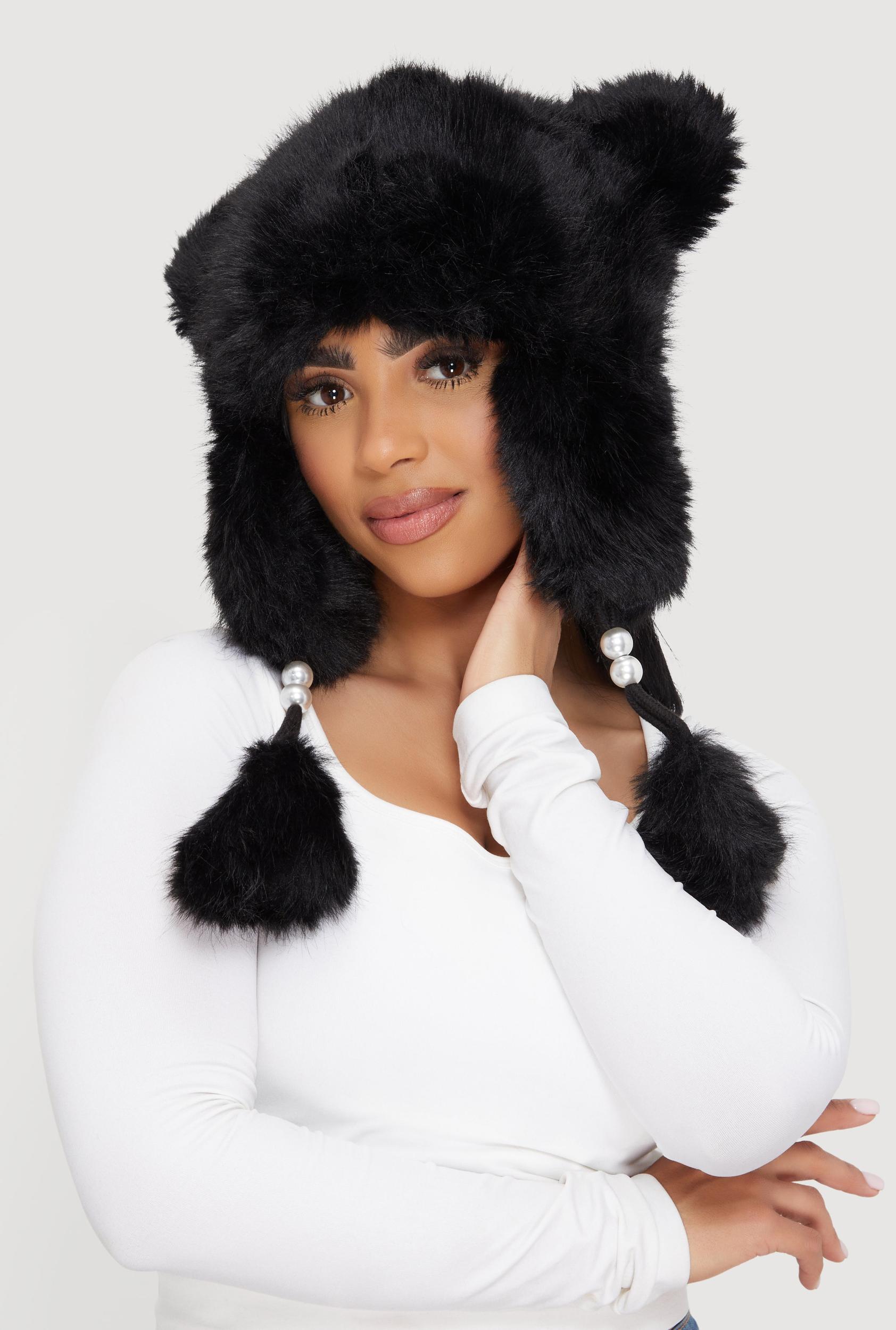 Cozy up your winter look with the Faux Fur Bear Ears Trapper Hat. This playful and stylish accessory adds a fun twist to your casual outerwear while keeping you warm and snug. Made from soft faux fur, it’s perfect for chilly days when you want to stay comfy without sacrificing cuteness. Soft and warm faux fur material for ultimate comfort Adorable bear ears design adds a playful vibe Classic trapper hat style perfect for casual outings Solid color for easy pairing with any outfit Lightweight and cozy, ideal for chilly weather MeasurementsCircumference: 24 inContent and Care Material: 100% Polyester Faux fur Country Of Origin: China Rainbow Item Number 3119067445463
