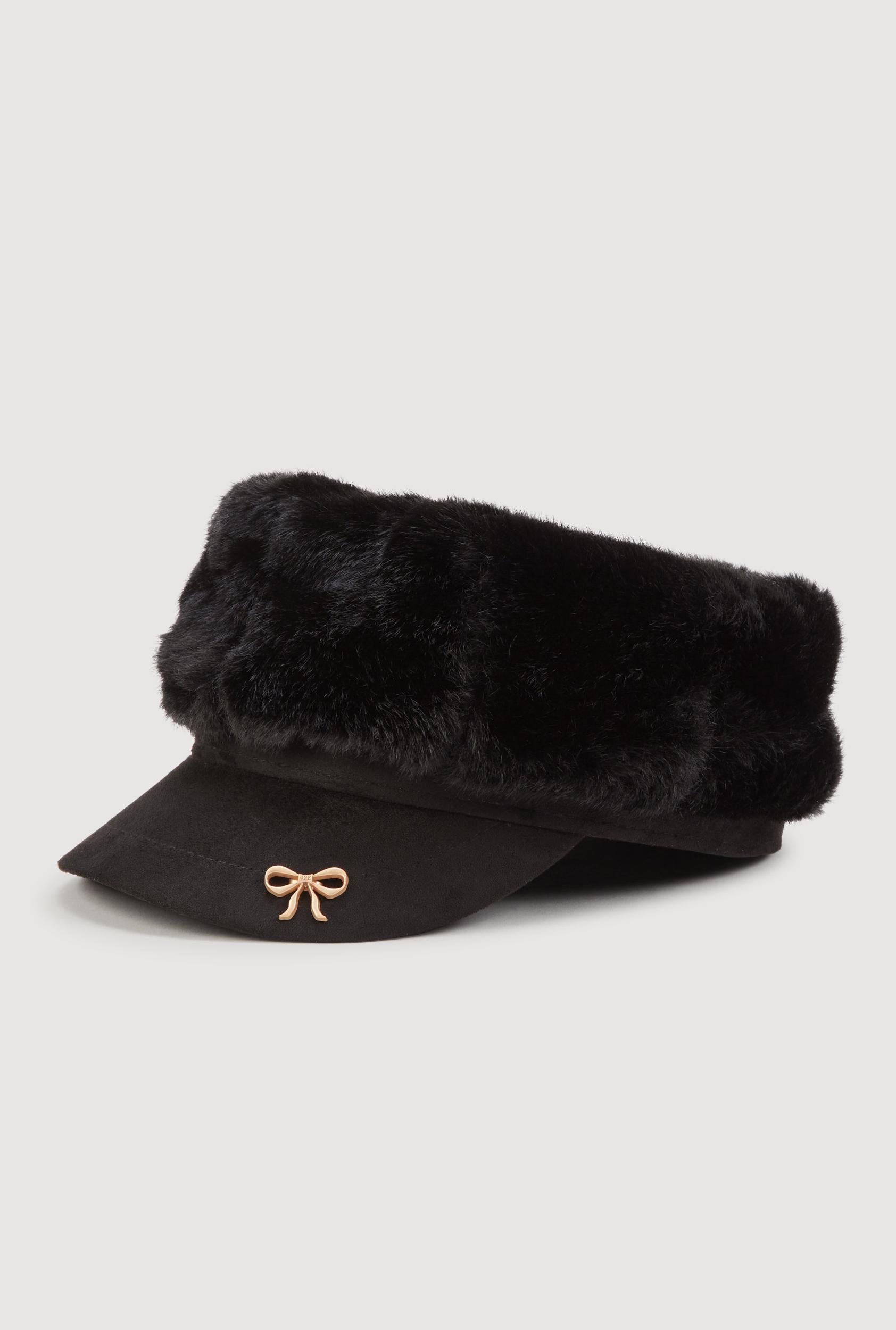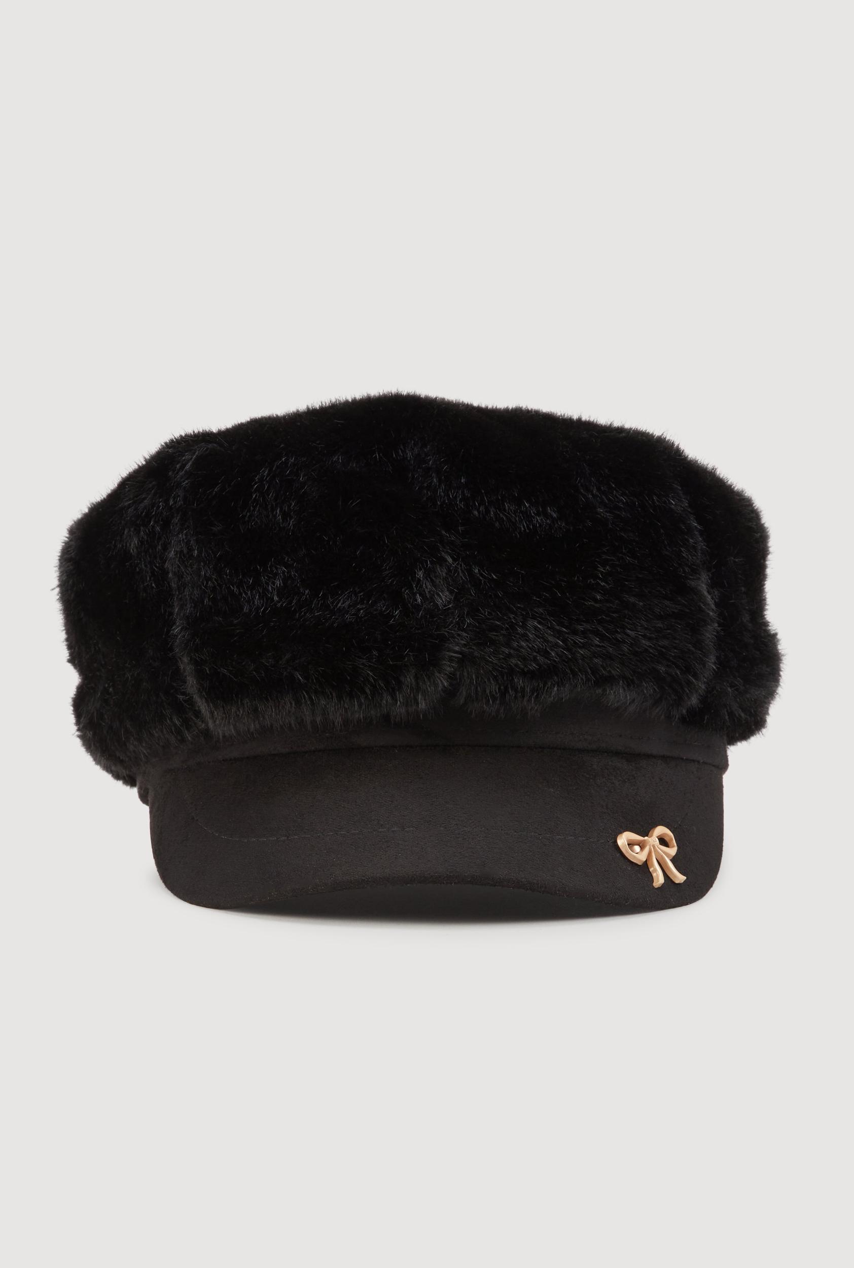 Step up your accessory game with this Faux Fur Cabbie Hat with Bow Detail. Perfect for adding a cozy yet stylish touch to any casual outfit, this hat blends soft faux fur with a playful metallic bow that catches the eye. Whether you're heading out for a coffee run or meeting friends, this cabbie hat keeps you warm and on-trend without breaking the bank. Made from plush faux fur for a soft and warm feel Adorned with a metallic bow for a cute and unique flair Solid color design makes it easy to pair with any casual look Perfect for everyday wear during cooler seasons Affordable fashion that elevates your style effortlessly MeasurementsCircumference: 24 inContent and Care Material: 100% Faux Fur Polyester, TRIM: 100% Polyester Country Of Origin: China Rainbow Item Number 1129067445725 BLACK - 1129067445725001