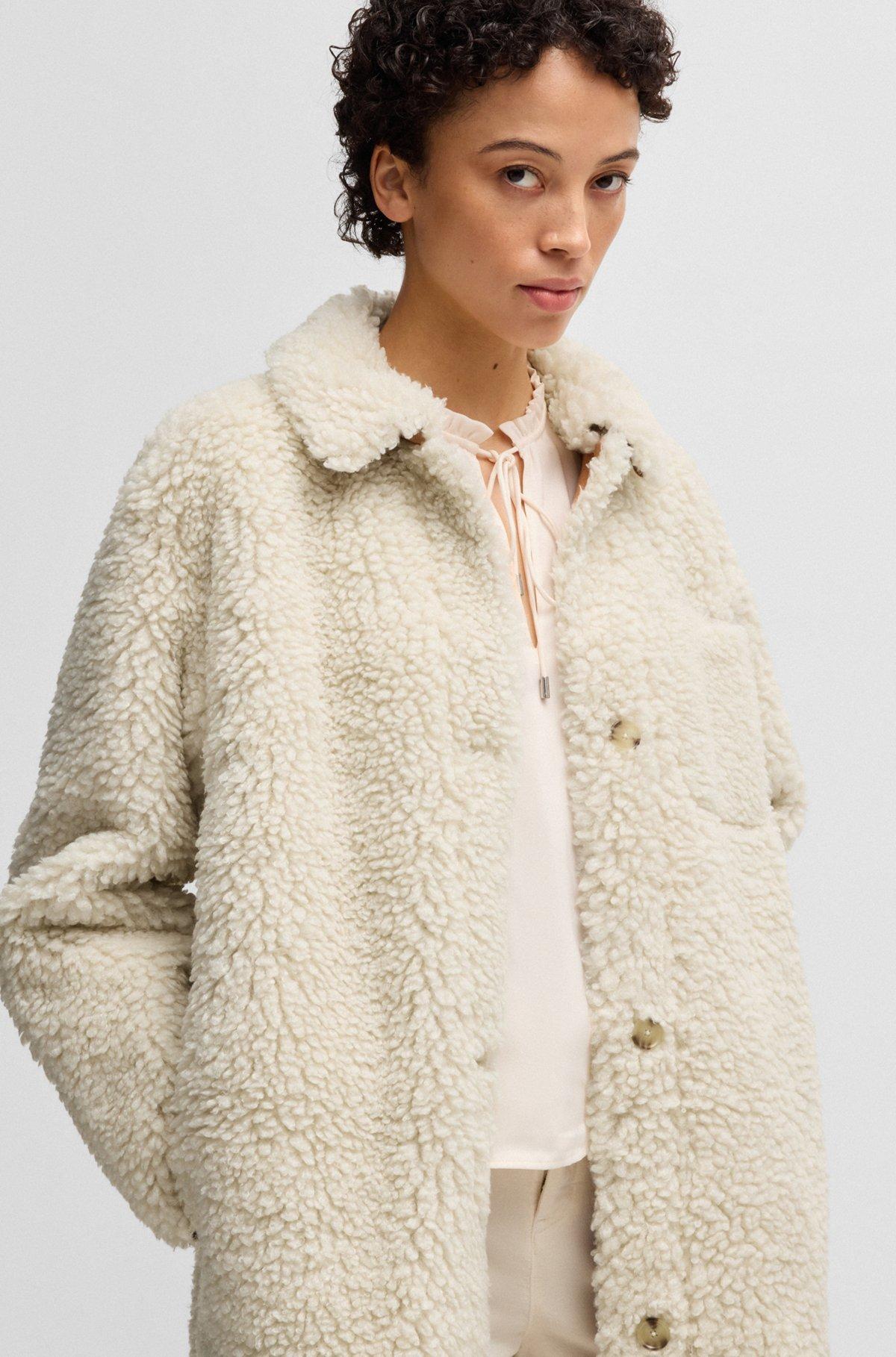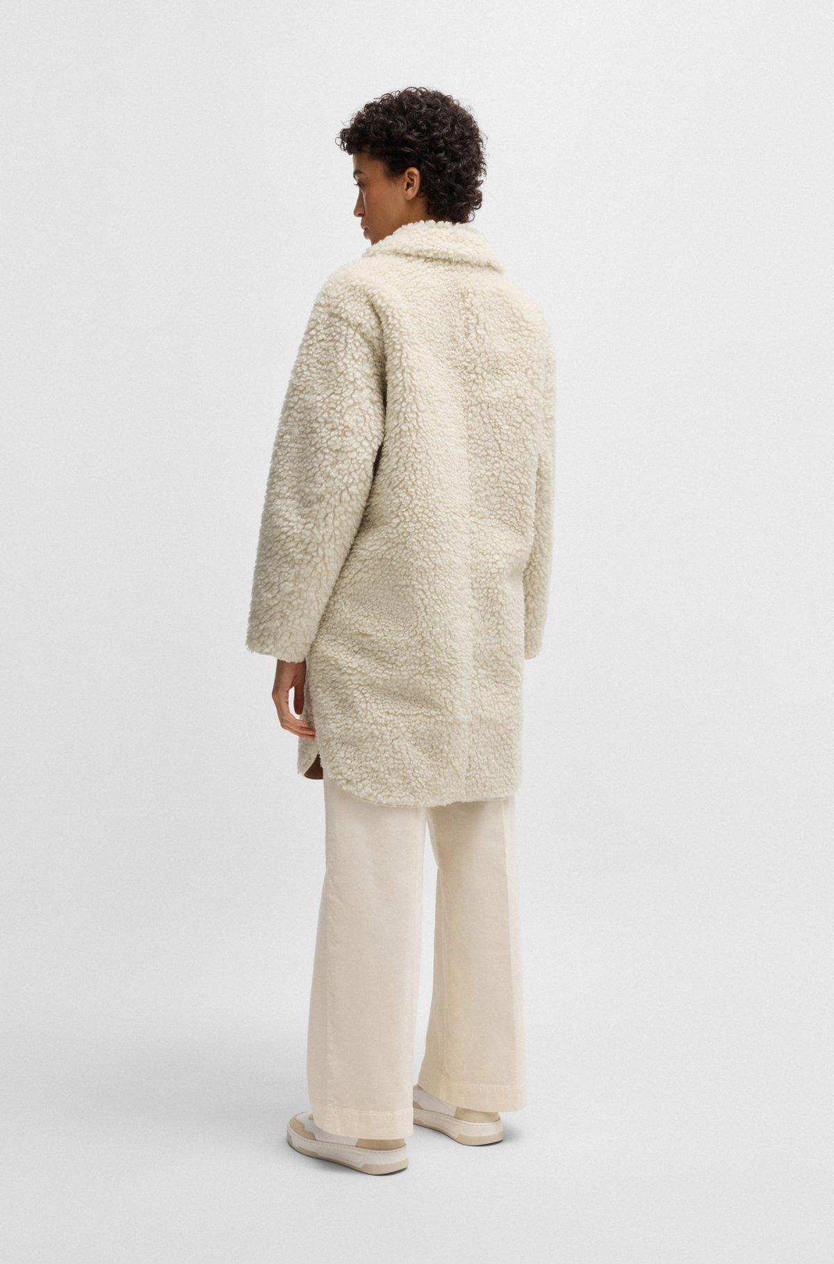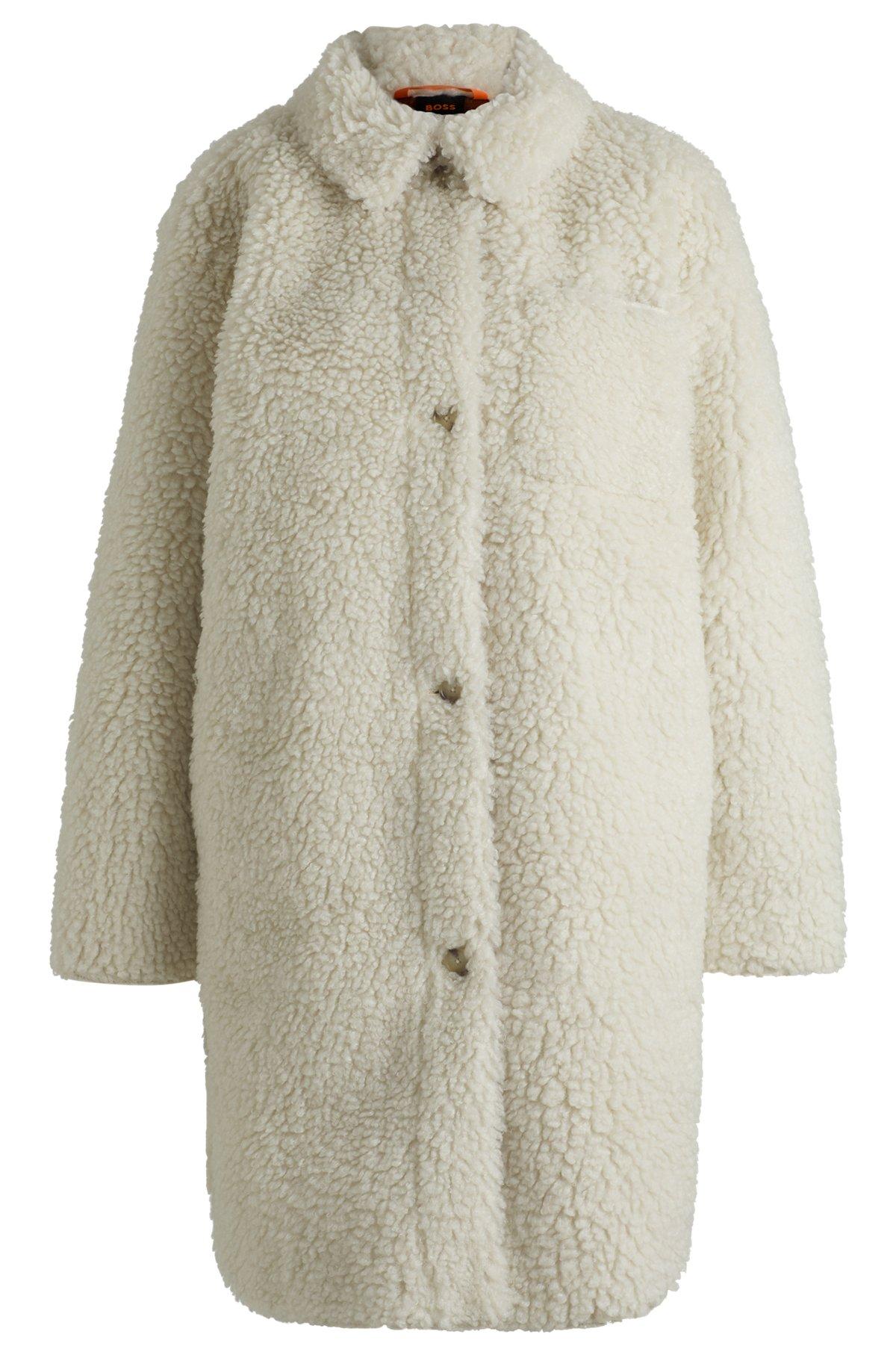 A distinctive coat by BOSS. This elegant piece is crafted in faux fur with a plush feel and features a chest pocket.