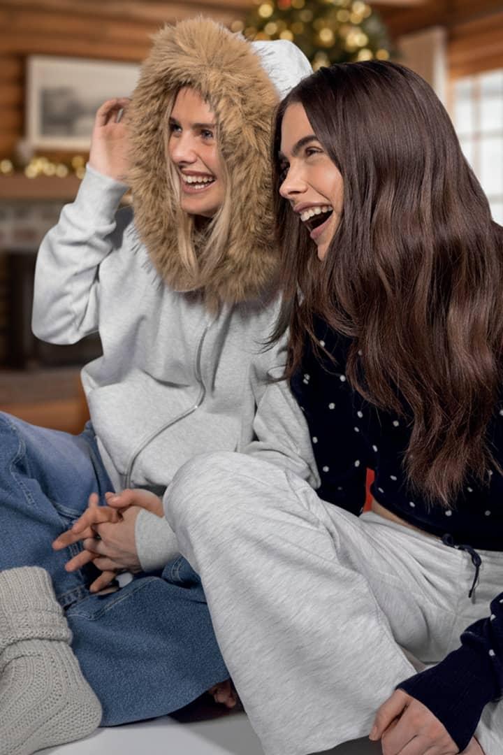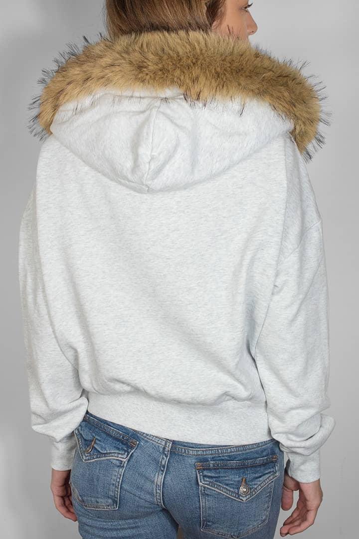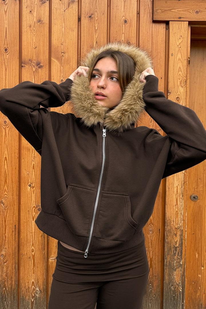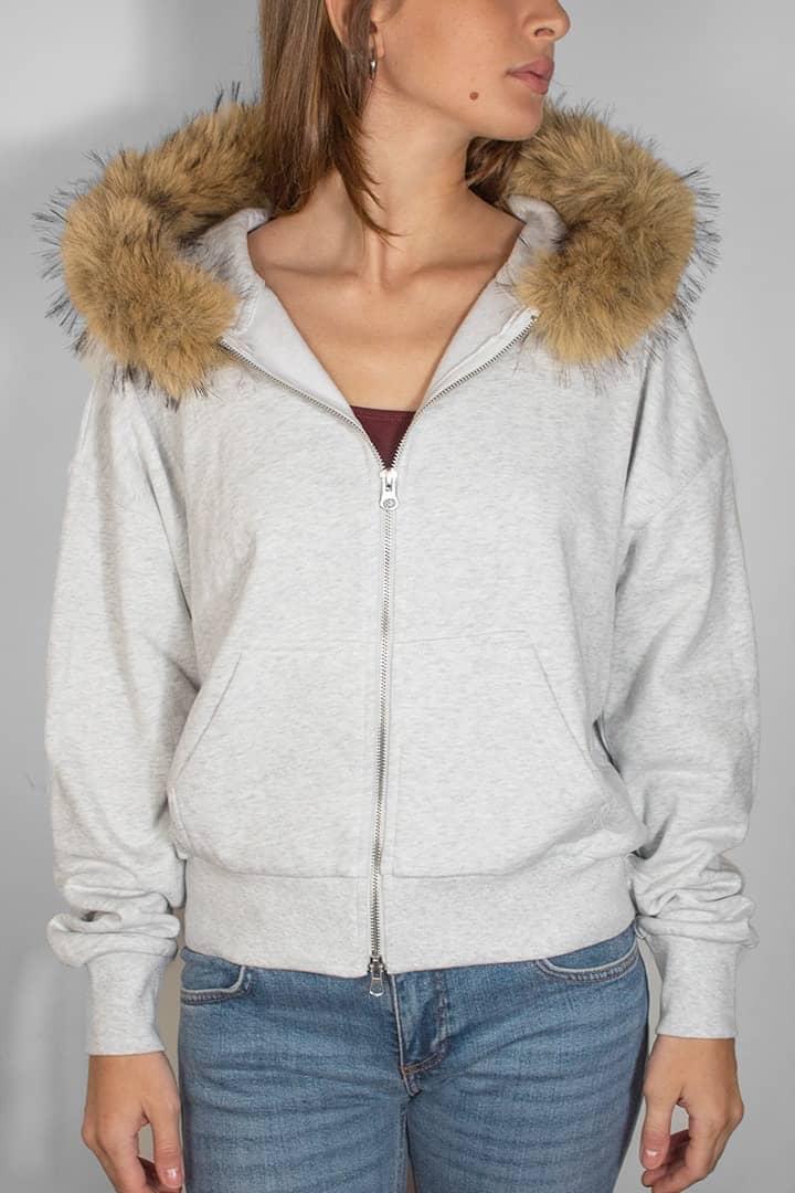 Hoodie with faux fur (made without animal-derived materials), front zip, front pockets, long sleeves, regular length, oversized fit.