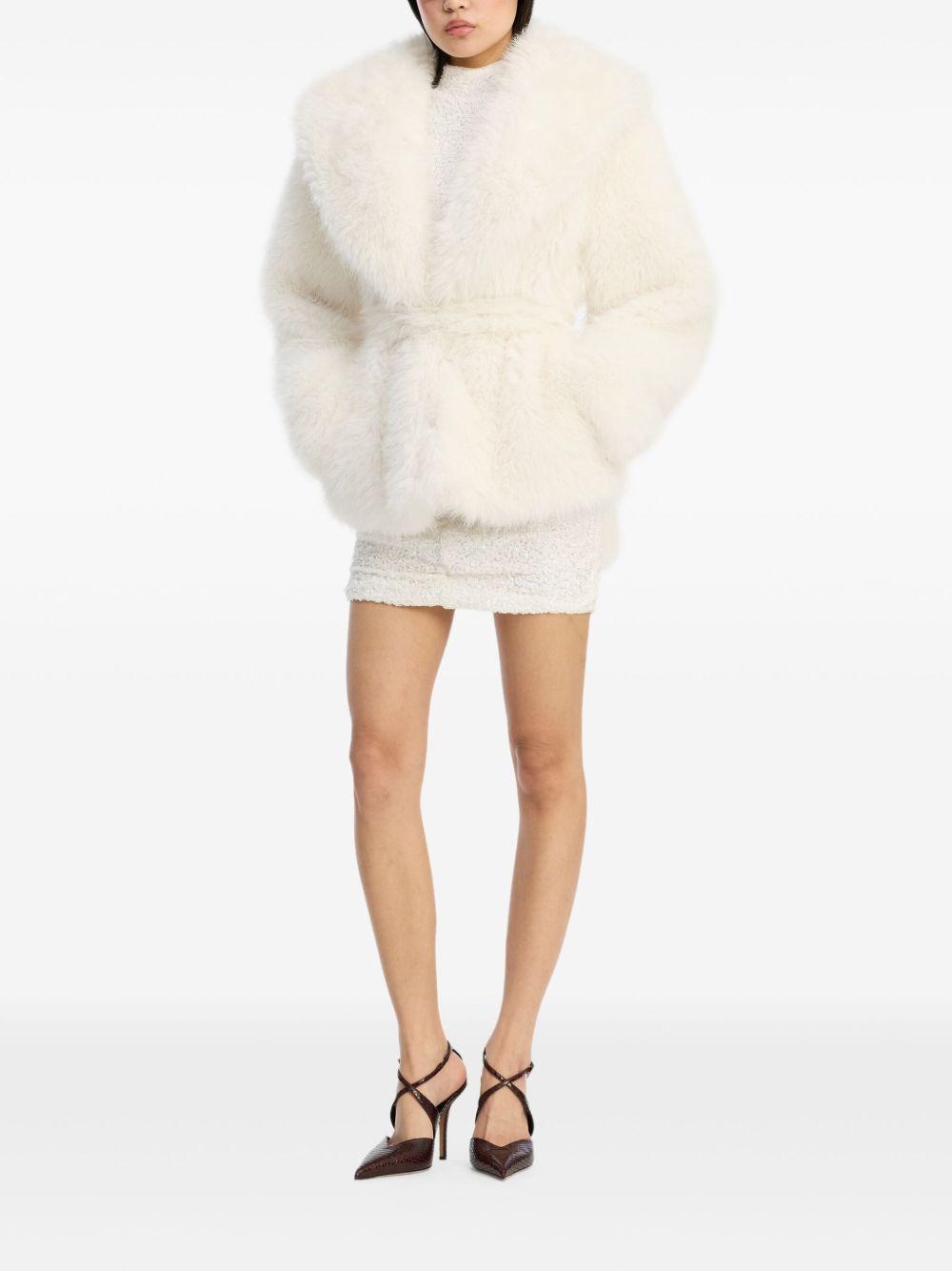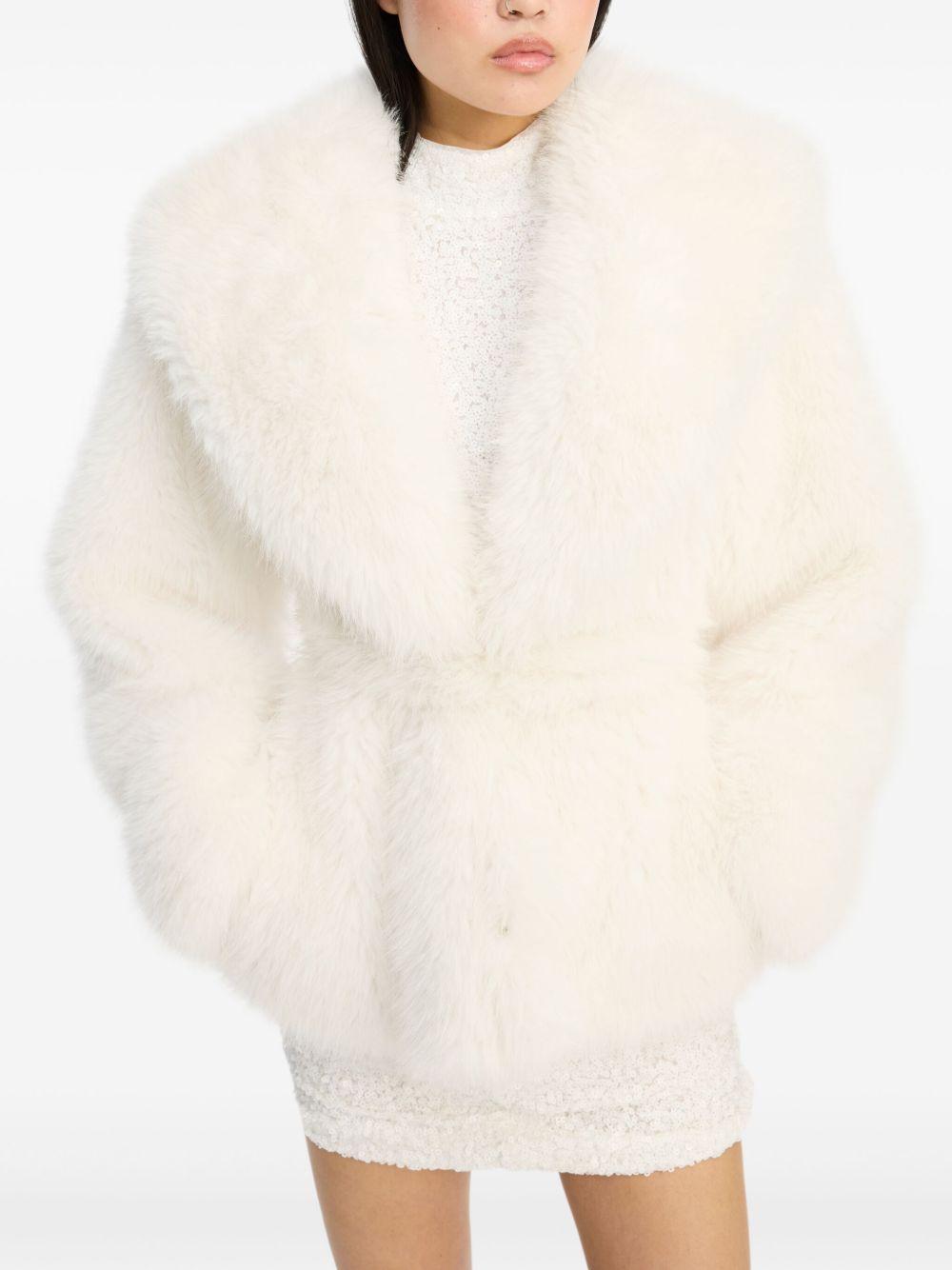 ROTATE BIRGER CHRISTENSEN faux-fur jacket | White | white | faux fur | shawl collar | tie fastening | long sleeves | Polyester/Polyester/Viscose | Faux Fur & Shearling Jackets | Jackets | Clothing | Women