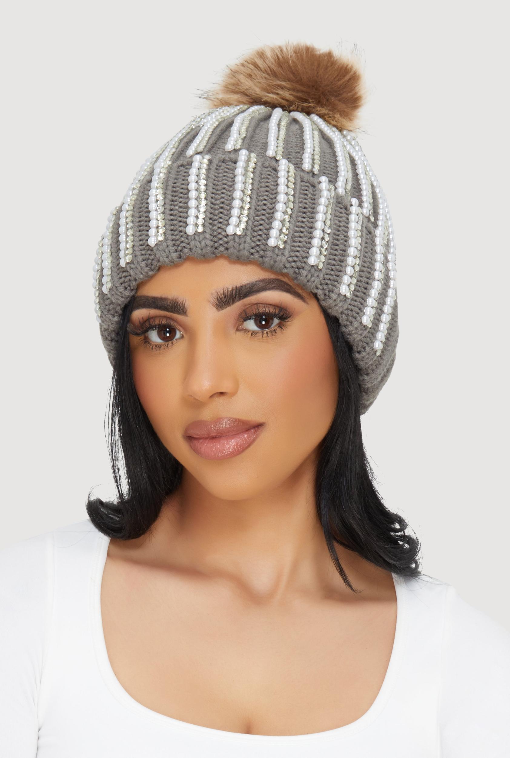 Stay cozy and chic with this Faux Fur Pom Pom Faux Pearl and Rhinestone Striped Beanie, featuring playful faux pearls and sparkling rhinestone stripes for a touch of glam. Perfect for casual days when you want to keep warm without sacrificing style, this beanie adds a fun and trendy twist to any outfit. Soft faux fur pom pom for a cute, fluffy finish Decorative faux pearls and rhinestones for eye-catching sparkle Striped design adds a stylish flair Comfortable fit ideal for everyday casual wear Lightweight and warm, perfect for chilly days MeasurementsCircumference: 24 inContent and Care Material: 100% Acrylic Country Of Origin: China Rainbow Item Number 3119071212152 GRAY - 3119071212152005
