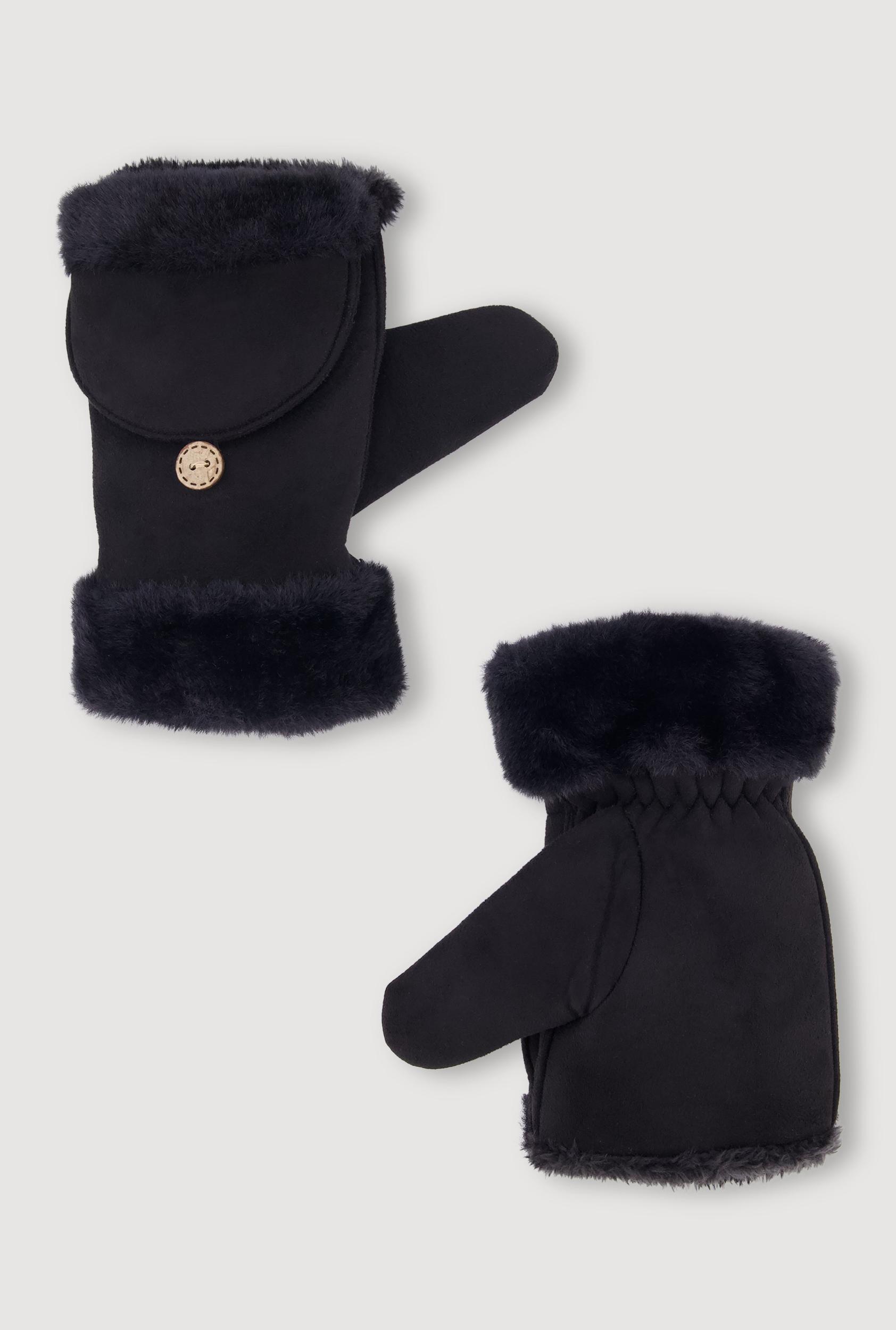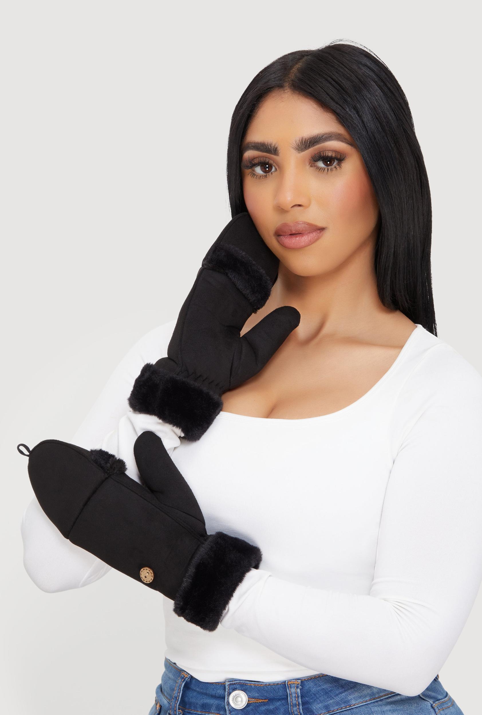 Stay cozy and stylish with these Faux Fur Trim Fold Over Mittens, the perfect accessory to keep your hands warm during chilly days. Crafted with soft faux suede and topped with plush faux fur trim, these mittens add a touch of casual cool to any cold weather look. The fold-over design lets you switch up your style and warmth level effortlessly, making them a must-have for your winter wardrobe. Soft faux suede material for comfortable wear Luxurious faux fur trim adds a trendy touch Fold-over design for versatile styling and extra warmth Solid color for easy pairing with any outfit Perfect for casual cold weather days Content and Care Material: 100% Polyester, FAUX FUR: 100% Polyester Care Instructions: Hand Wash Country Of Origin: China Rainbow Item Number 3121067445236