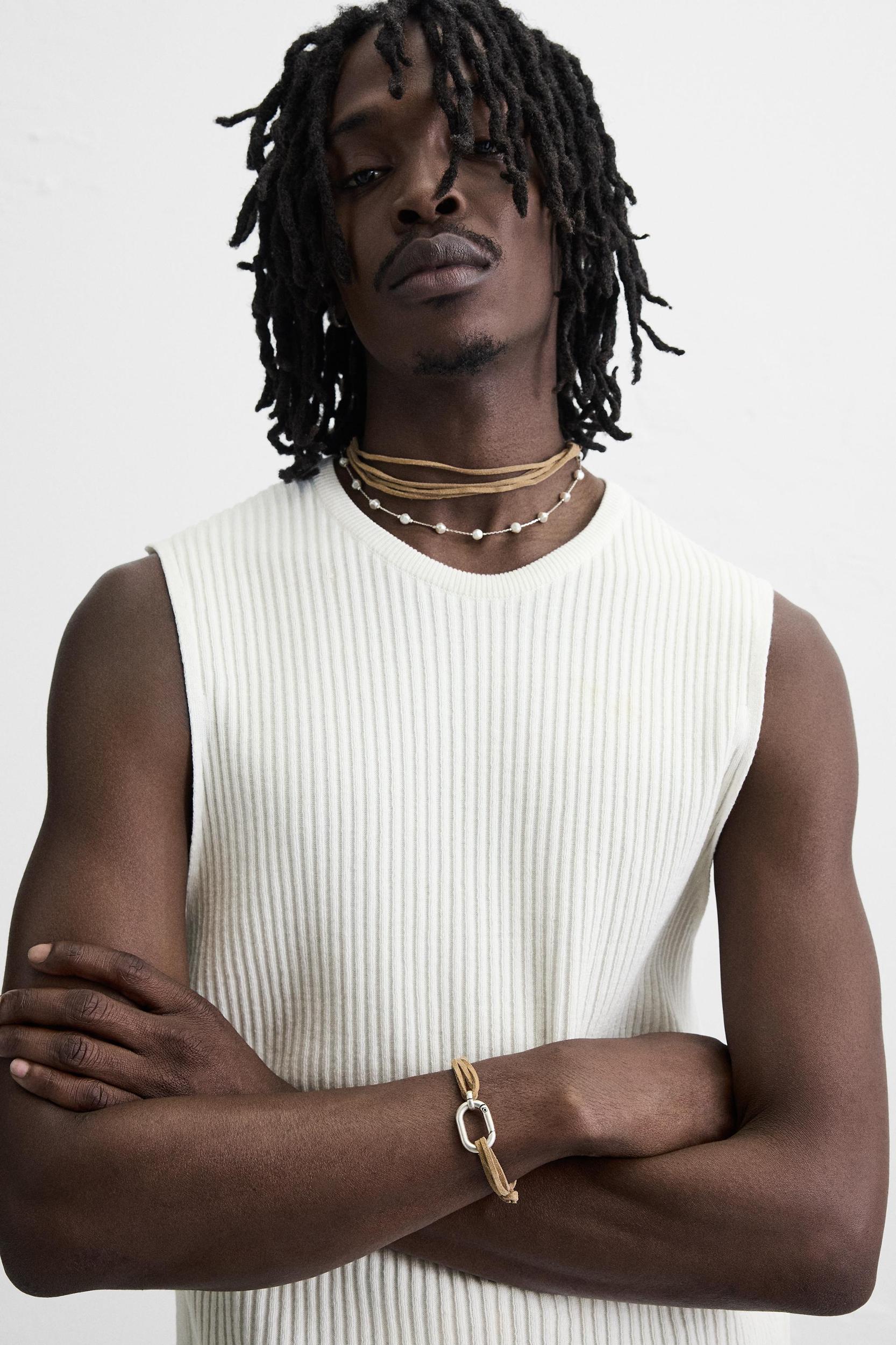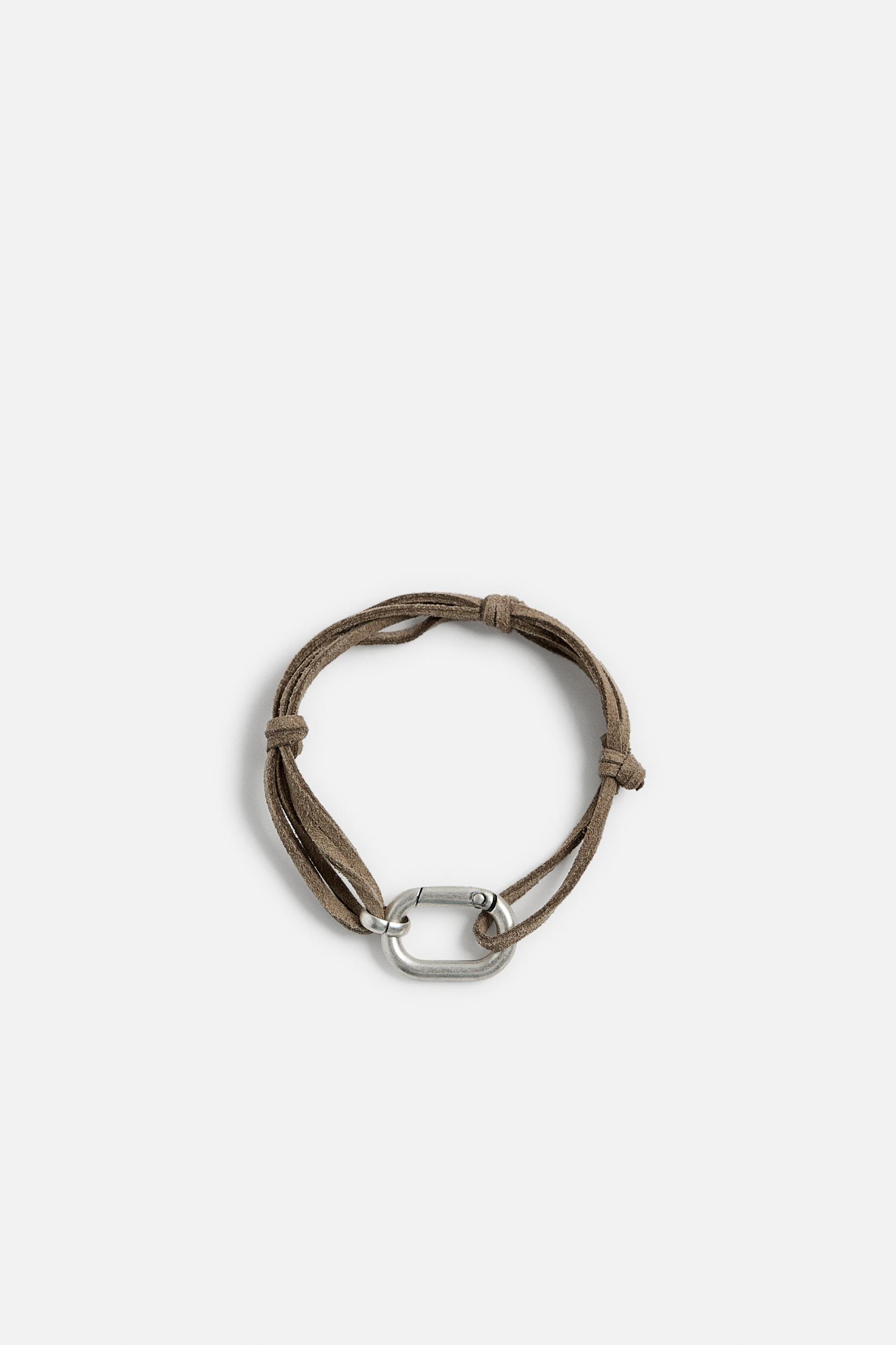 Adjustable bracelet featuring faux leather straps combined with a metal link finished with a 925 MM silver-plated coating. Lobster clasp closure.