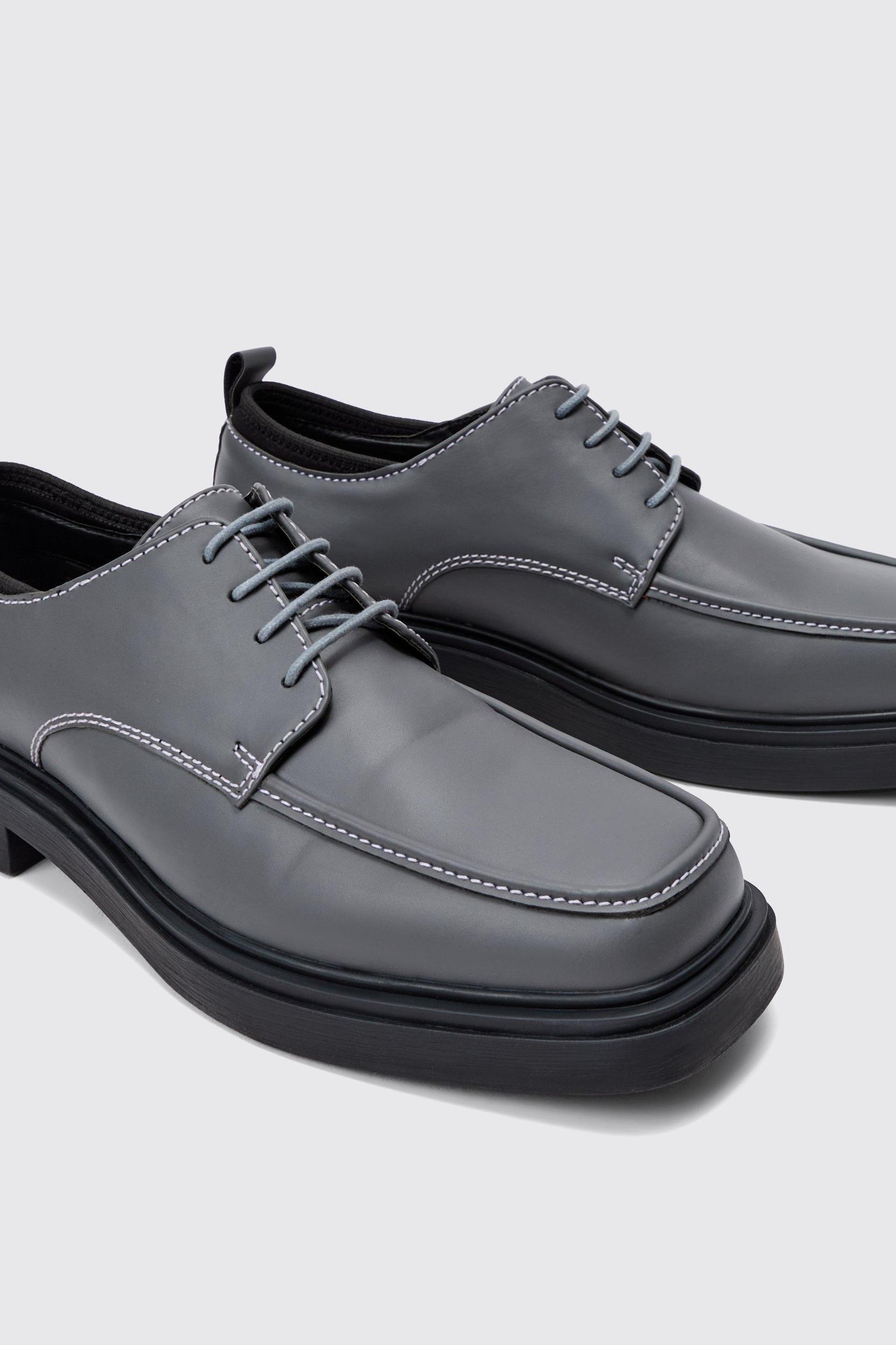 Smarten up any 'fit with a neat pair of men's shoes. Just as every man needs a slick suit in his fashion arsenal, no self-respecting gent can go without a handsome pair of smart shoes. BoohooMAN's range has got you covered for every occasion, from classic Chelsea boots and shoes to dapper brogues and laid-back loafers. Grab a pair in understated matte black for your day-to-day office wear, then level up to shiny brogues to go for that big promotion. For warm weather affairs, how about some faux suede tan lace ups to finish off your white and tan outfits? Whatever look you're going for, lock down the details with the perfect pair of smart shoes. Style: Derbies