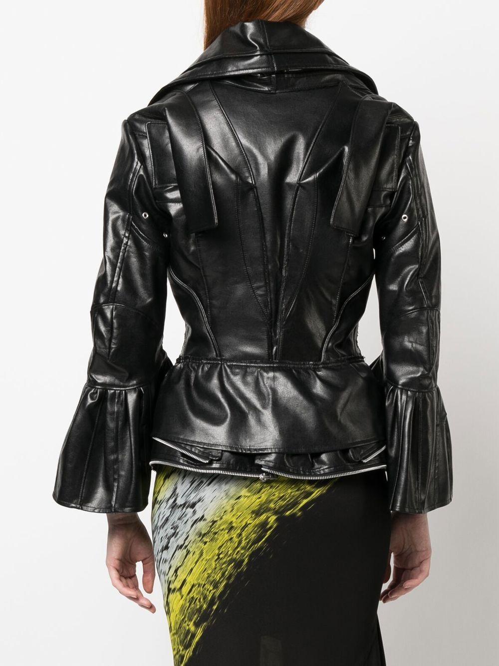 Junya Watanabe faux-leather flared fitted coat | Black | Polyurethane Resin/Polyester | Single Breasted Coats | Coats | Clothing | Women