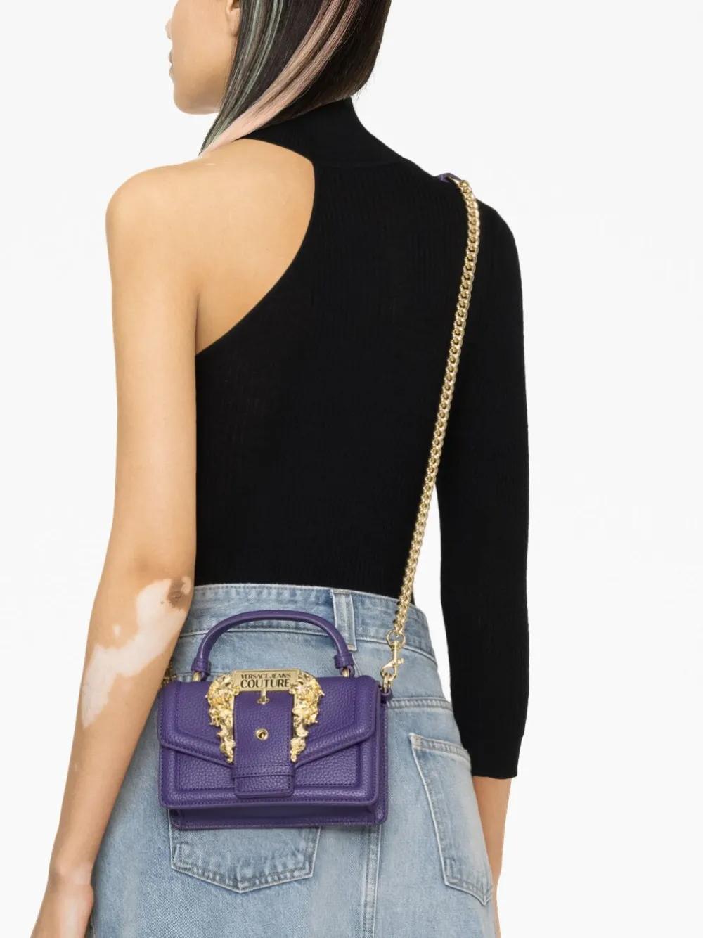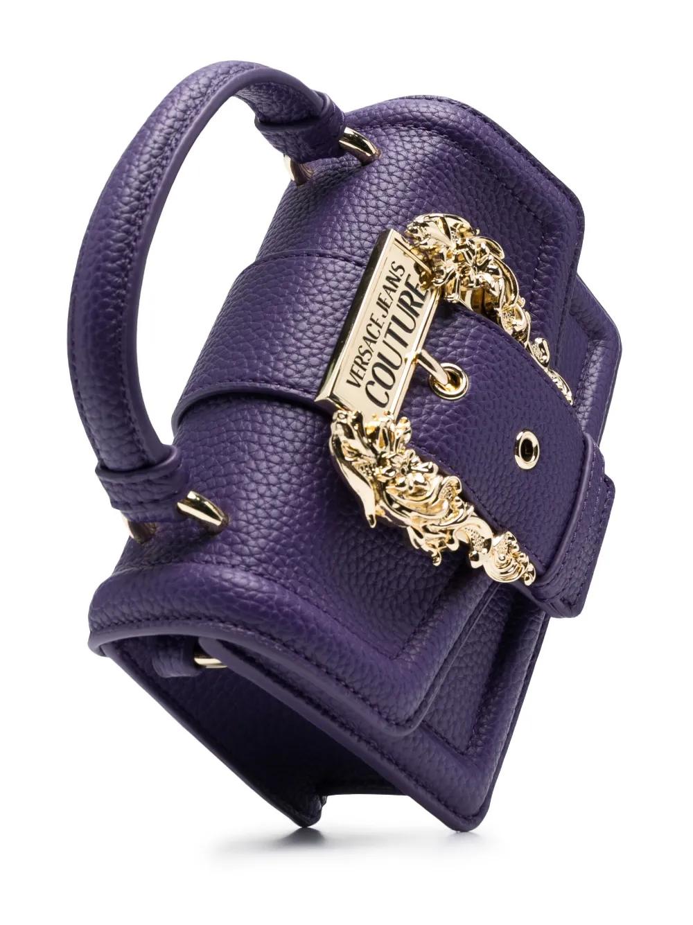 Versace Jeans Couture channels the mainline's high-octane spirit in this purple faux-leather bag. It's suspended from a detachable shoulder strap and decorated with a logo-engraved Baroque buckle in gold-tone hardware.