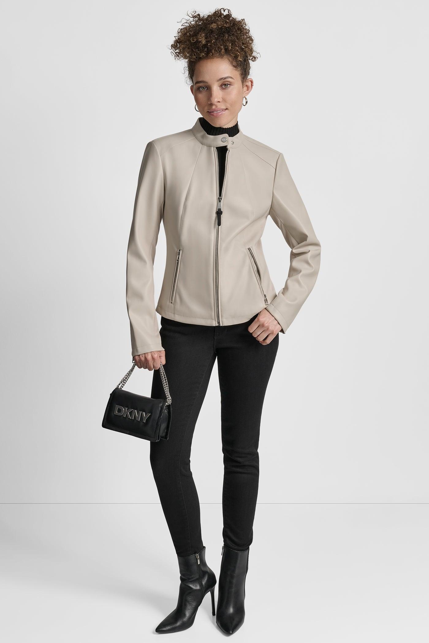 FAUX LEATHER MOTO JACKET WITH SNAP COLLAR