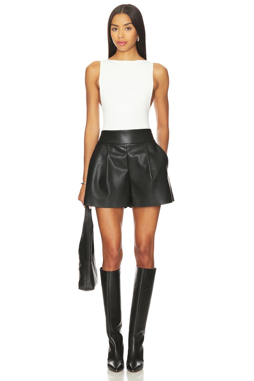 Leather textile. Dry clean recommended. Pull-on styling with elastic waistband. Front pintuck detail. Side seam pockets. Midweight leather fabric. Shorts measure approx 15" in length. Made in China. Revolve Style No. SUSA-WF33. Manufacturer Style No. coreltfp00045.