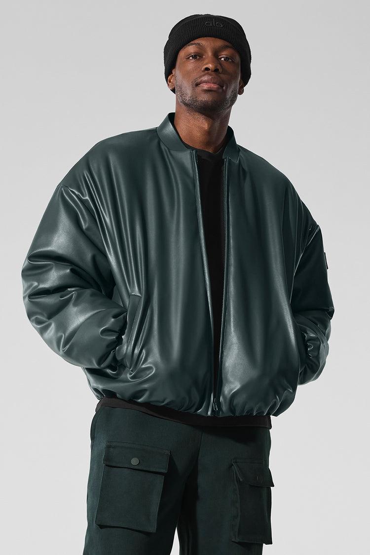 Faux Leather Premier Bomber - Charcoal Green Product Image