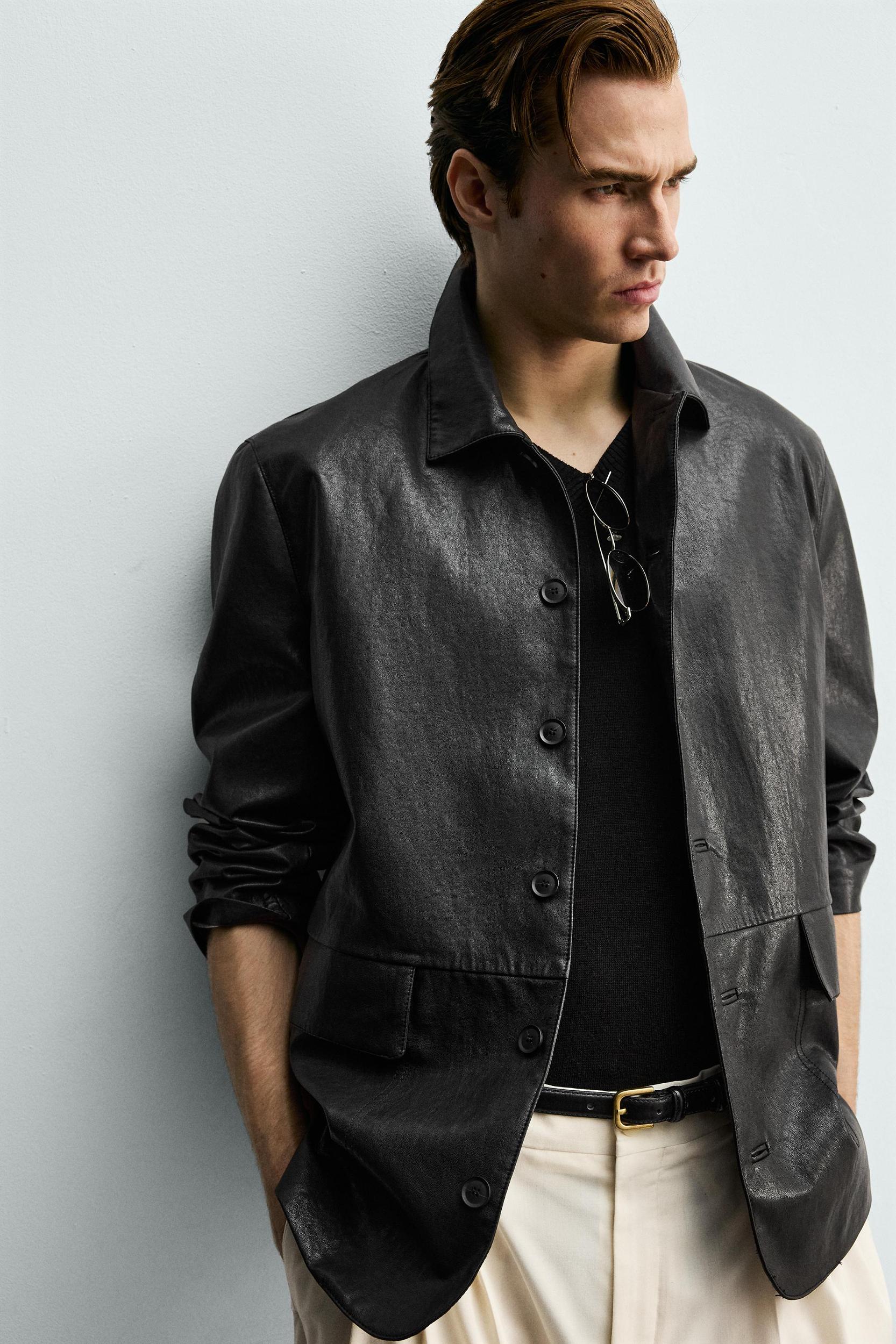 WASHED FAUX LEATHER OVERSHIRT