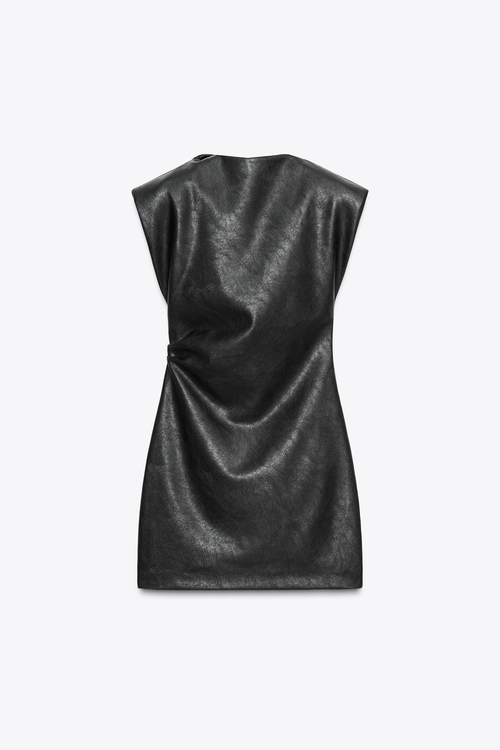 FAUX LEATHER SHORT DRESS WITH SHOULDER PADS