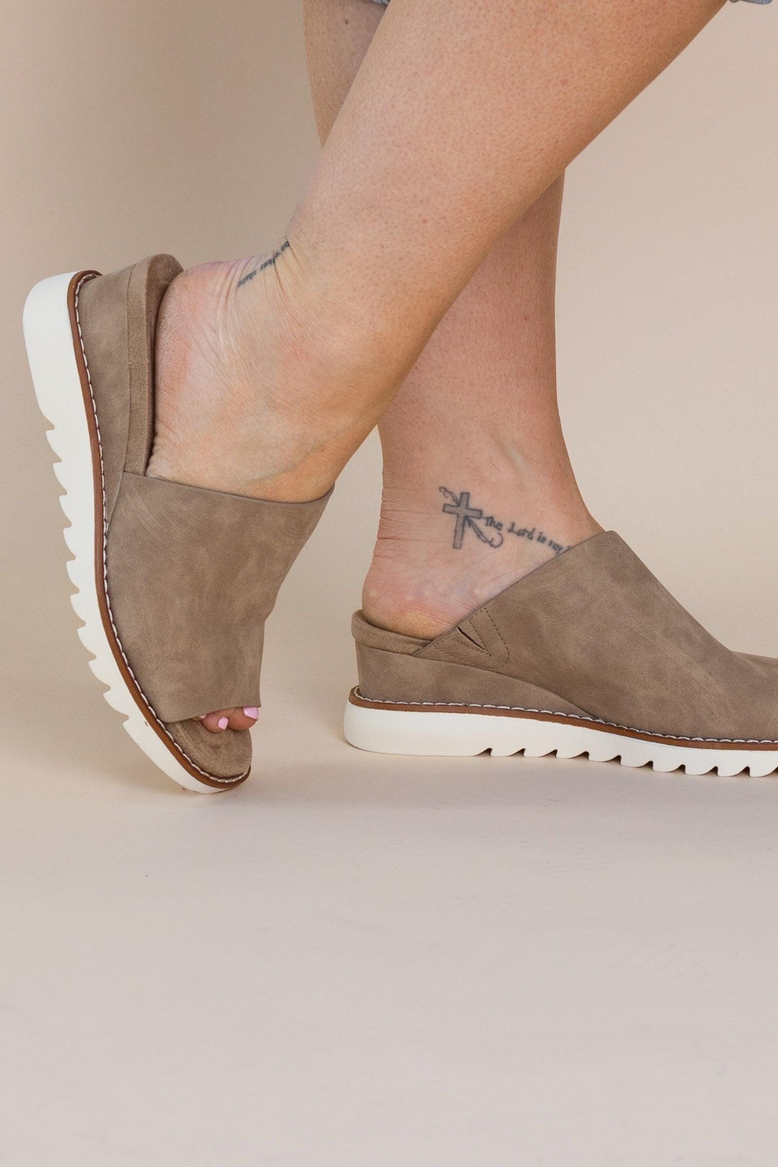 Product Details Colors: Whiskey and Tan with Ivory Sole/ Taupe and Tan with Ivory Sole Print: Solid Heel: 1" Platform with 1.5" Heel Other Details: Slip on Wedges Brand: Pierre Dumas Size and Fit True to Size