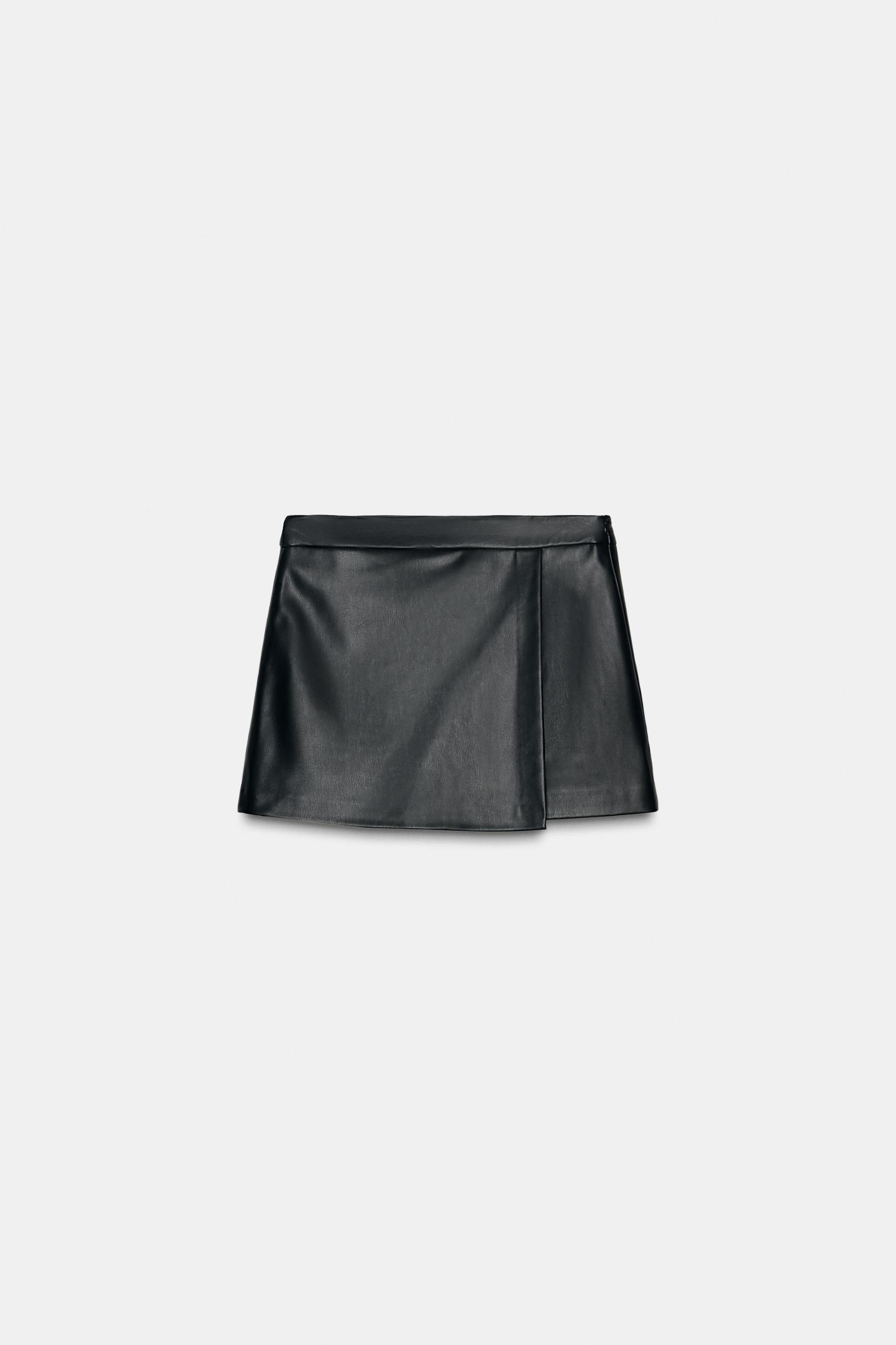 FAUX LEATHER SPLIT SKIRT WITH OVERLAP DETAIL