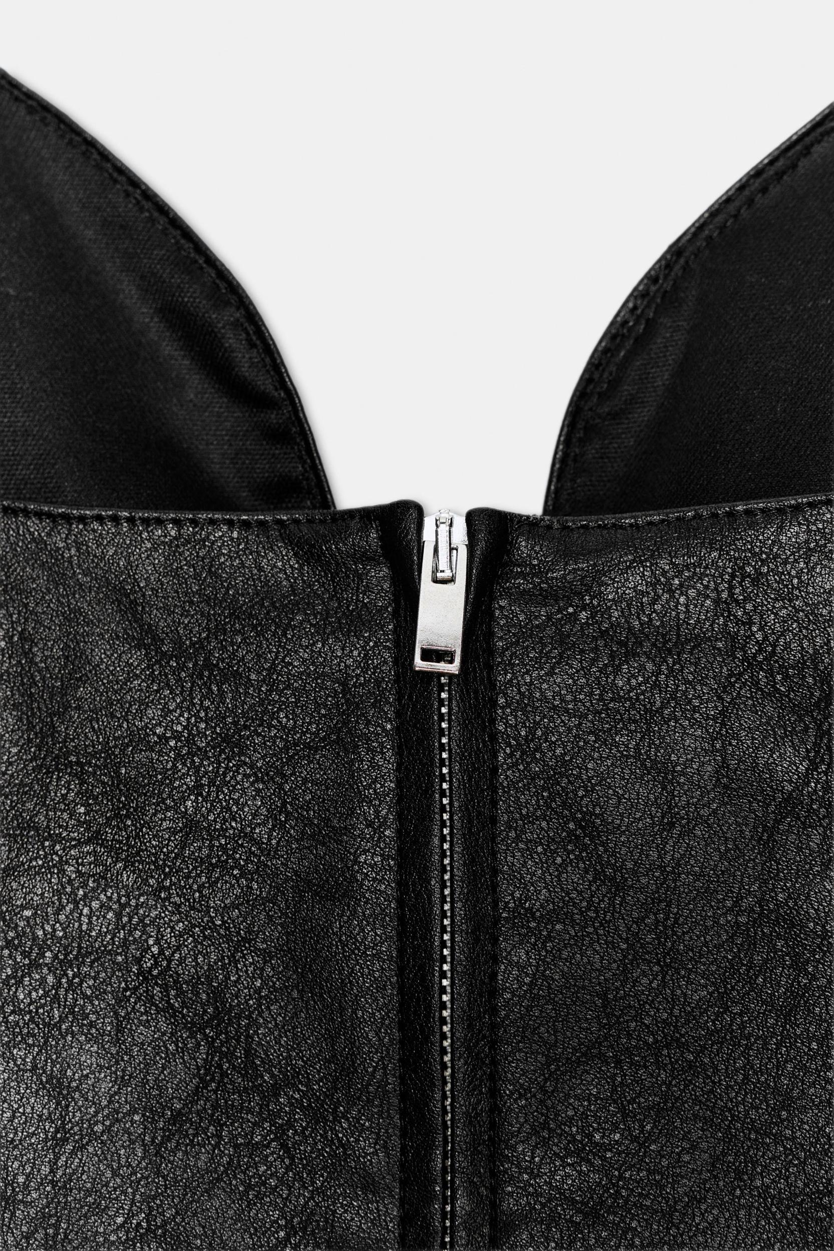 Sweetheart neckline top with tie detail and thin straps. Defined seams. Back zip closure.
