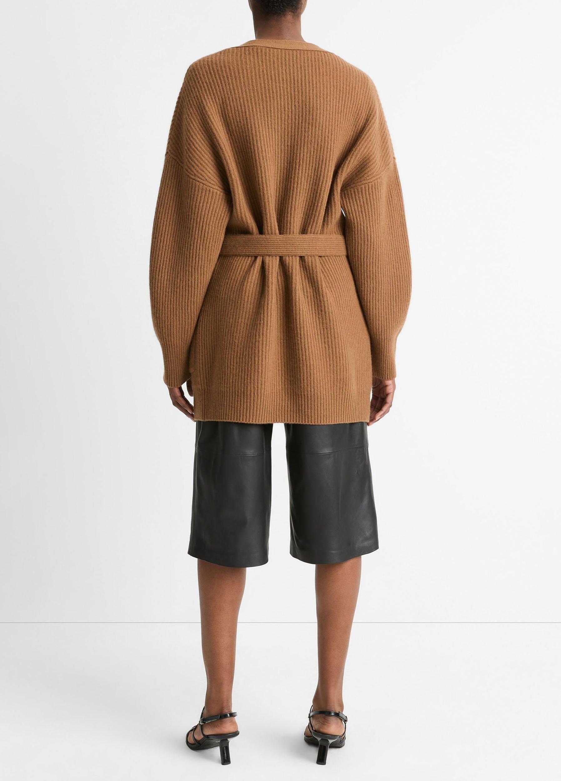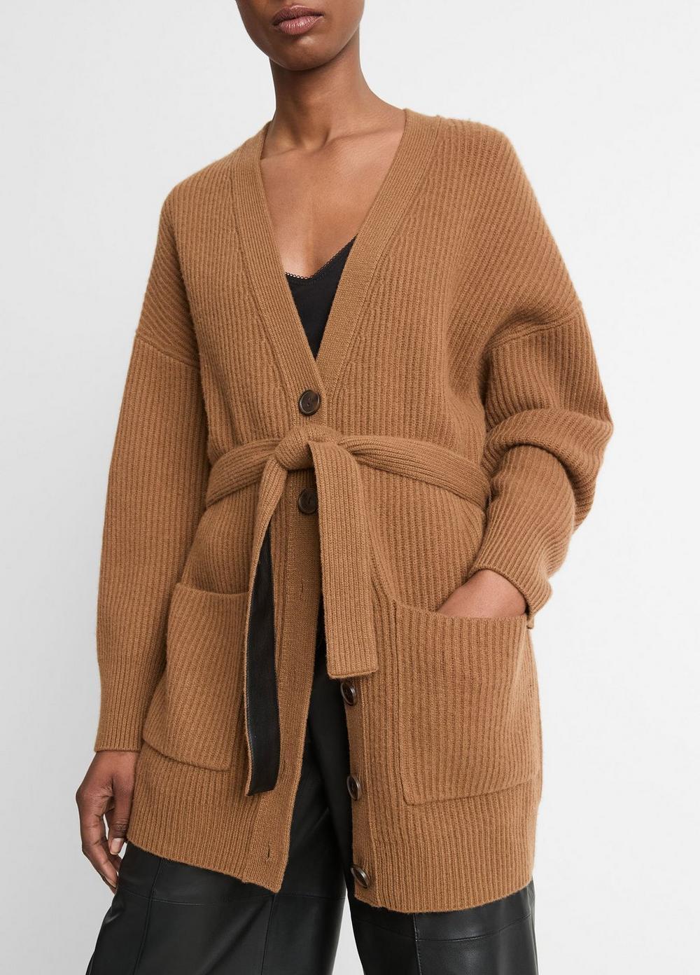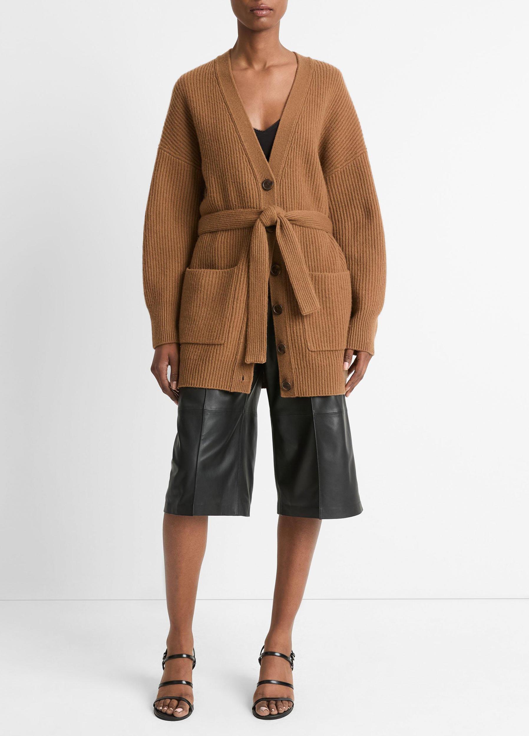 Faux-Leather-Trim Ribbed Wool-Cashmere Cardigan