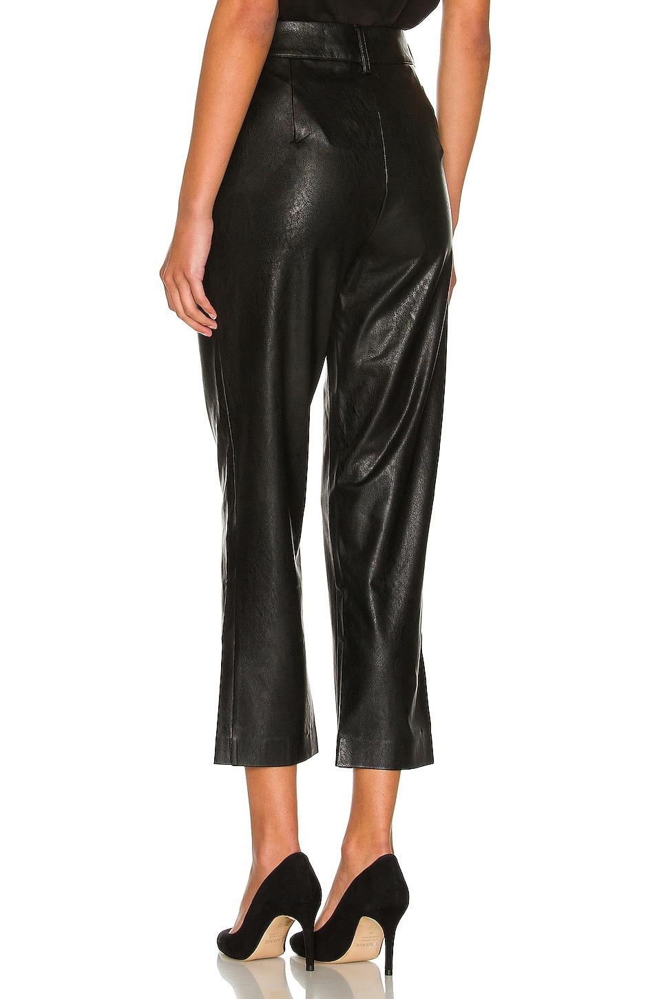 Self: 55% polyurethane, 44% viscose, 1% elastaneLining: 72% nylon, 28% elastane. Made in China. Machine wash. Zip fly with hook and bar closure. Side seam pockets. Faux leather fabric. 14" at the knee narrows to 12" at the leg opening. Revolve Style No. CMAN-WP64. Manufacturer Style No. SLG67.