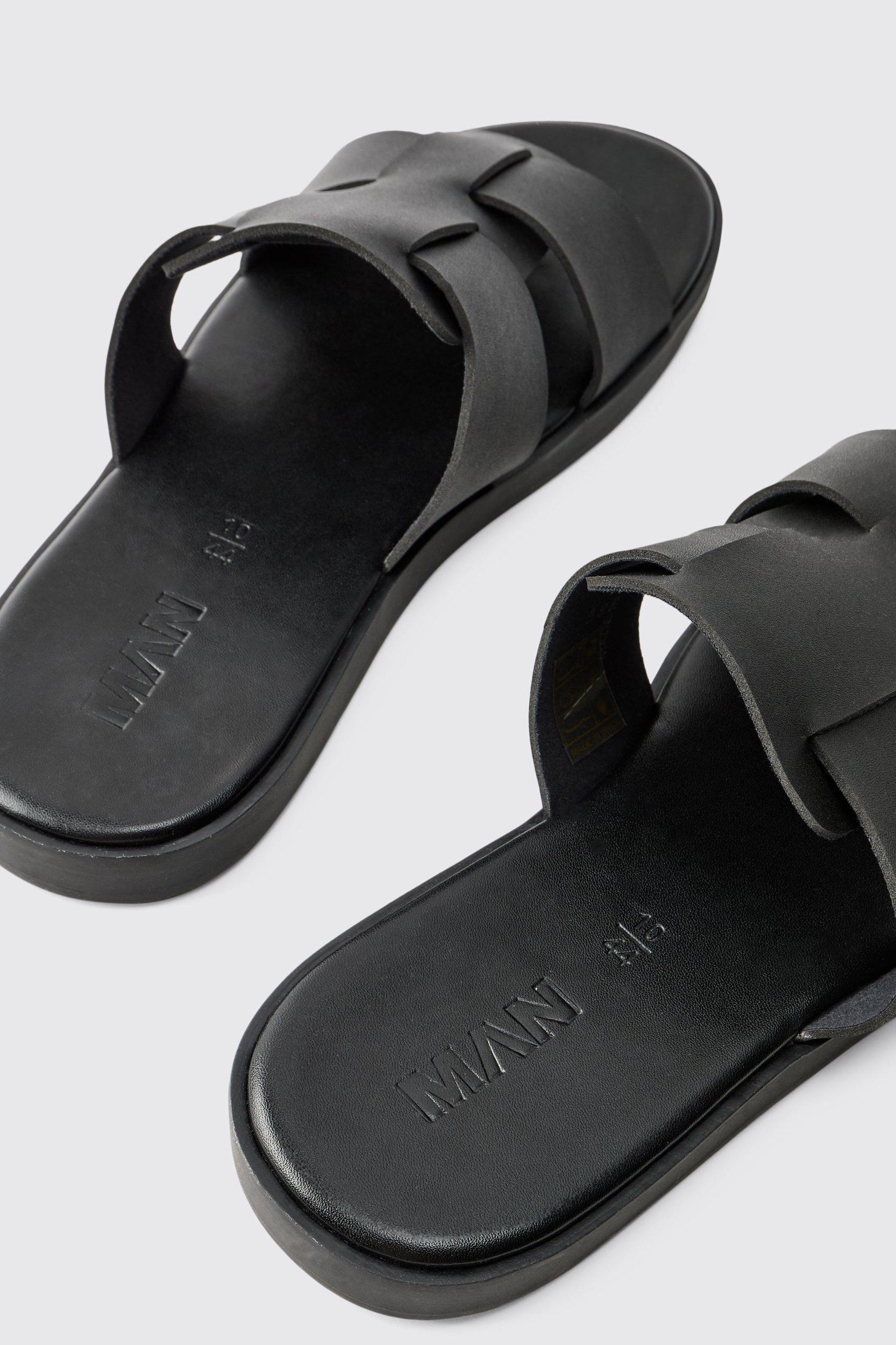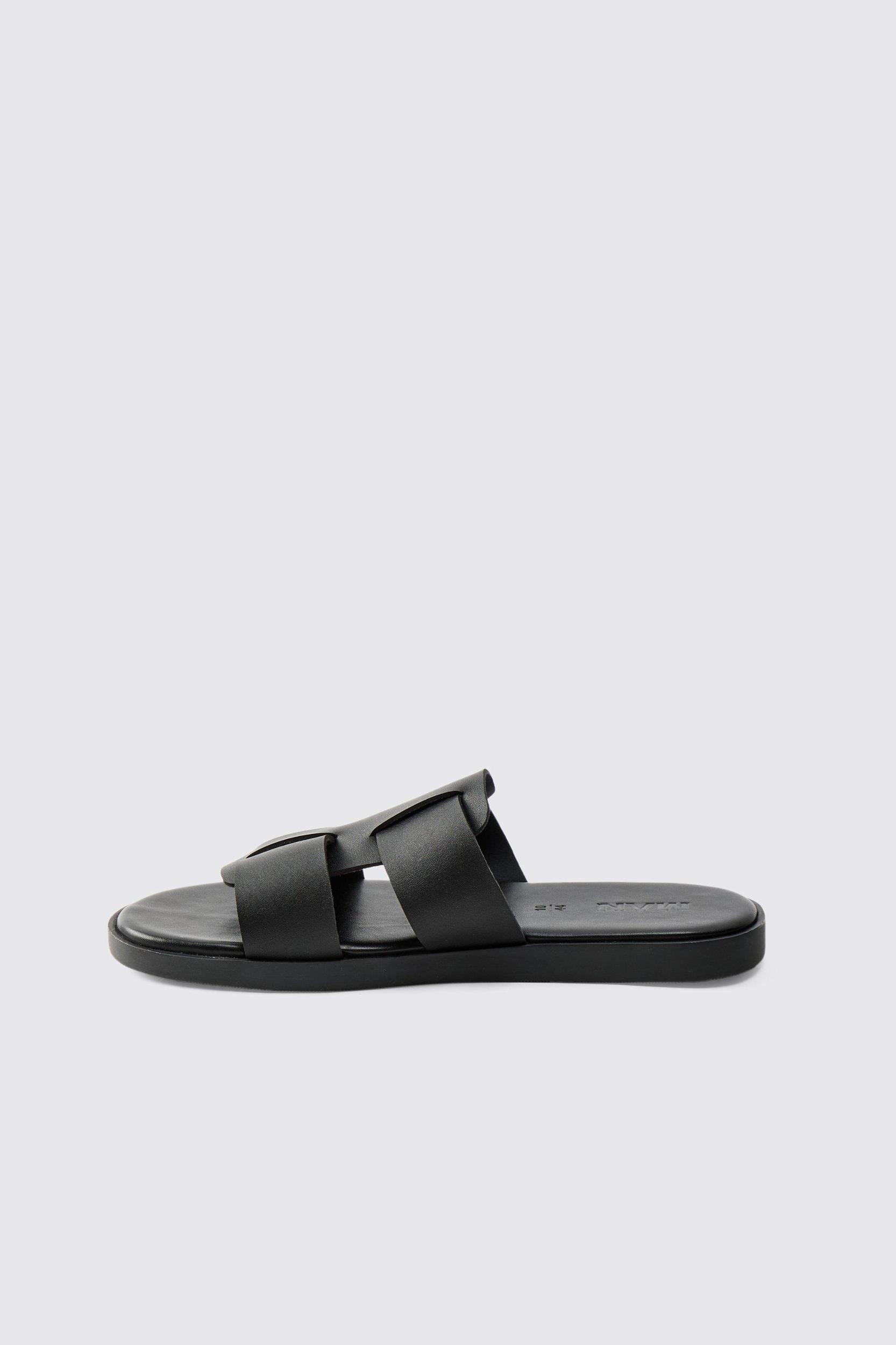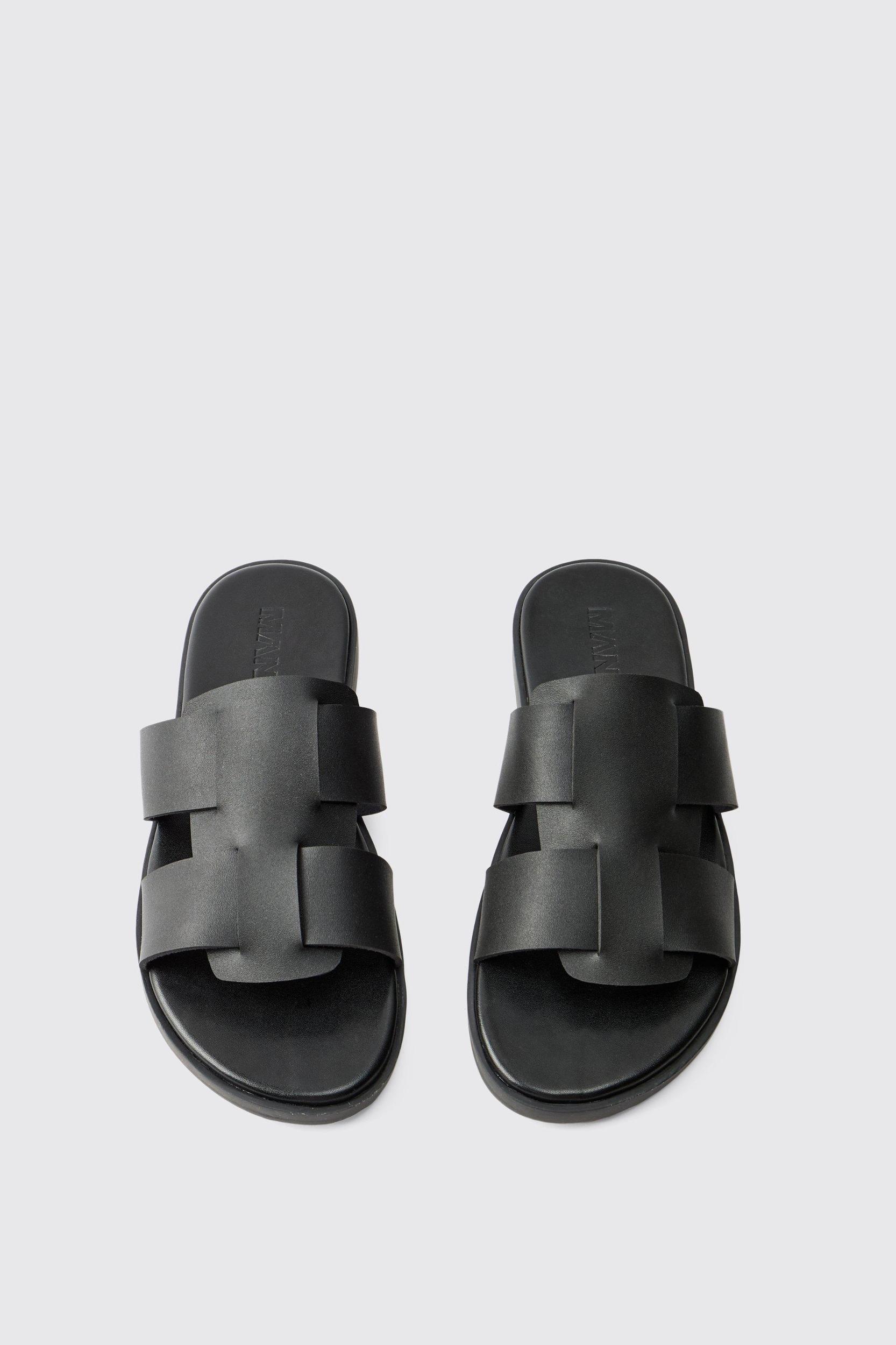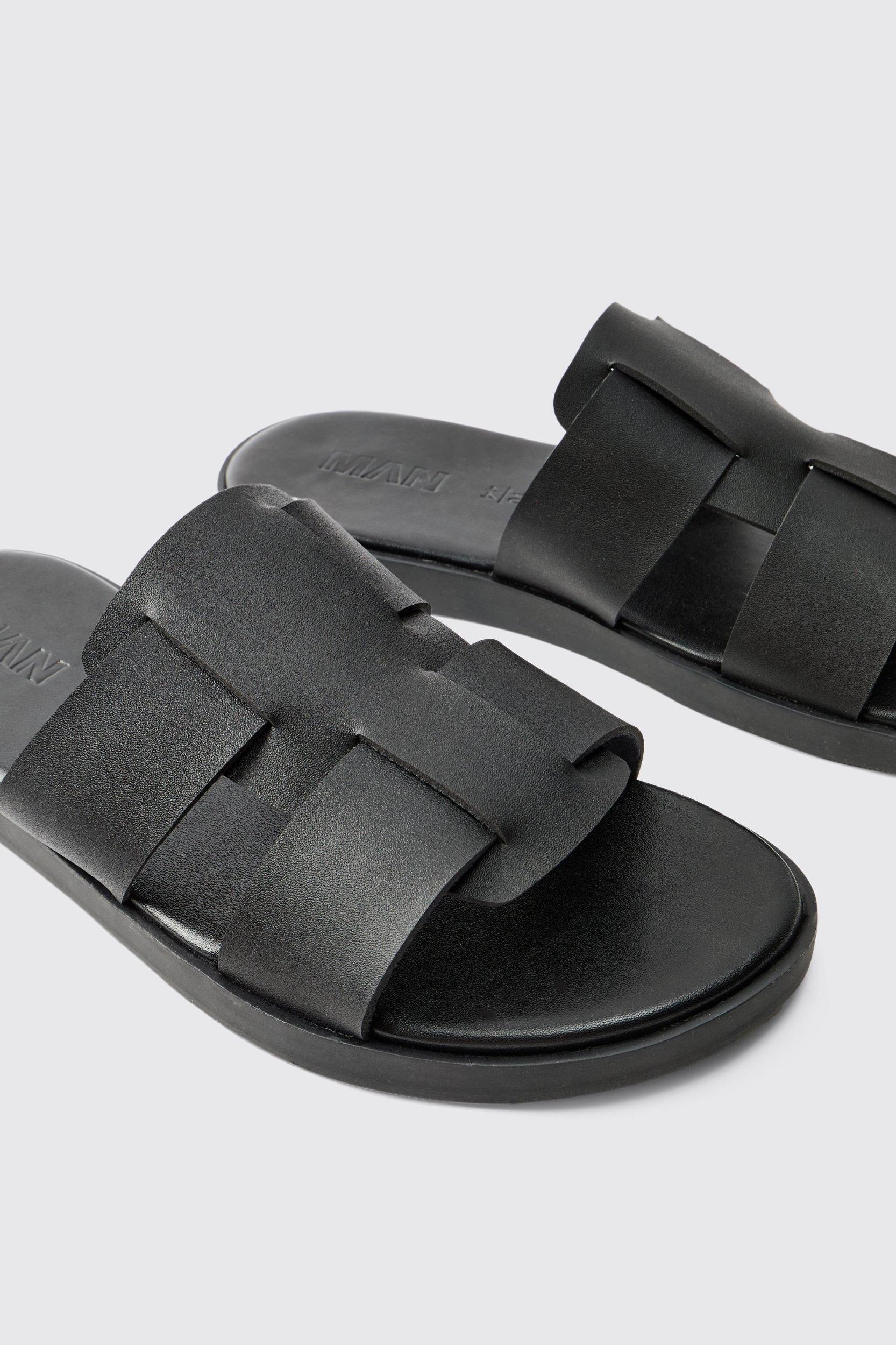 Faux Leather Woven Sandal | boohooMAN USA
