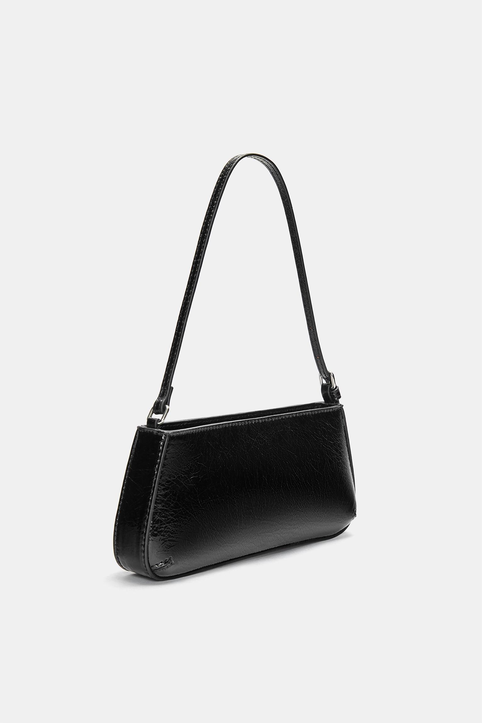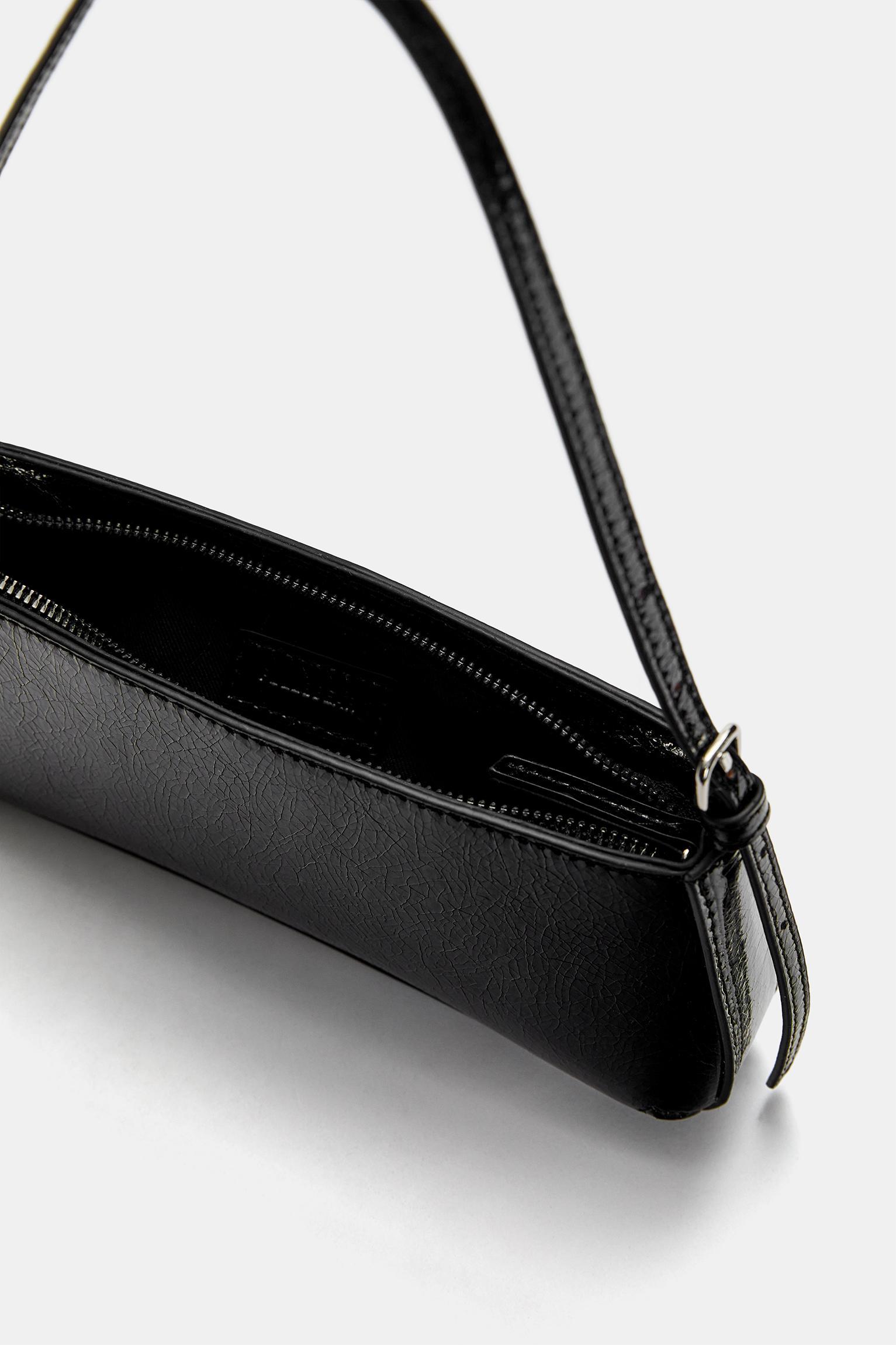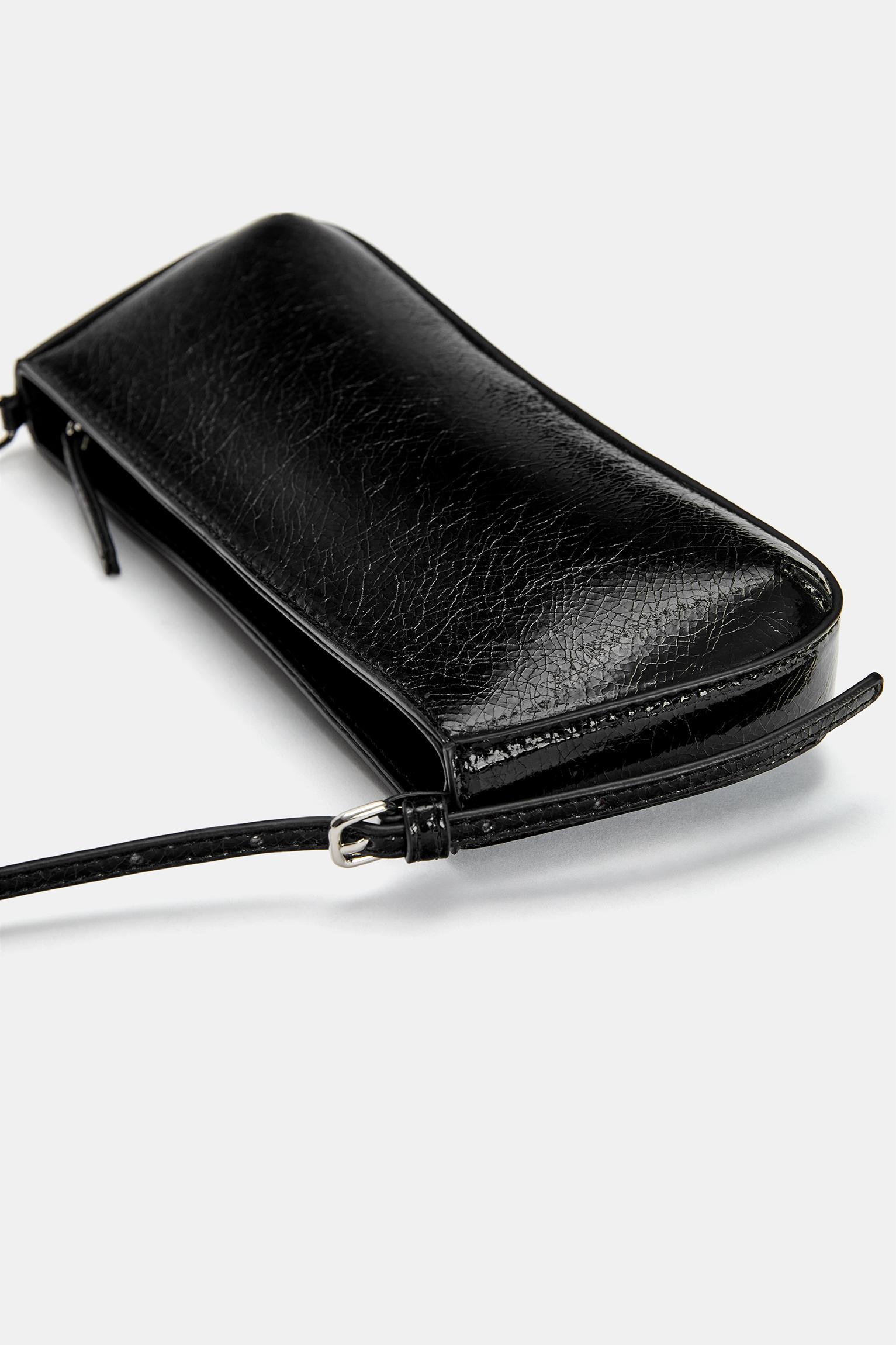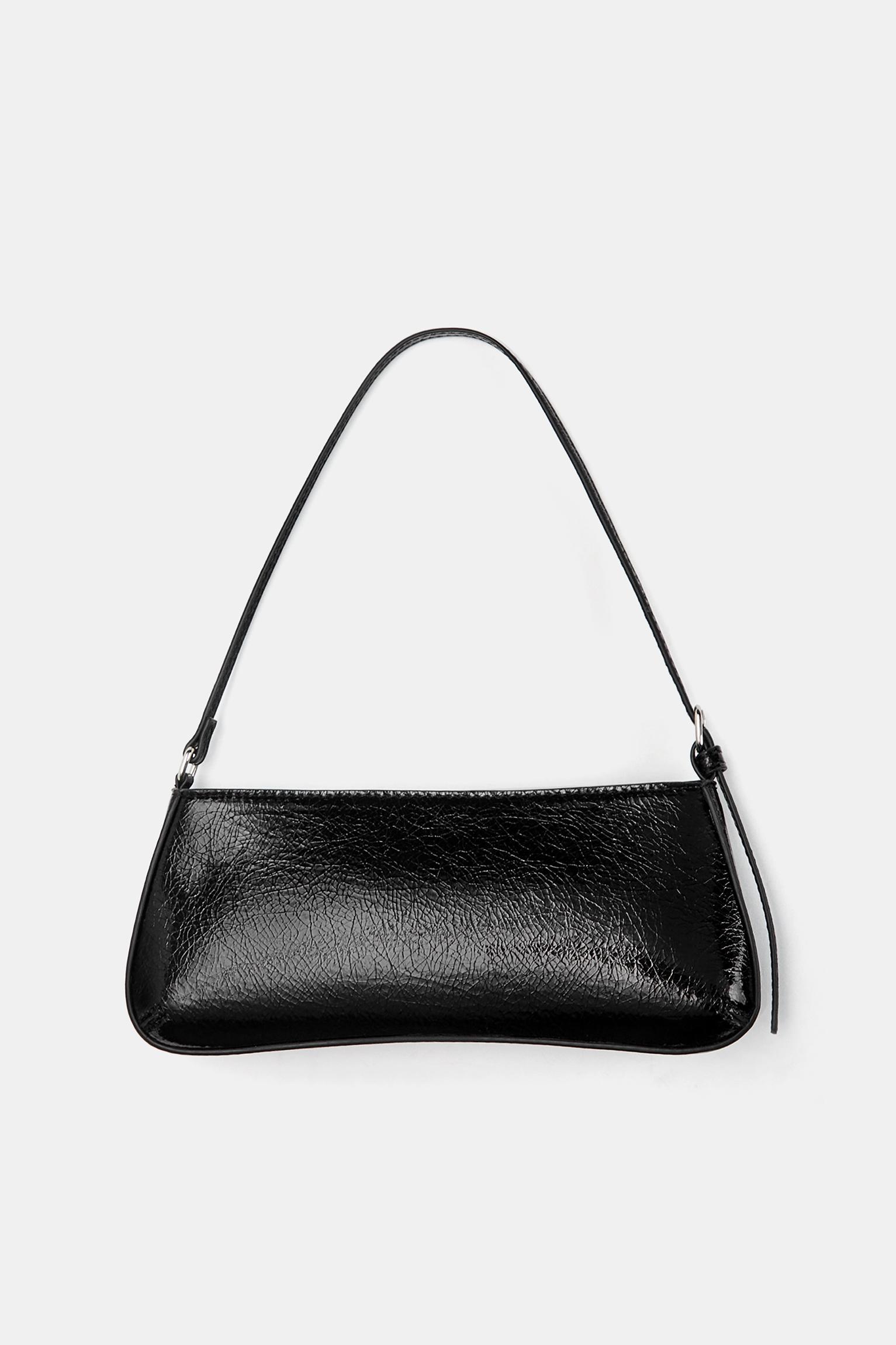 Faux patent finish shoulder bag