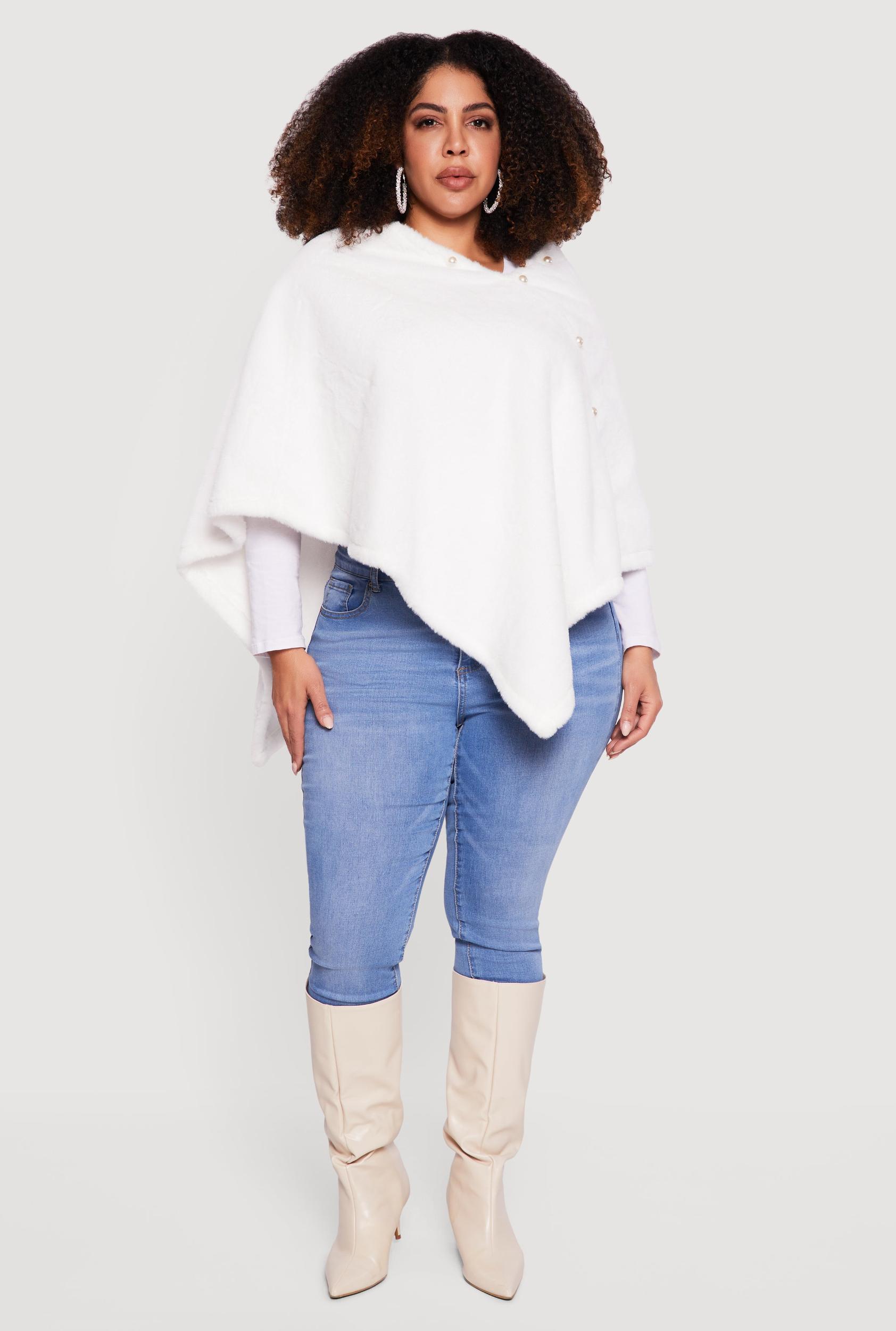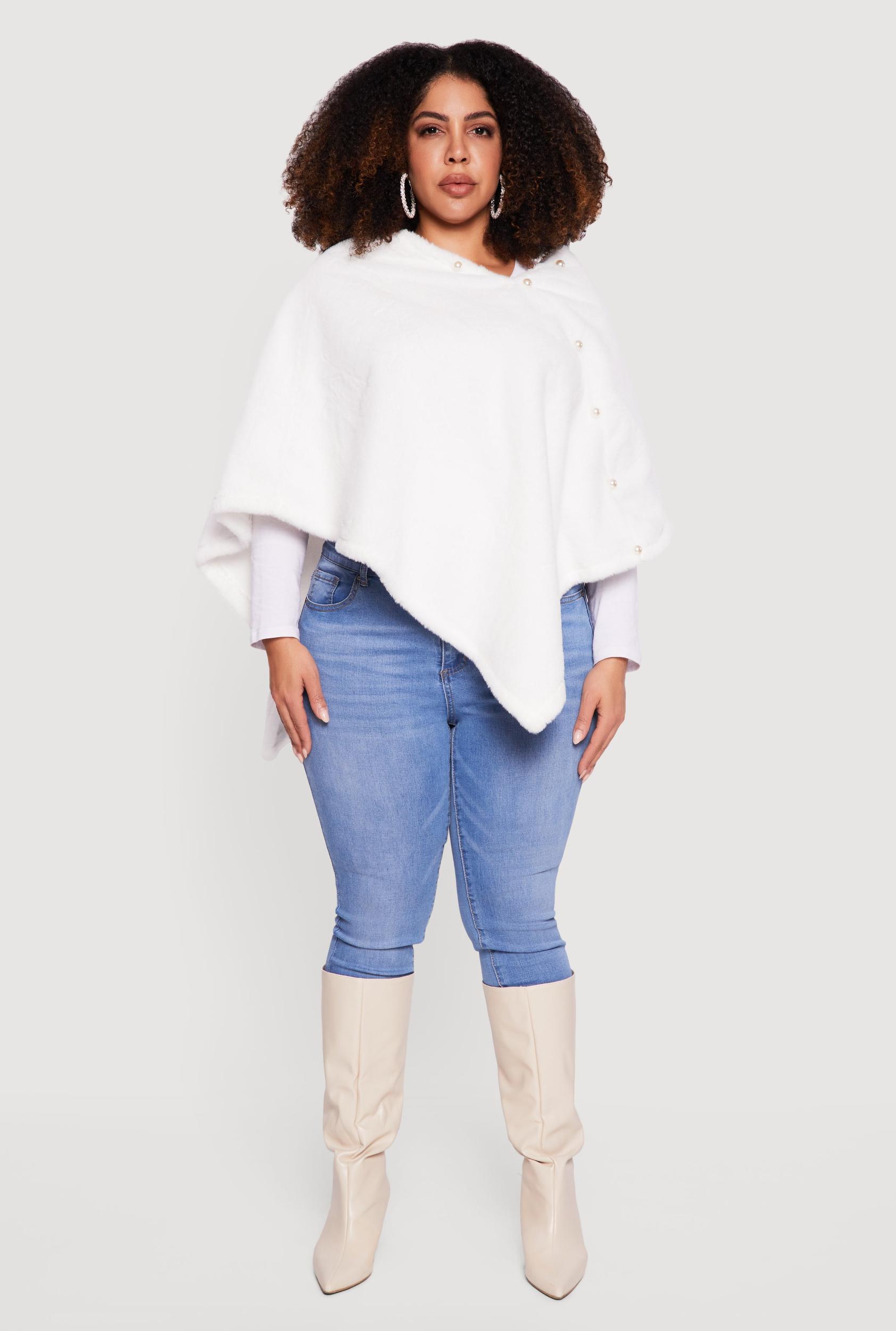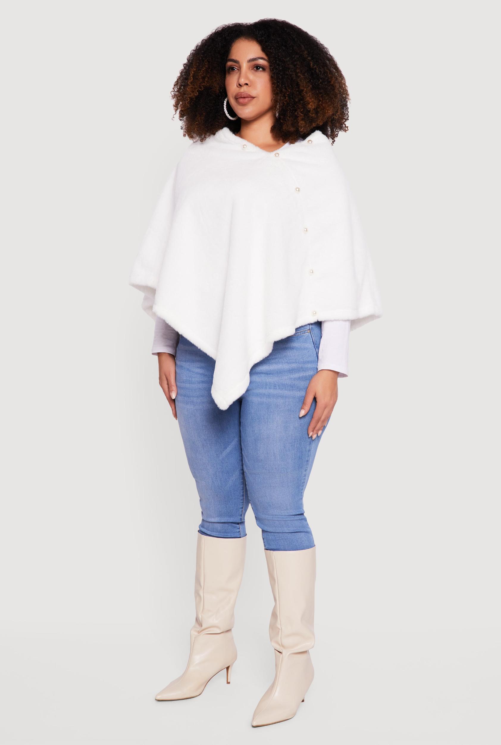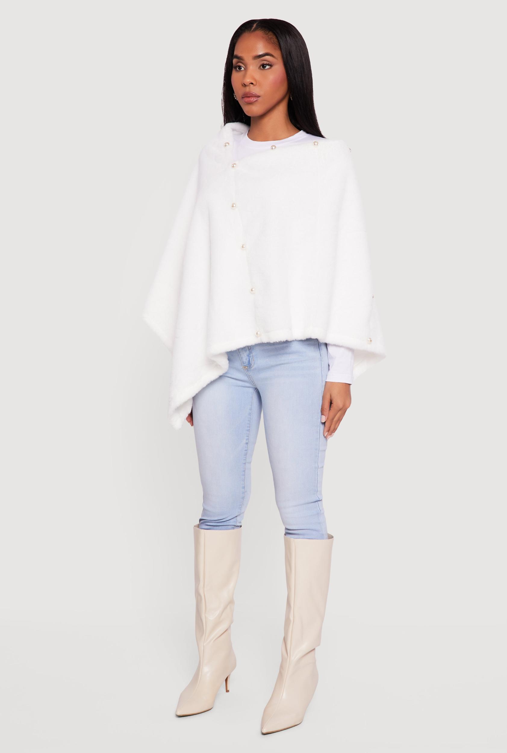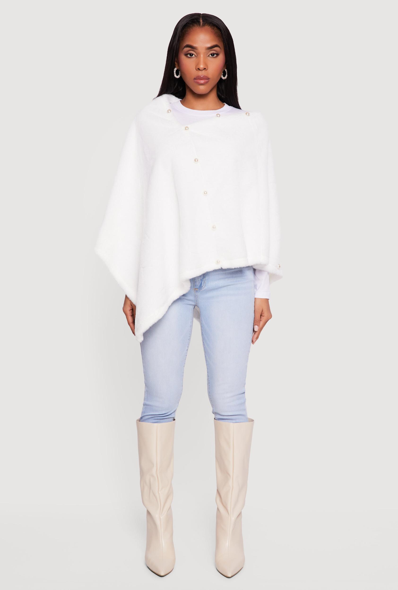 Step out in style and cozy comfort with this Faux Pearl Detail Faux Fur Poncho. Designed with a classic fit and a chic high neck, it’s your go-to layering piece for casual days when you want to feel effortlessly cool. The soft faux fur adds a touch of luxe without breaking the bank, while the delicate faux pearl accents bring a subtle sparkle that elevates your look. Perfect for those who love fashion that feels as good as it looks. Classic fit with a timeless silhouette for easy styling Soft faux fur material keeps you warm and cozy Elegant faux pearl details add a hint of glam High neck design for extra coverage and style 3/4 sleeves for a modern, relaxed vibe Solid color makes it versatile for any casual outfit Model Pictured Wearing Size NO SIZEHeight 5 ft 8 in, Bust 32 in, Waist 25 in, Hips 36 inFits True To SizeMeasurementsFull Length: 19 inContent and Care Material: 100% Polyester Faux Fur Care Instructions: Machine Wash, Tumble Dry Country Of Origin: China Rainbow Item Number 3195067445309