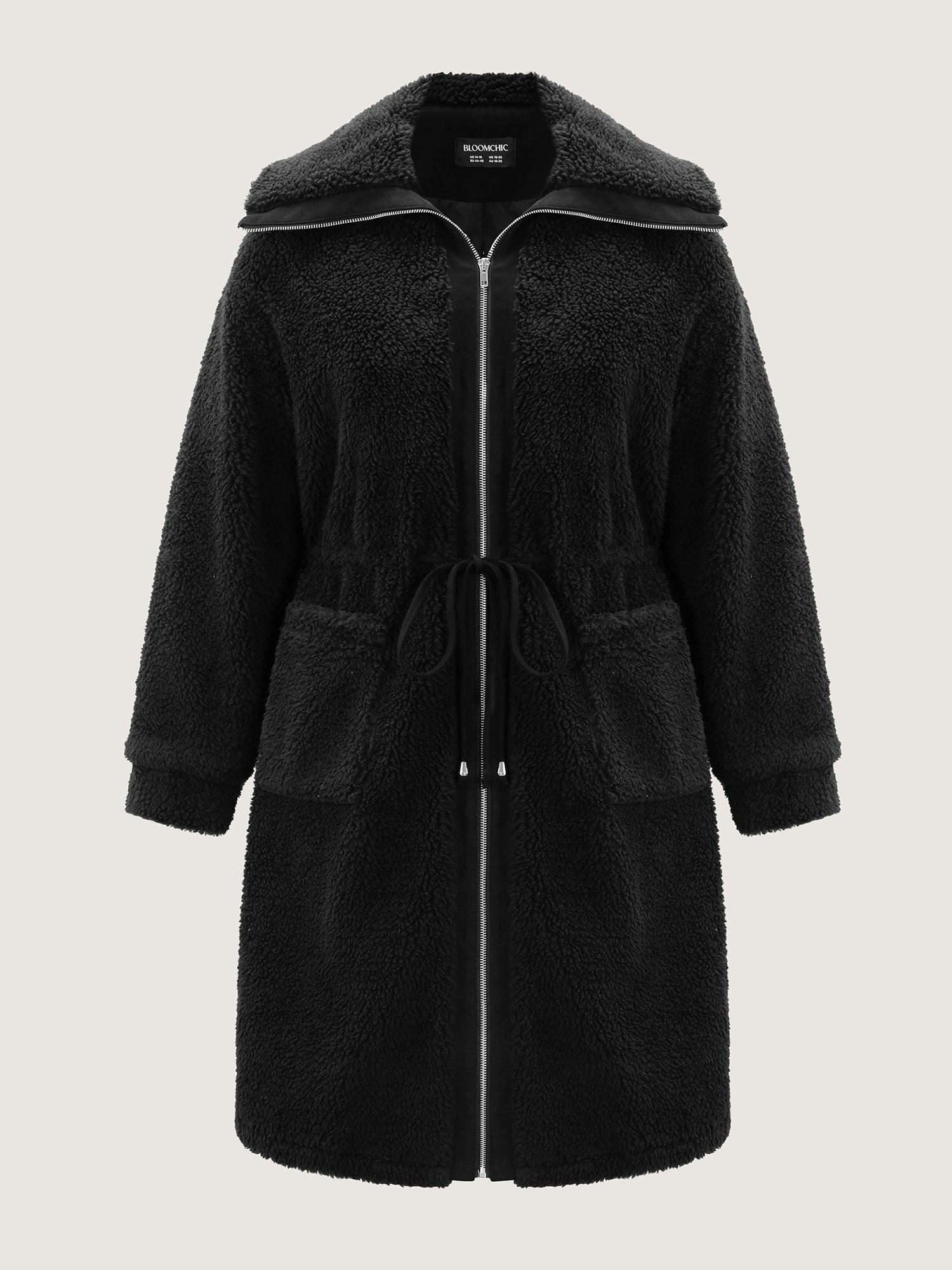 Shop Faux Shearling Zipper Pockets Jacket now and redefine your style with confidence at BloomChic. Tailored for mid and plus-size women. This trendy Outerwear Women, sizes 10-30. Color:Black;Style:Leisure;Prints:Non;Details:Drawstring, Texture;Pocket:Patch pocket;Belt:No-belt;Closure Type:Zipper;Lining:Lining