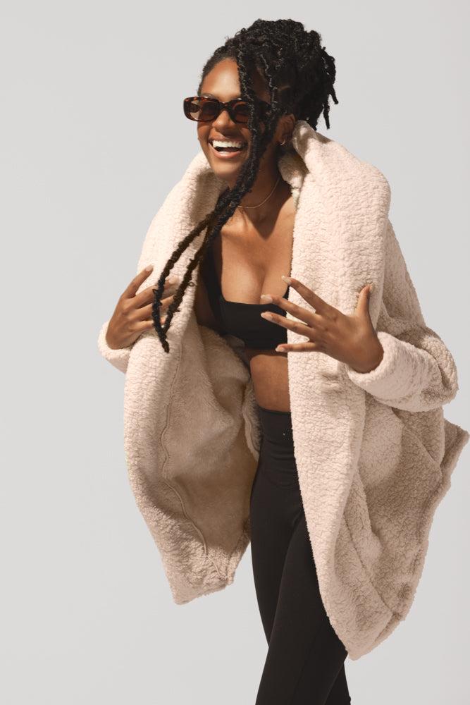 Strut to your morning workout class or down the aisles of Trader Joe’s with our most stylish, oversized Cocoon Coat. This romantic, just-above-the-knee length faux sherpa coat is bound to keep you warm and snug, all cozy-weather season. Our favorite feature: the thumb holes on the sleeves for warmth from head to fingertip.