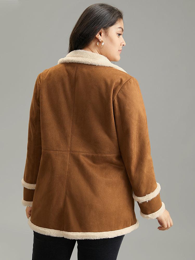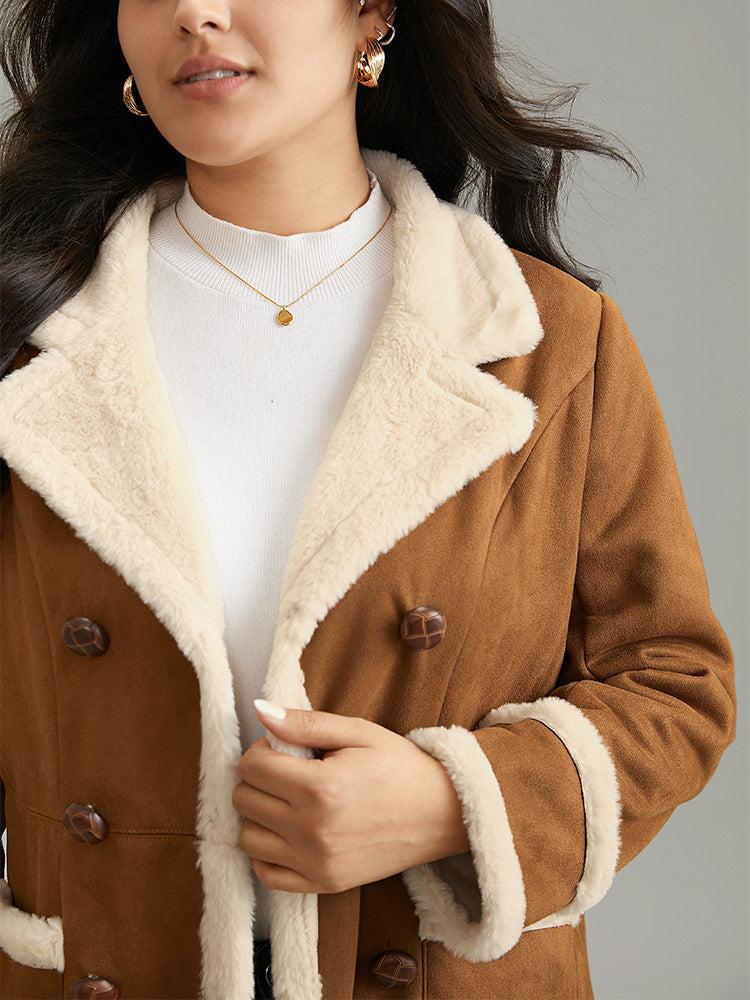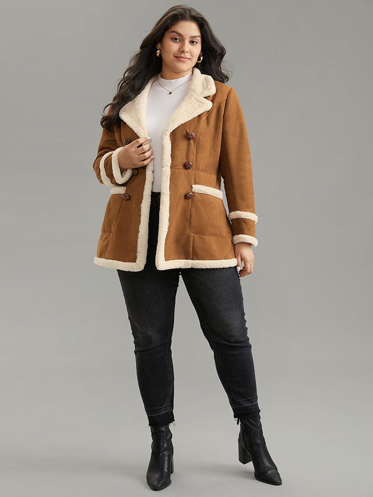 Shop Faux Suede Buckle Detail Fuzzy Trim Coat now and redefine your style with confidence at BloomChic. Tailored for mid and plus-size women. This trendy Outerwear Women, sizes 10-30. Season:Winter;Color:Chocolate;Style:Casual;Pattern Type:Plain;Details:Pocket, Button, Patchwork, Contrast, Lined;Pocket:It is perfectly sized to carry a phone.;Belt:No-belt;Closure Type:Button;Lining:Lining