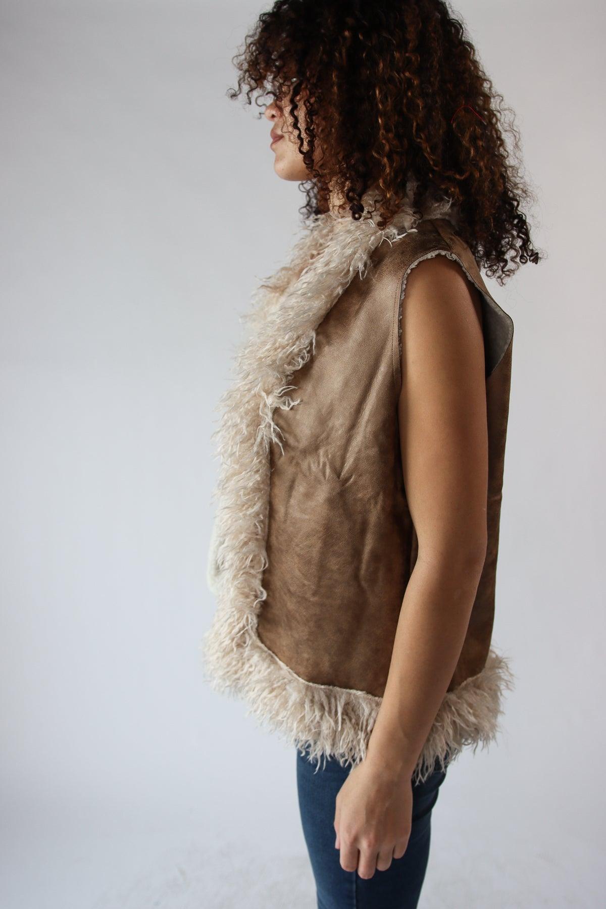 Faux Suede & Faux Fur Trim Vest