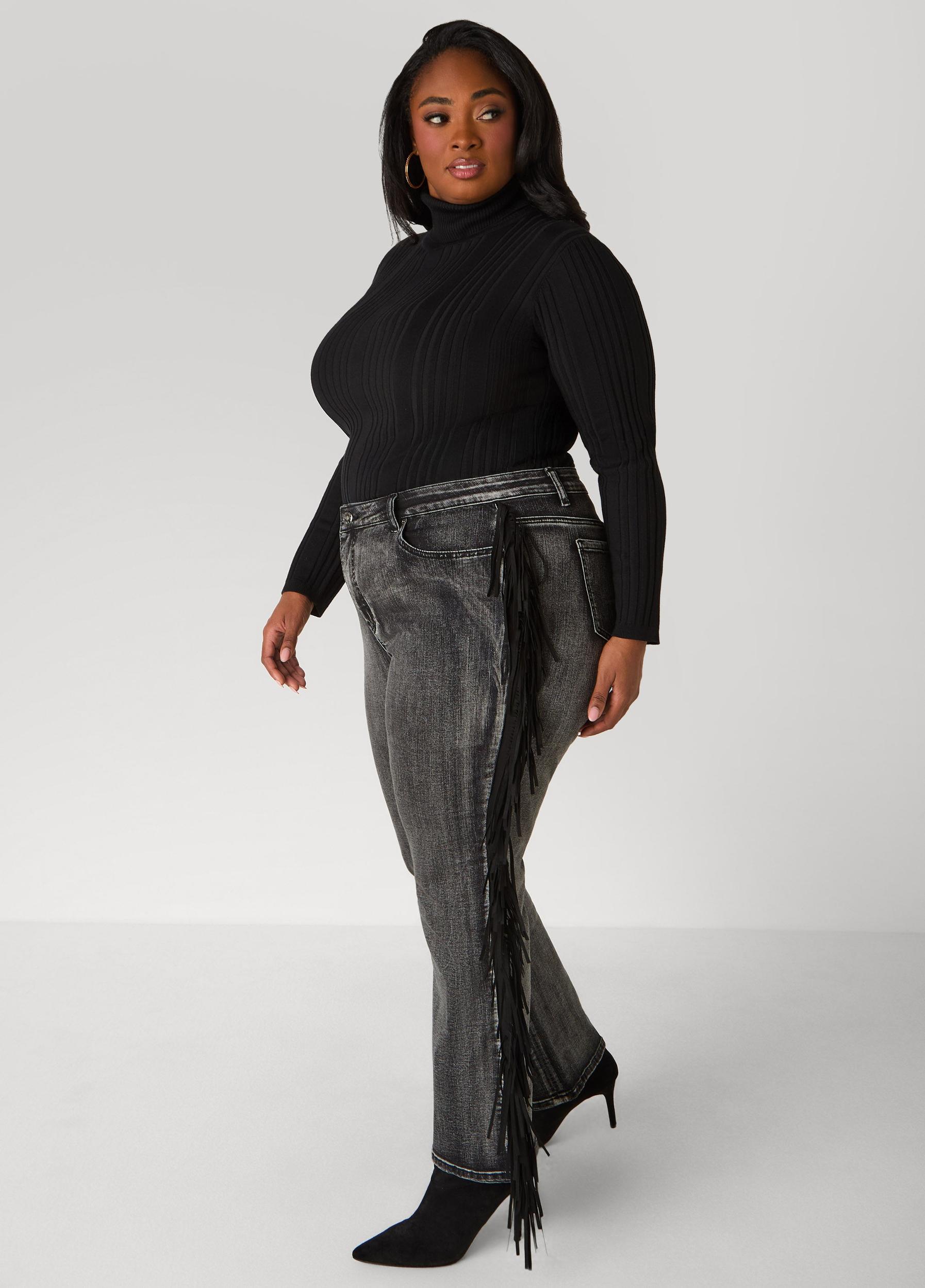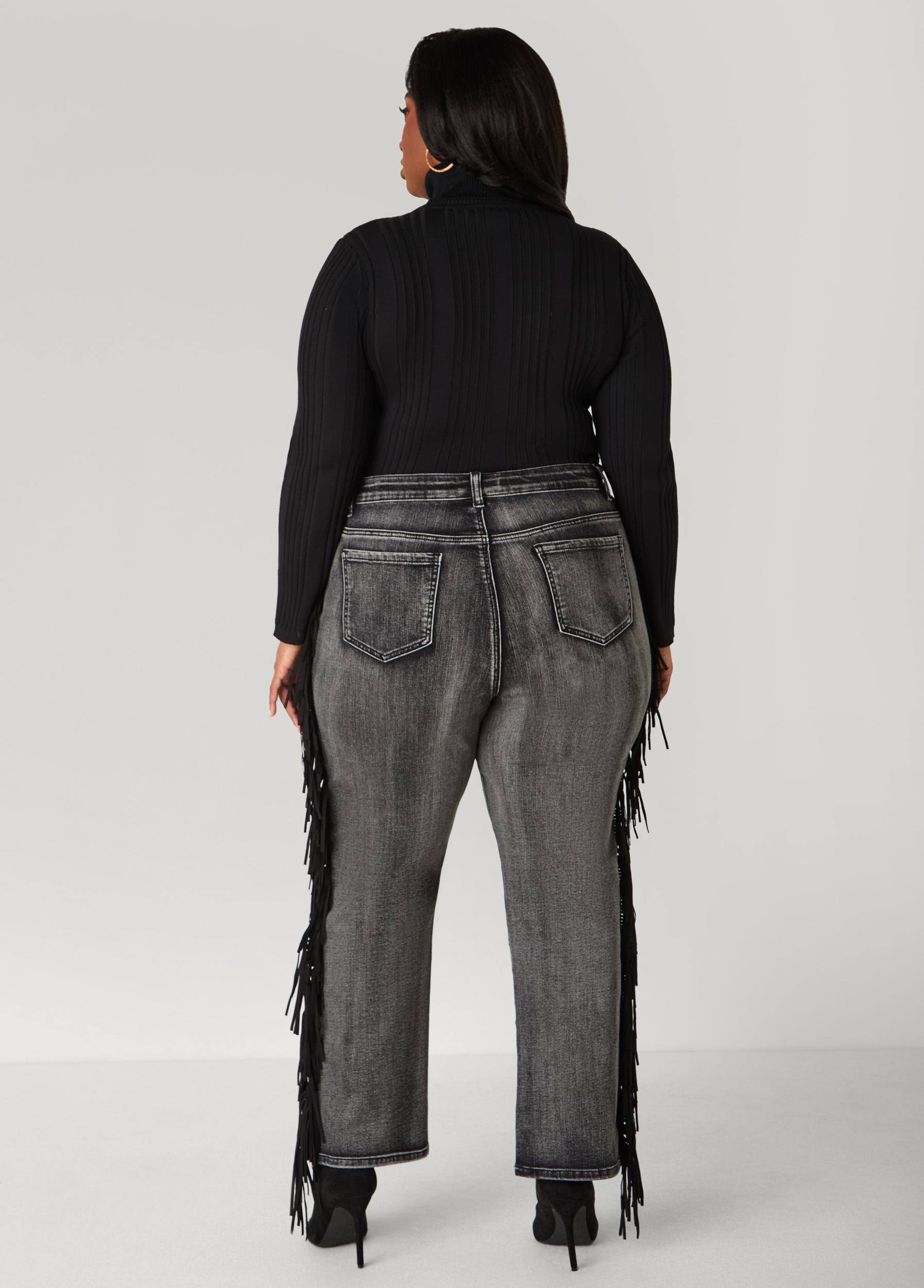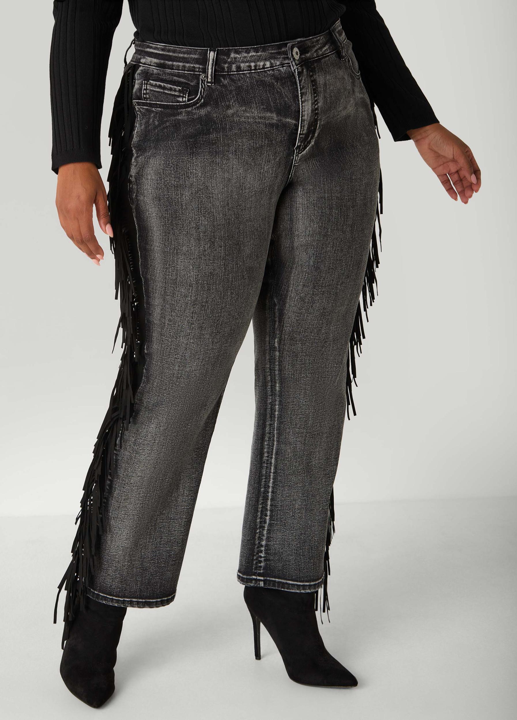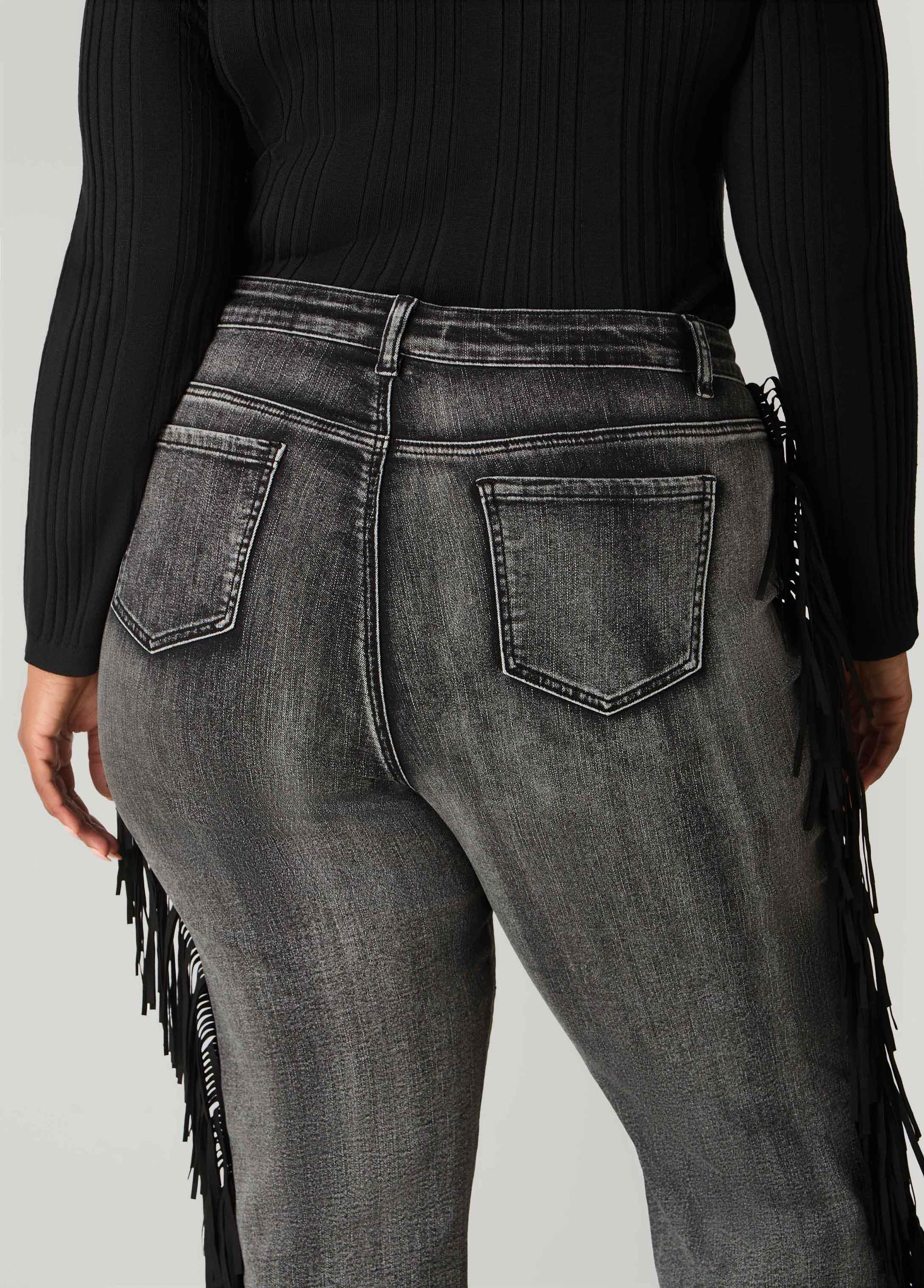 Faux Suede Fringed Bootcut Jeans