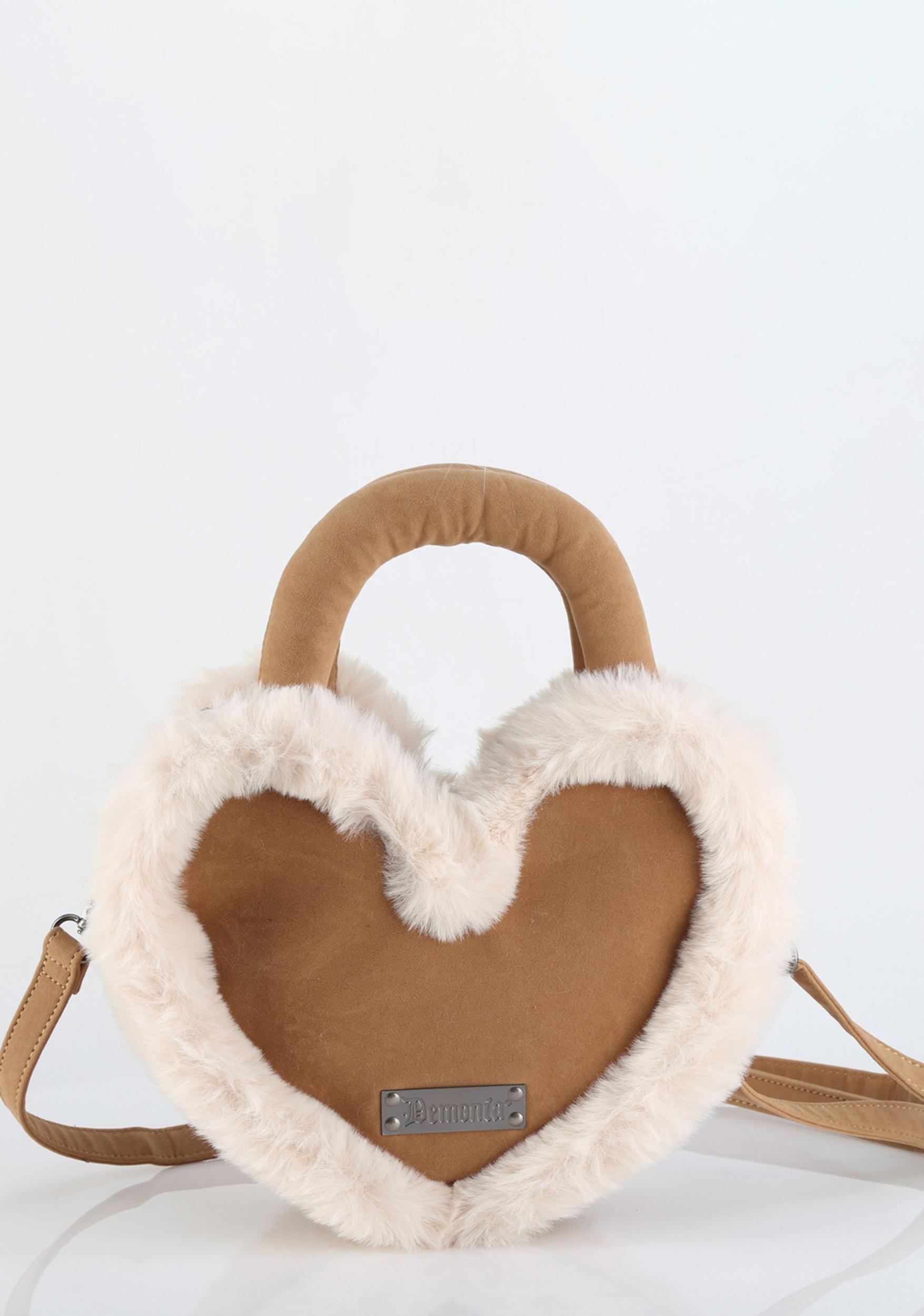 Faux Suede & Fur Heart Shaped Convertible Purse
