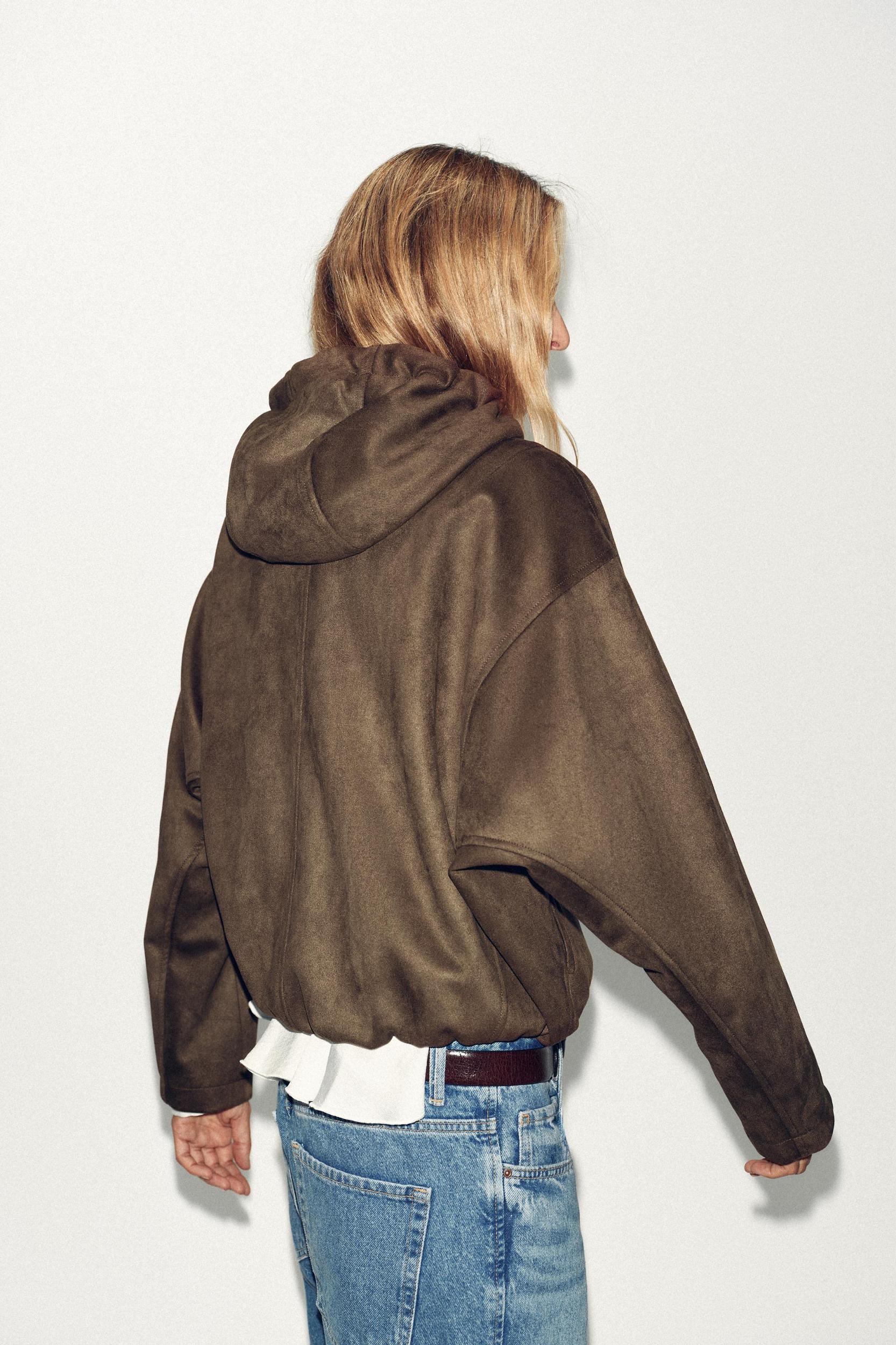 FAUX SUEDE HOODED BOMBER JACKET