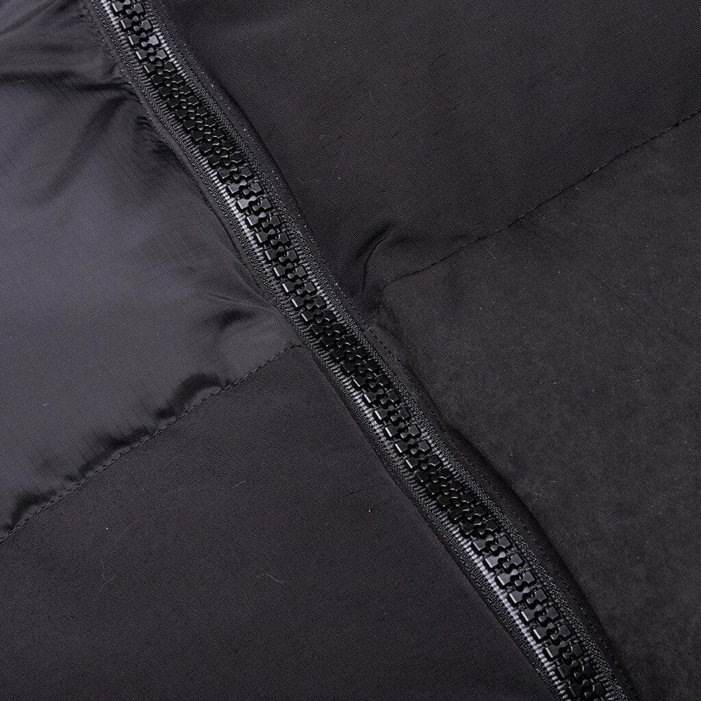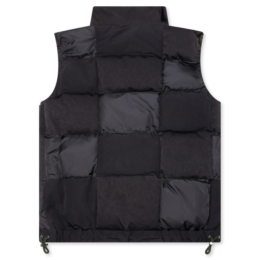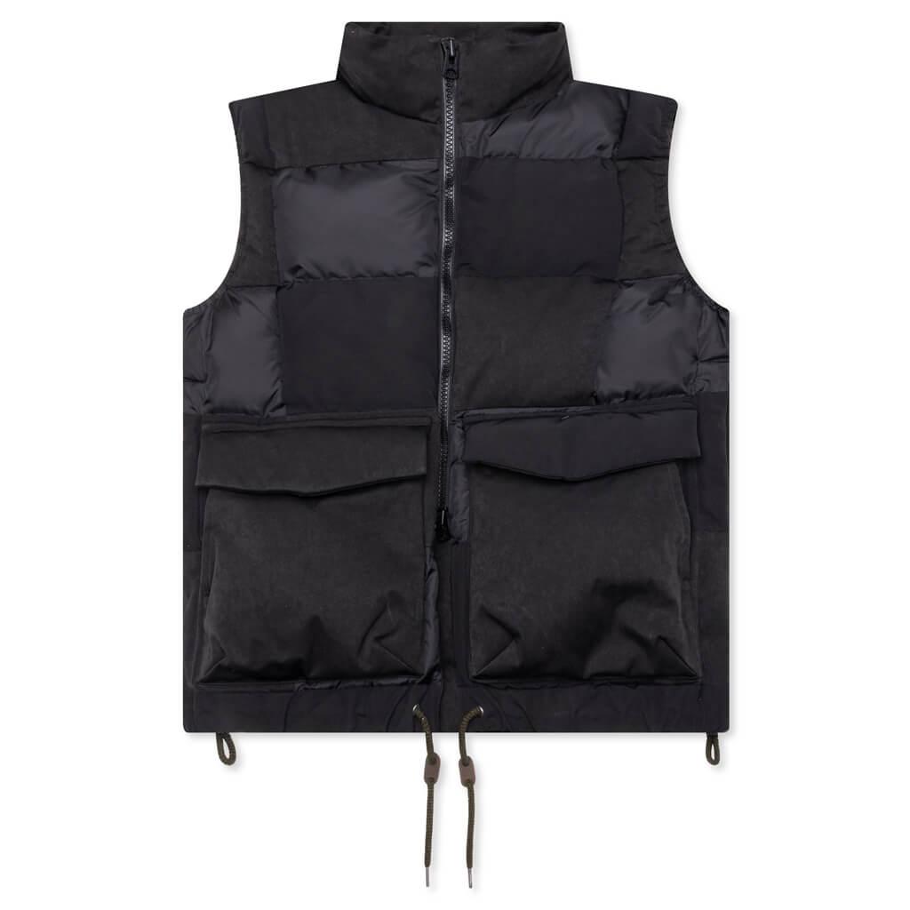 Crafted in a timeless outdoor fashion, the Faux Suede Mix Vest features large flap hand pockets with side entry, providing optimal storage and utility. The addition of a dual front zip pocket completes the piece, ensuring both practicality and style. Padded Design Quilted Suede Panels Funnel Neck Drawstring Hem Made in Japan Style No: 23-03211M-001