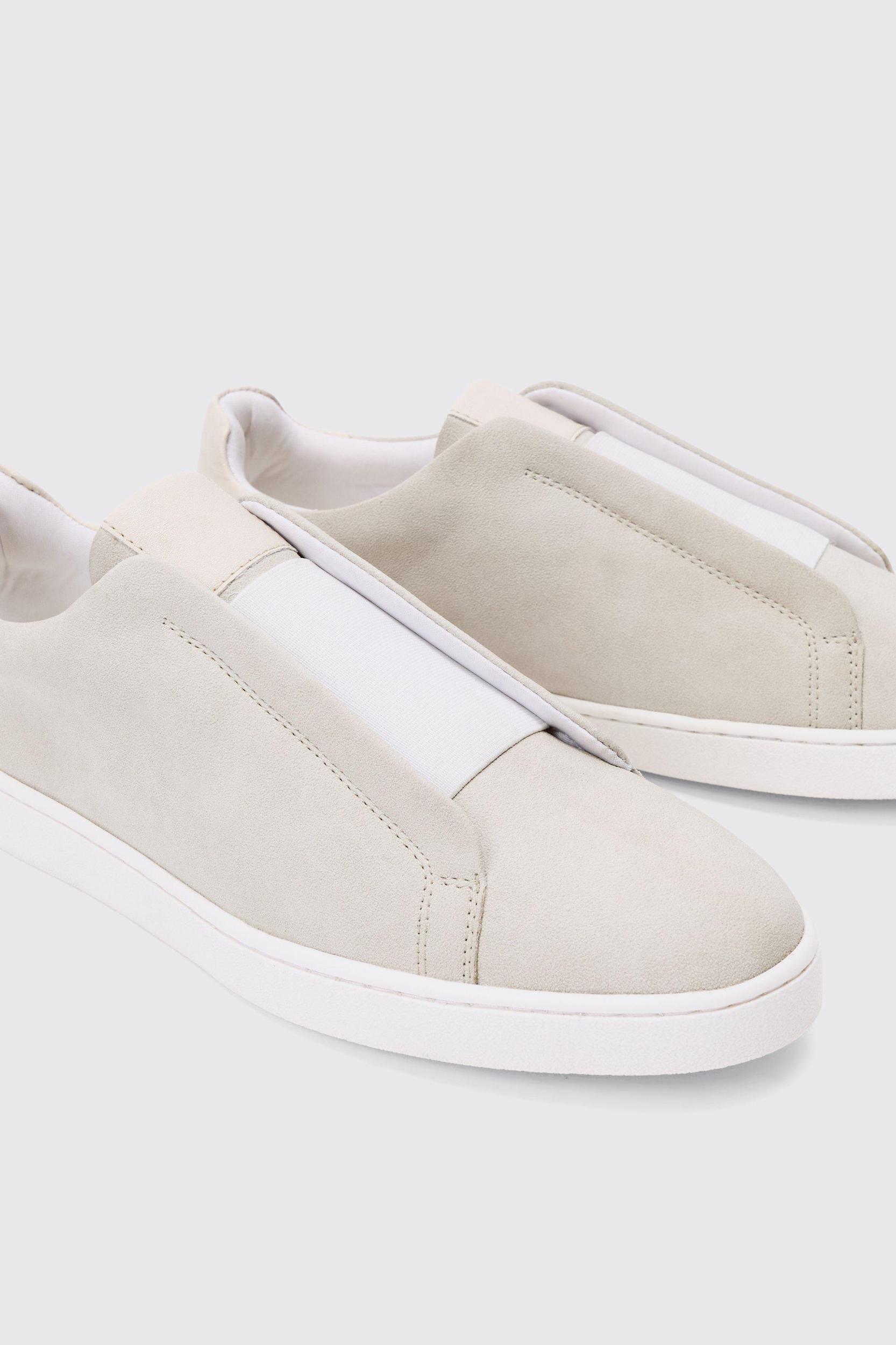 Slide into some smooth suede this season. Need something that fits between formal dress shoes and too-casual sneakers? If it's time to revamp your kicks cupboard, start by stepping into some new suede brogues, loafers, slip Ons or even sneakers. With its smooth, matte finish, suede looks great with linen pants, chinos or even a well-cut pair of jeans. Choose from a range of pale and dark neutral colours or, if you prefer a vegan-friendly option, try our faux-suede options in Chelsea boots, mules and chunky loafers. If you love the softness and suppleness of leather but prefer something slightly less formal, suede is the perfect alternative. Style: Trainers