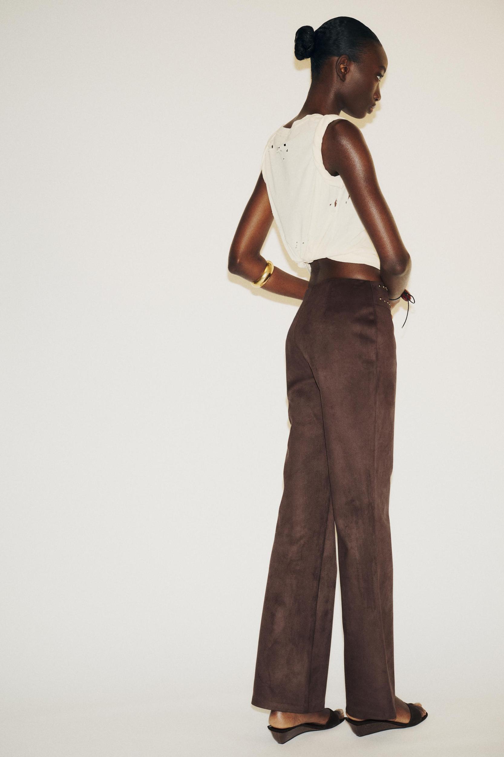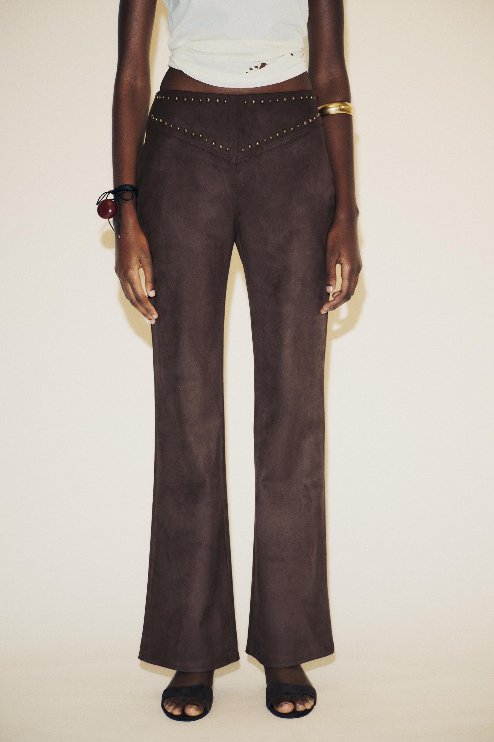 FAUX SUEDE STUDDED FLARE PANTS