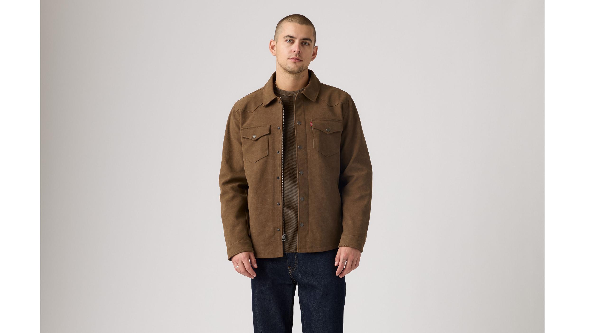 Experience the rugged charm and timeless style of our faux suede shirt jacket. Crafted with faux suede fabric, it features a center front zip and snaps for secure closure. With two chest pockets, two lower welt hand pockets, arcuate detail on the yoke, a laydown collar, and adjustable cuffs, this jacket seamlessly blends rugged aesthetics with modern comfort and functionality.Faux suede fabric offers a luxurious feel and rugged appearance.Center front zip and snaps provide a secure and stylish closure option.Two chest pockets and two lower welt hand pockets offer convenient storage for essentials.Arcuate detail on the yoke adds a touch of Western-inspired flair.Laydown collar and adjustable cuffs ensure a comfortable and personalized fit.