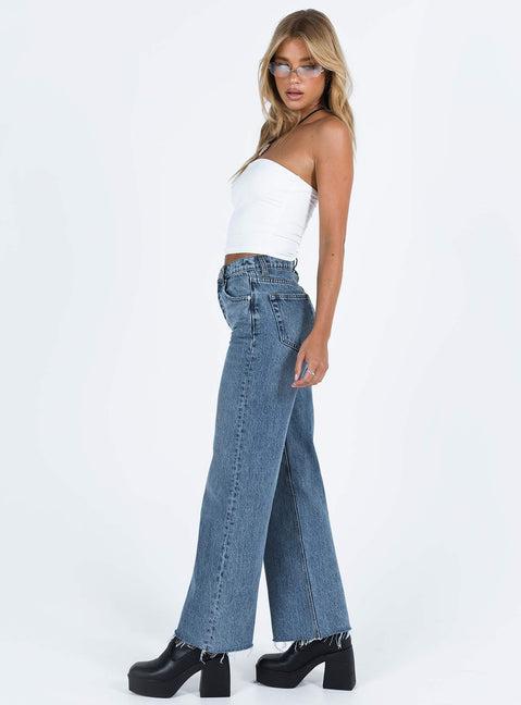 Fawcett High Rise Straight Leg Jeans Mid Blue Wash