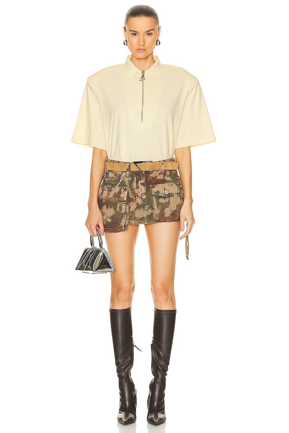 THE ATTICO Fay Mini Skirt in Chocolate Eden Green & Sand - Brown. Size 29 (also in 24, 25, 26, 27, 28, 30, 31, 32). 100% cotton. Made in Italy. Hand wash. Unlined. Zip fly with button closure. 5-pocket styling with front cargo pockets. ATTF-WQ77. 242WCS136 - D077 - 613. About the designer: Attico represents a time where glamour ruled and decadence was a way of life. Derived from the Italian word for penthouse, Attico is reviving the way a woman gets dressed. Launched in 2016, Italian designers Giorgia Tordini and Gilda Ambrosio partnered up to combine their contrasting aesthetics to push the boundaries of specialty couture. Inspired by vintage interiors and seductive boudoirs - expect pieces dripping in artisanal detail, opulent evening gowns, lavishly bold patterned silk robes, and rich textured velvets.