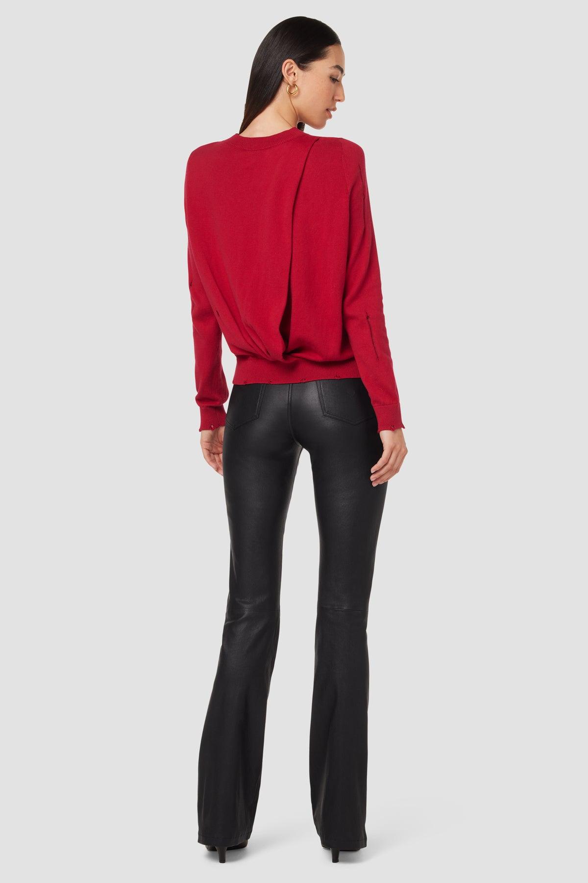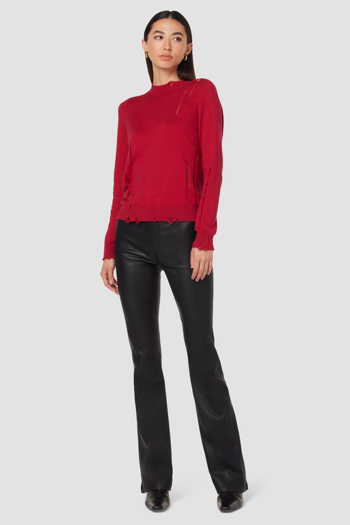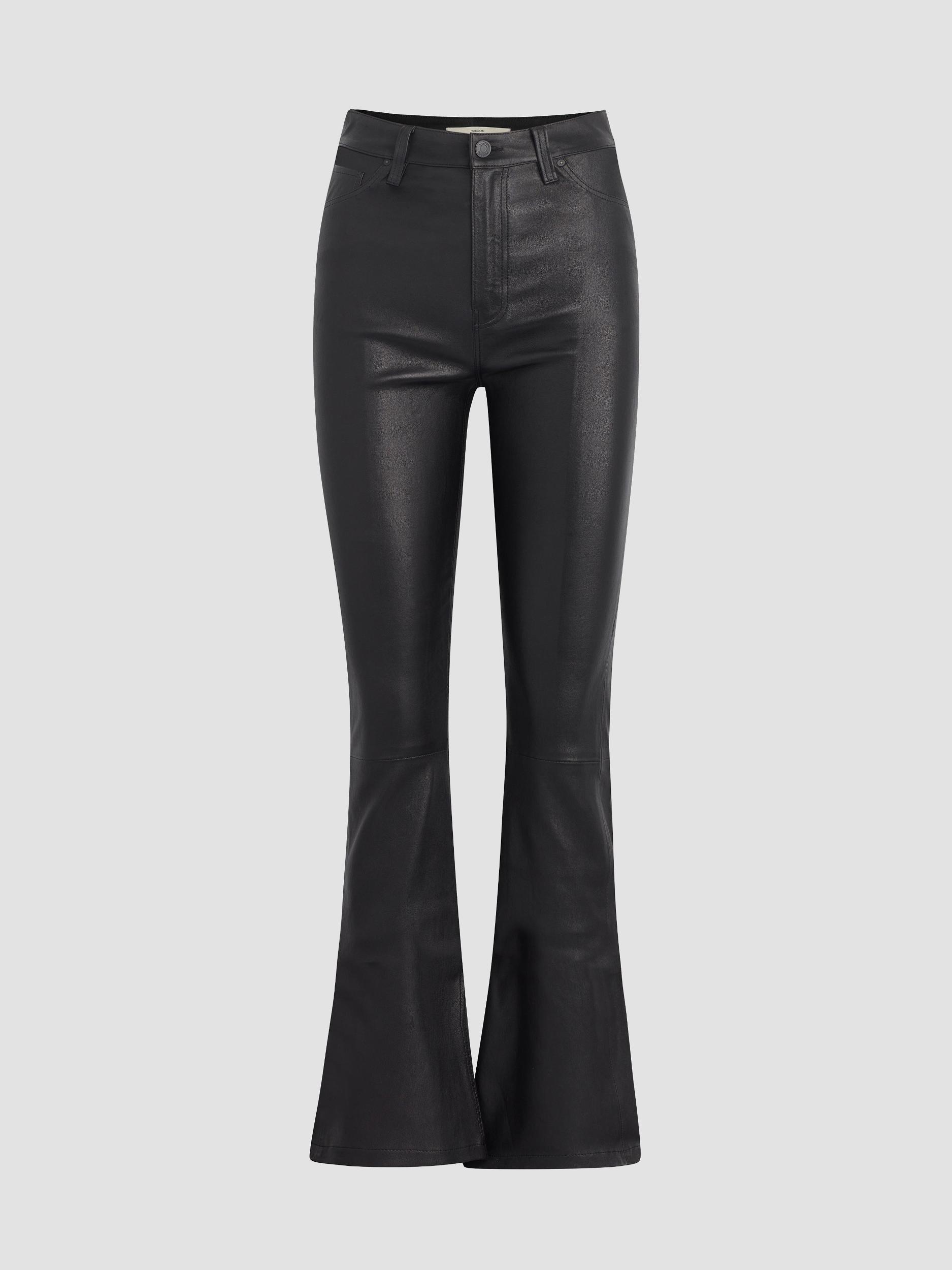 Description Our Faye Ultra High-Rise Bootcut Leather Pant in Black is cut from 100% leather with a holds-you-in waistline and fitted leg that breaks at the knee. Product Details Front Rise: 12", Leg Opening: 19", Inseam: 34"Model Height 5’9"Model wearing size 25Measurements based on size 27 Fit & Care Content: 100% Lamb LeatherCare of Leather Specialist Only