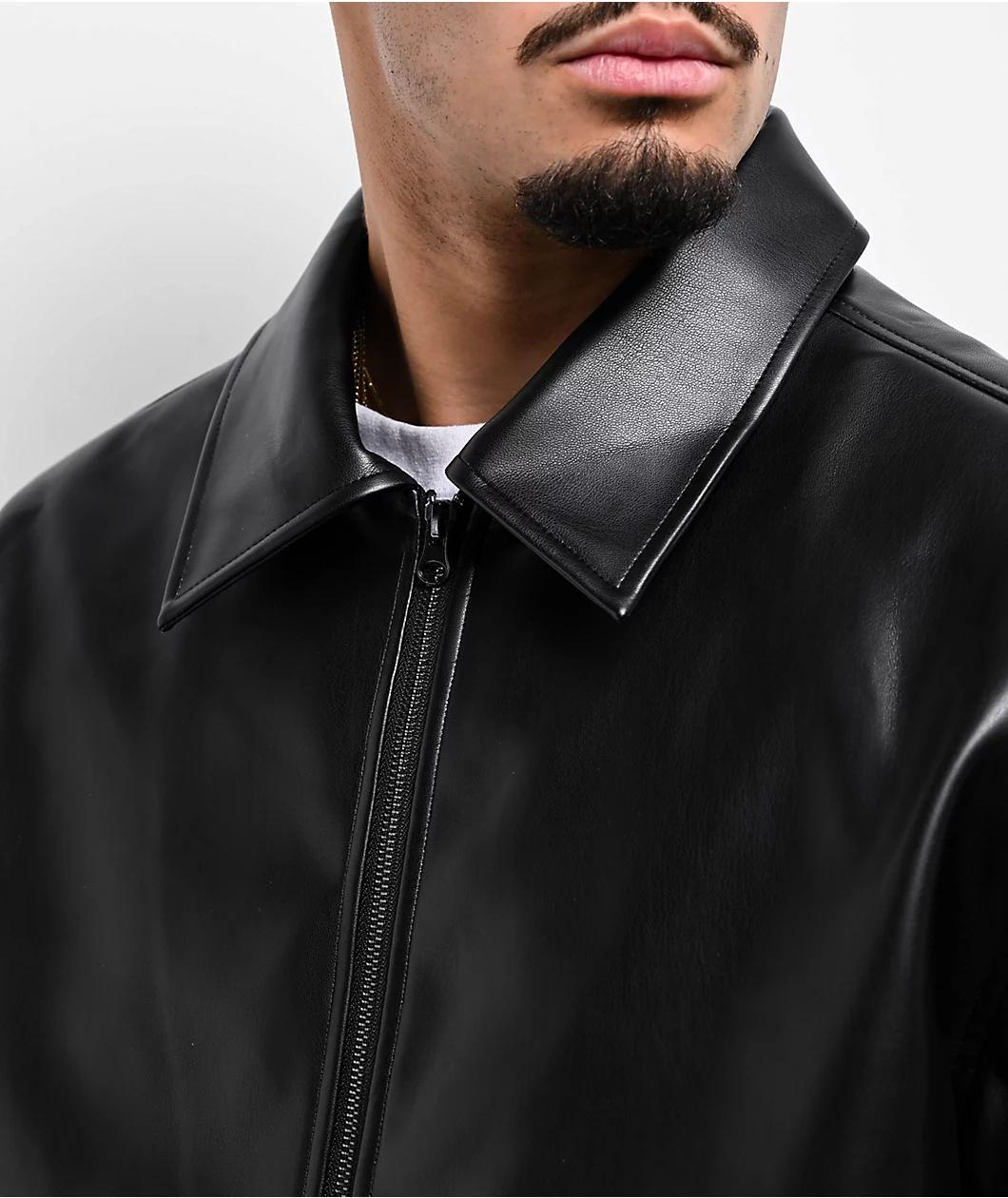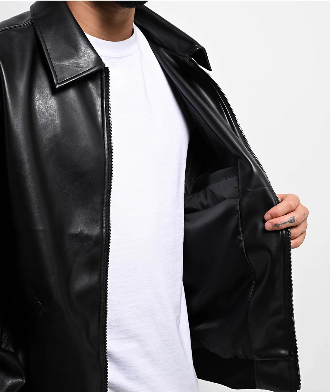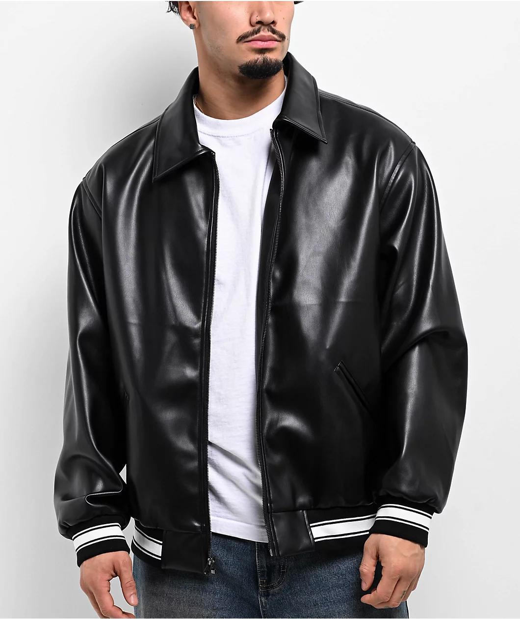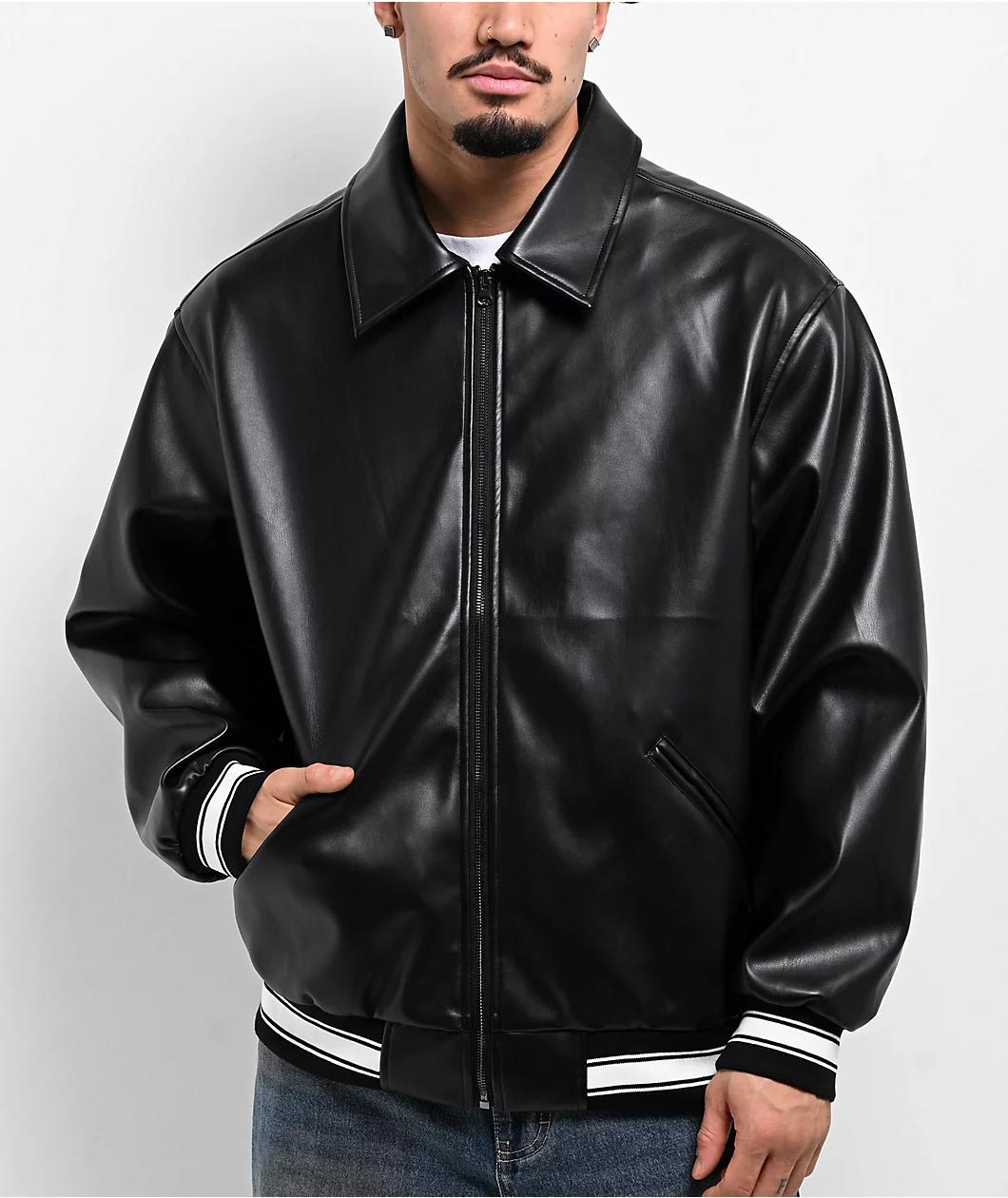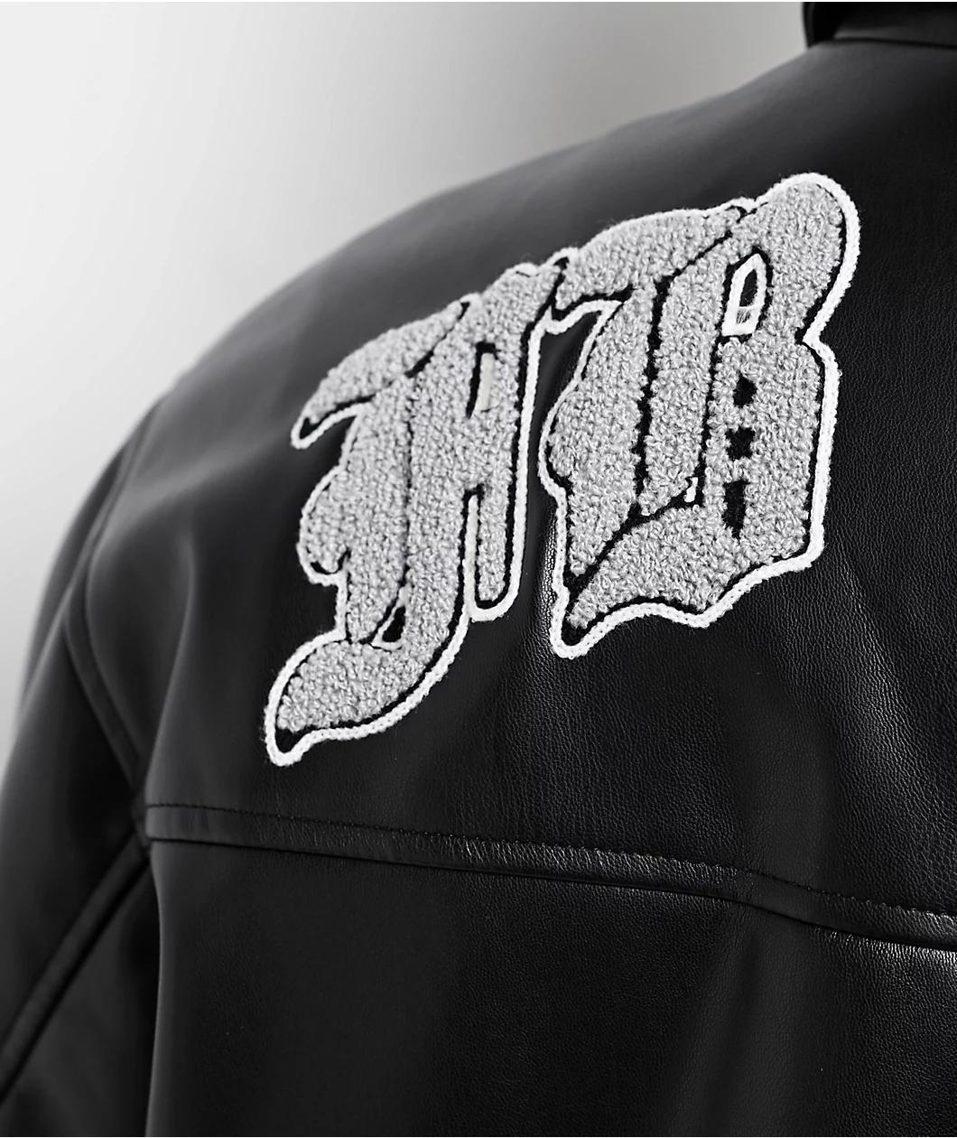 Enjoy a classic look with the black faux leather jacket from FB County, which features a turndown collar for a traditional vibe. Grey chenille branding on the back adds modern flair to the look, while a full zip closure helps trap warm air in and col