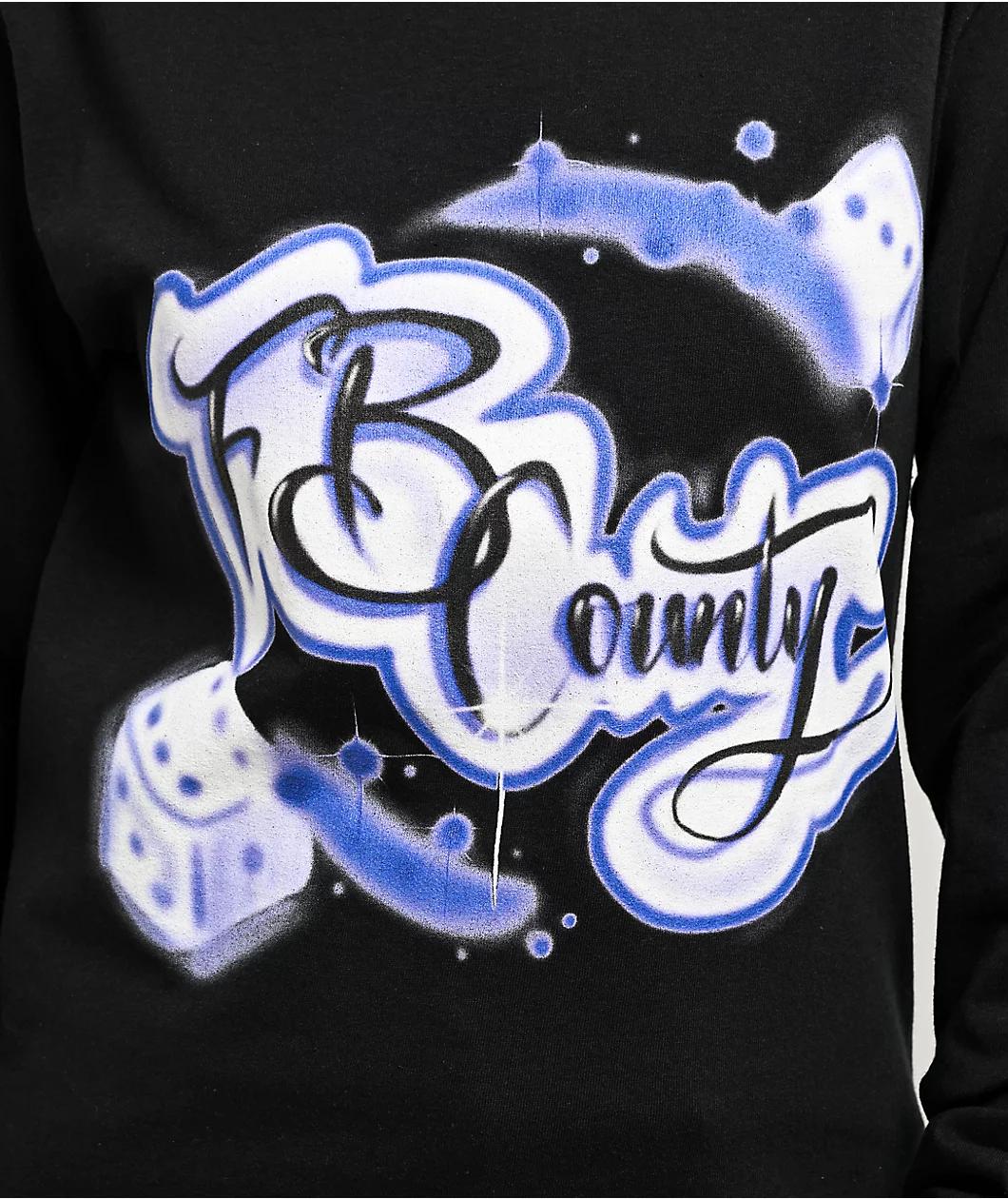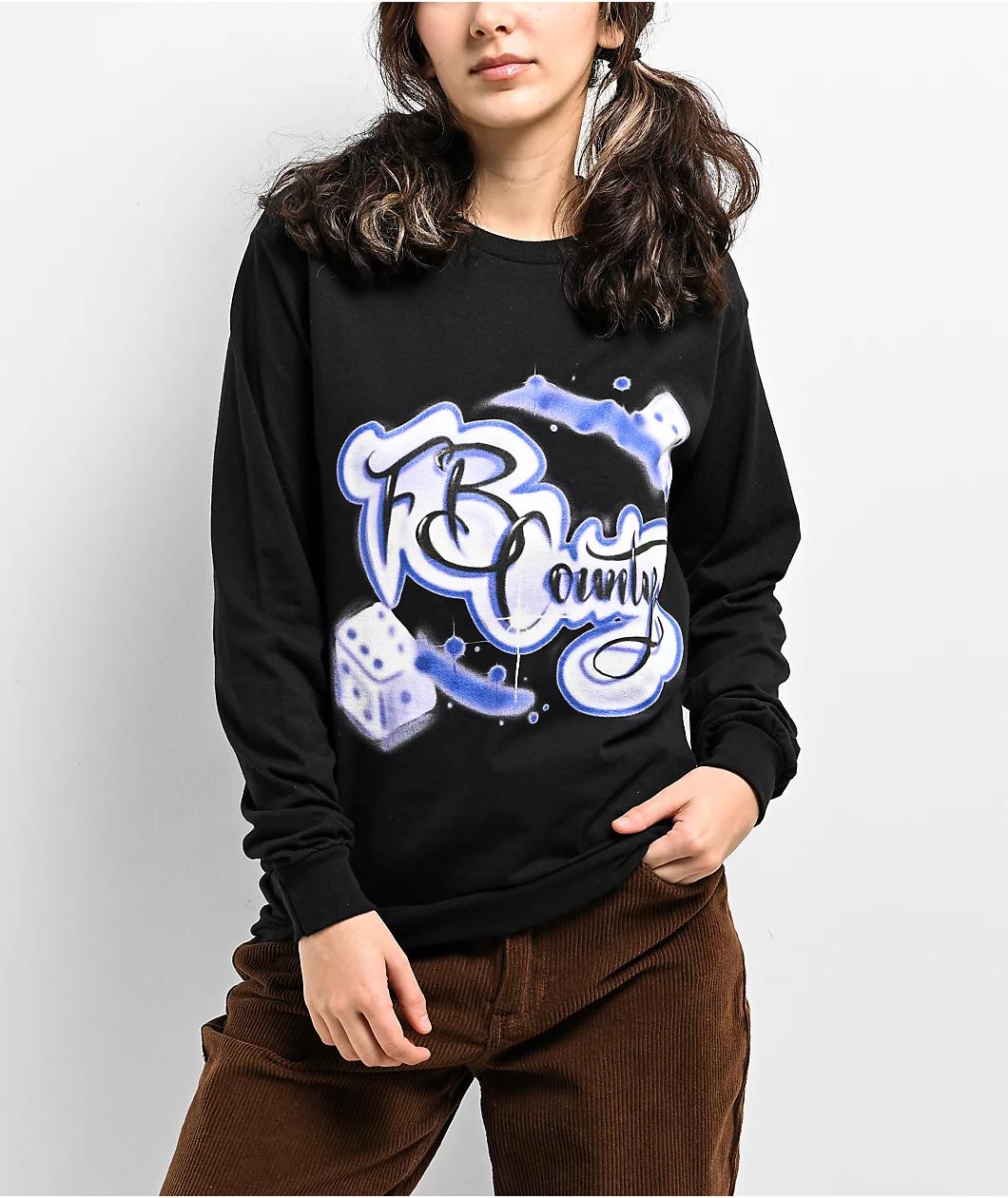 Offered by FB County, the Dice Logo t-shirt arrives in a solid black colorway with a 100% cotton construction and a long sleeve silhouette. The crew neck tee displays screen-printed branding on the front in an airbrush-style with a six-sided die adja
