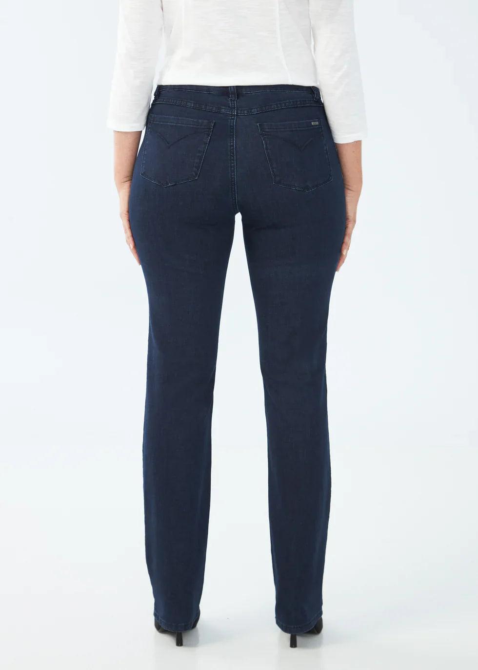 The Olivia Jean is a mid rise designed for women with straighter, hips and less curve. It flattens the tummy and lifts the behind. They sit just below the navel. These are a petite cut with a straight leg. Classic five pocket style and a stretch that feels amazing but keeps its shape all day long. Try them today and find your forever fit !