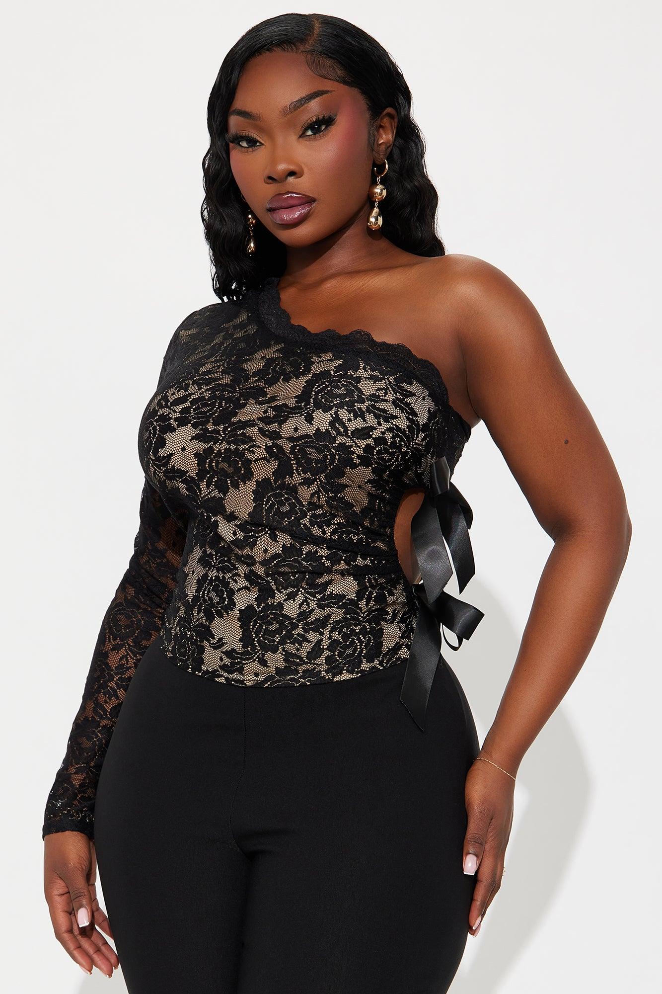Fearless Grace Lace One Shoulder Top - Black Female
