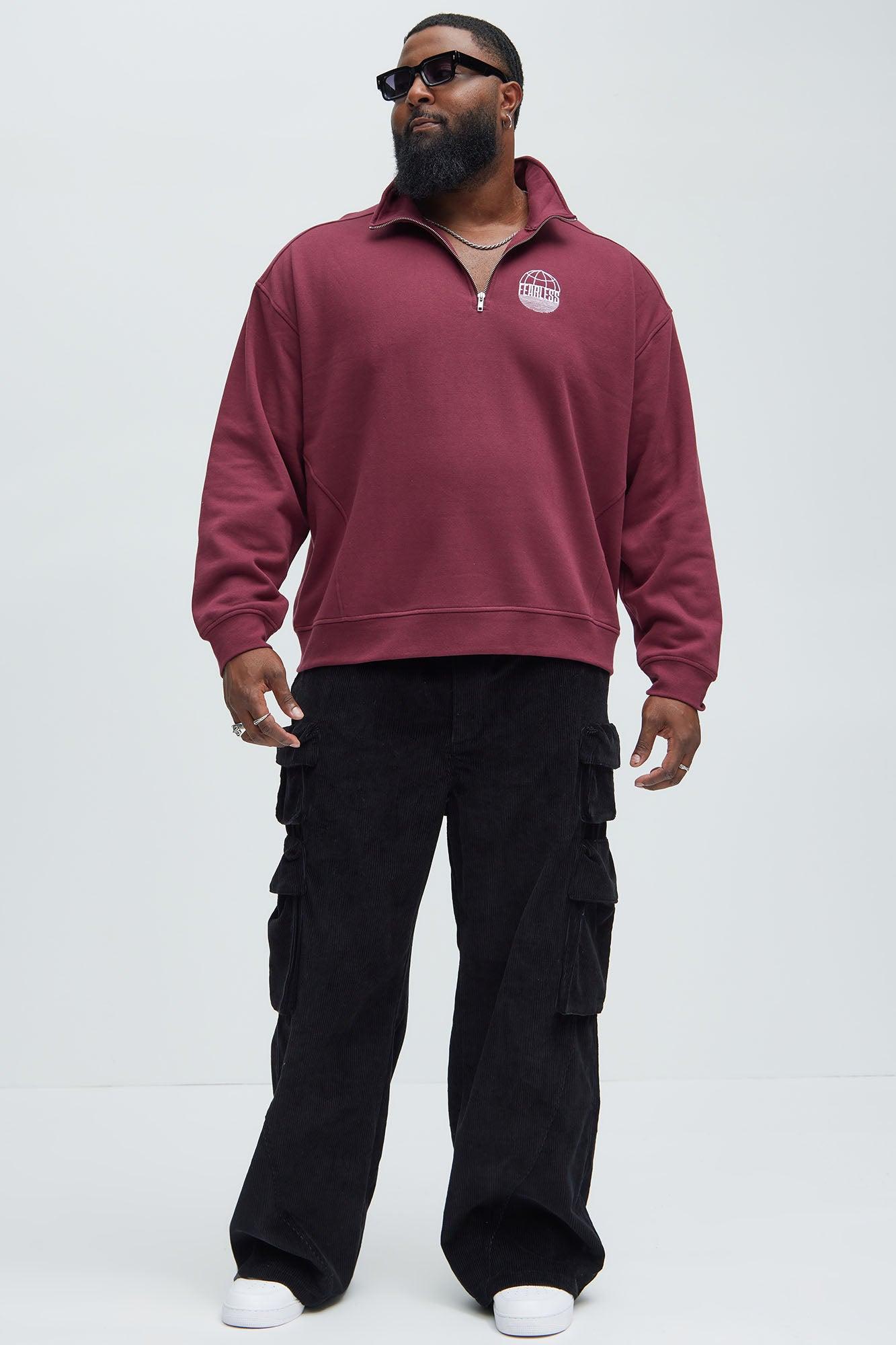 Available In Burgundy. Quarter Zip Long Sleeve Embroidered Detail 55% Cotton, 45% Polyester Disclaimer: Embroidery Placement Will Vary. Imported