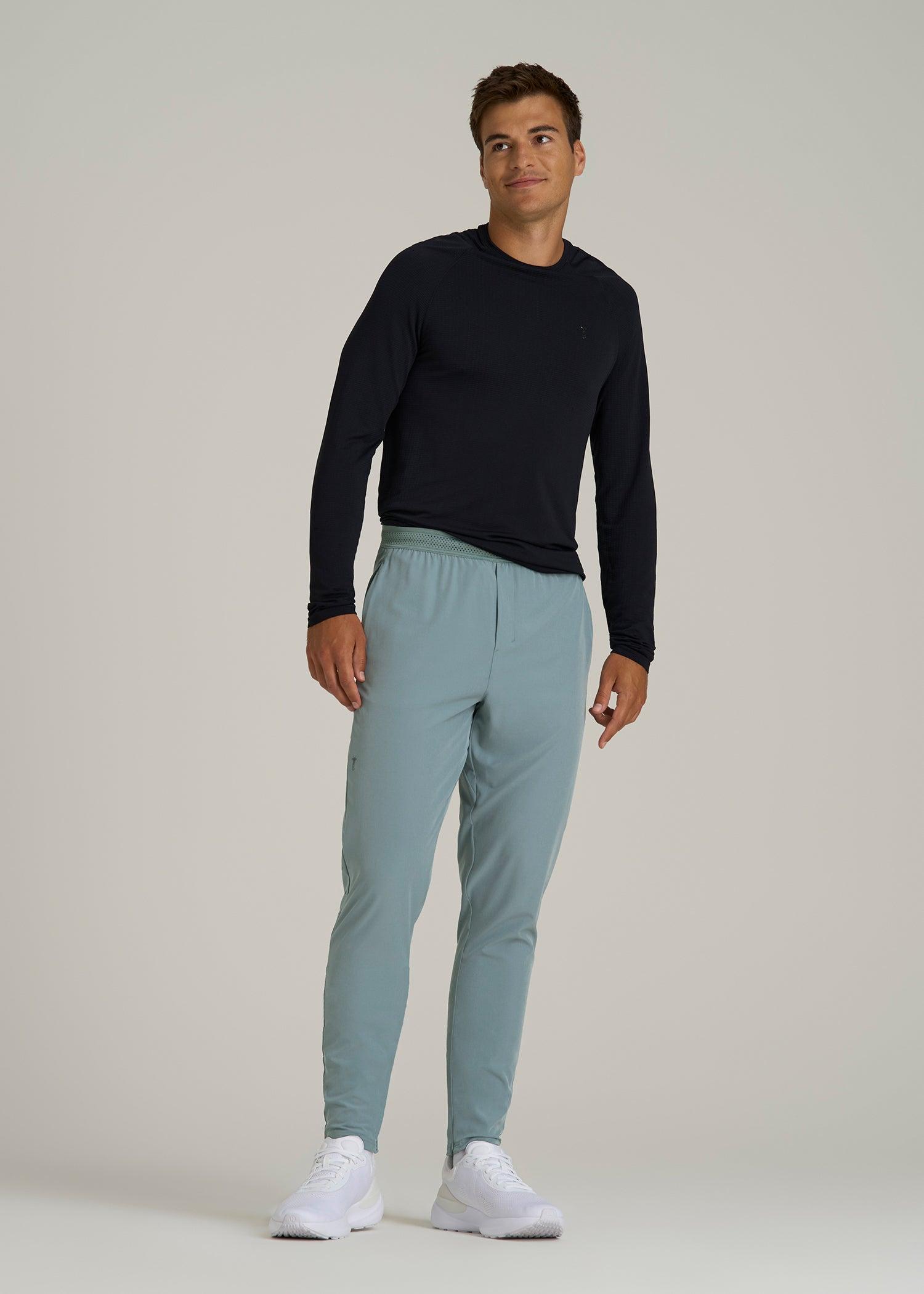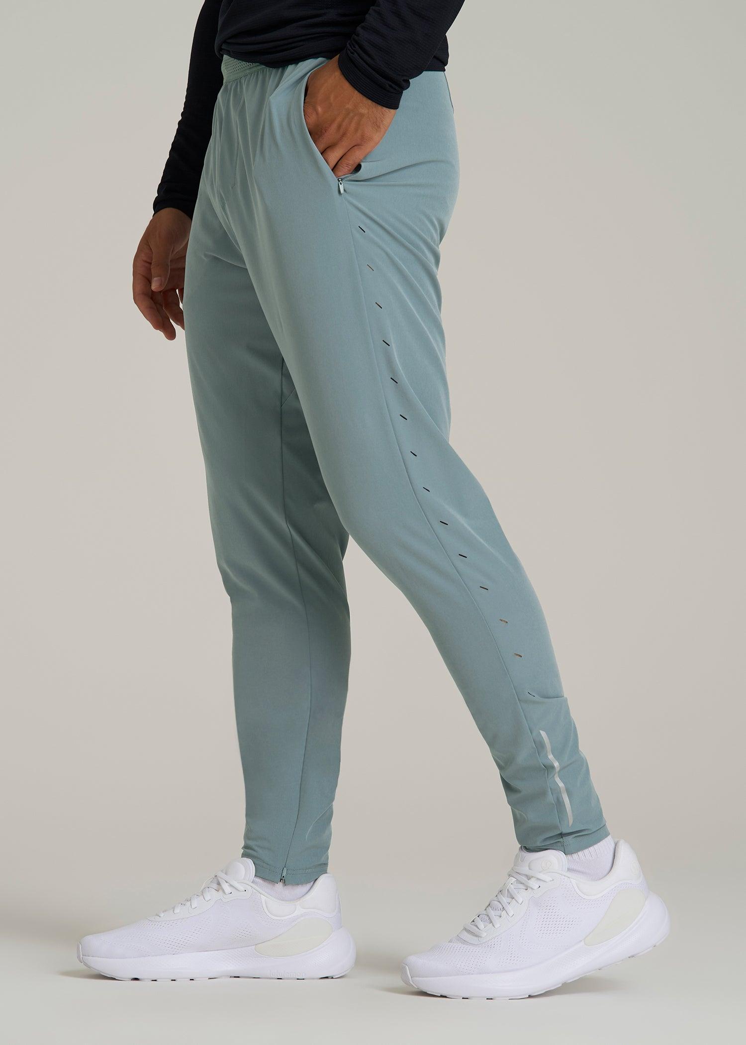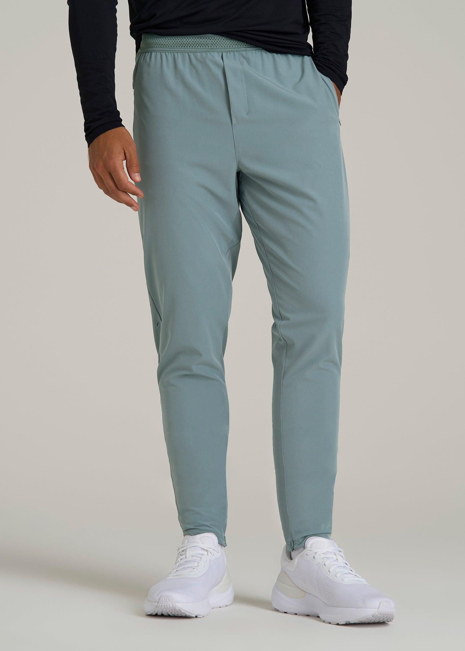 Glide Through the Miles Men's Tall Active Pants That Move With You Glide through miles in our Featherweight Running Pants, featuring lightweight, moisture-wicking fabric and subtle perforation for prime ventilation. Ideal for quick jogs or long runs, these athletic pants for tall guys include ankle zippers for easy off and on. Tackle the track with these extra-long track pants that keep you cool every step of the way.• Stretch waistband plus internal drawstring• Odor control keeps you fresh• Zipper pocket in the back for additional storage• Quick-dry fabric• Pre-washed for the perfect fit SIZE & FIT: Tall Inseam: 34" Extra Tall Inseam: 36" Full length Tapered ankle with zip detail True to tall sizing Model is 6'5" wearing size M Tall FABRIC & CARE: 90% polyester, 10% spandex Machine wash cold with like colors Tumble dry low Do not bleach Low heat iron