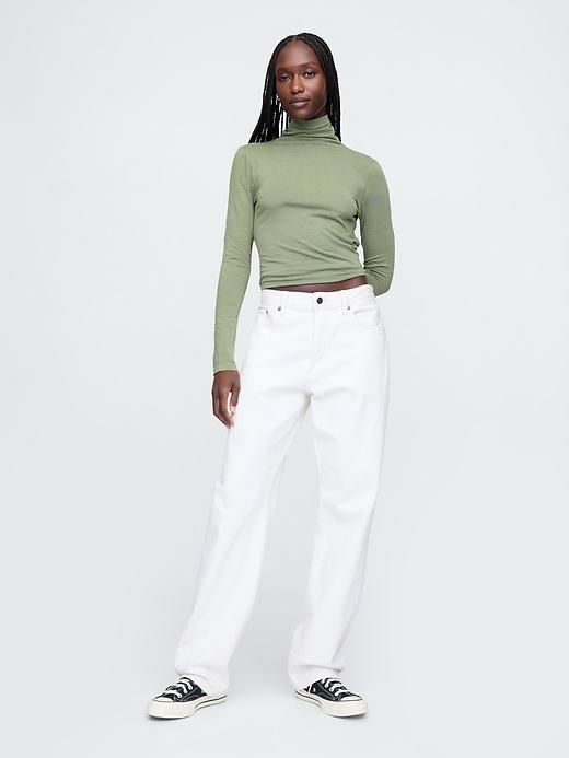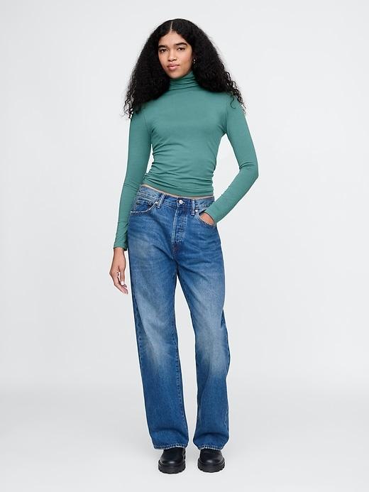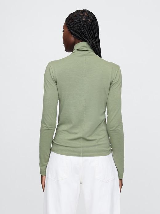 Soft stretch knit turtleneck. Turtleneck. Long sleeves. Seam detail at back. #625610