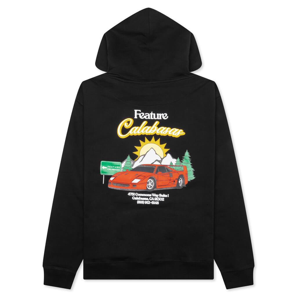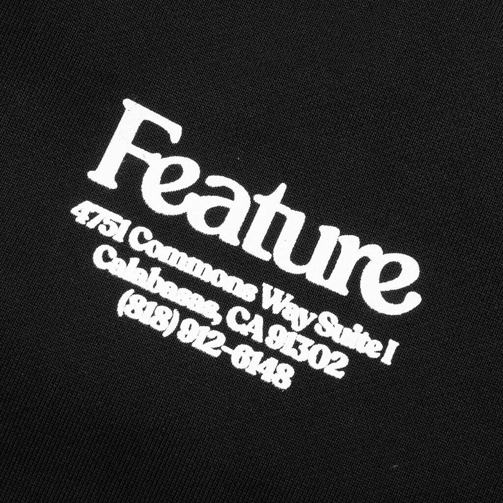 The Feature C-40 Hoodie in Black combines everyday comfort with signature branding. Crafted from cotton, this relaxed-fit hoodie features screen-printed graphics at the chest and back, including the FEATURE Calabasas address for a localized touch. A kangaroo pocket and ribbed cuffs and hem complete the design, making it a versatile go-to for any wardrobe. 100% Cotton Relaxed fit Screen printed graphic at chest and back Kangaroo pocket Ribbed cuffs and hem FEATURE Calabasas Address Style No: F022924X01