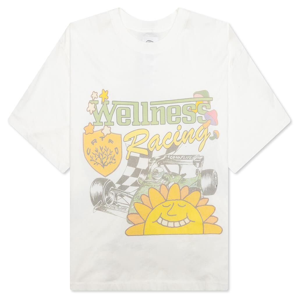 The FEATURE x CRTFD Wellness Racing T-Shirt in White is made from lightweight cotton. It features a custom boxy cut and vintage-inspired look, achieved through direct-to-garment printing and an enzyme wash for added softness and character. THIS PRODUCT DOES NOT QUALIFY FOR DISCOUNTS OR SPECIAL PROMOTIONS. ALL SALES ARE FINAL. 100% Lightweight Cotton Custom boxy cut Vintage inspired tee Direct to garment print Enzyme wash Style No: 0941FC-WHT