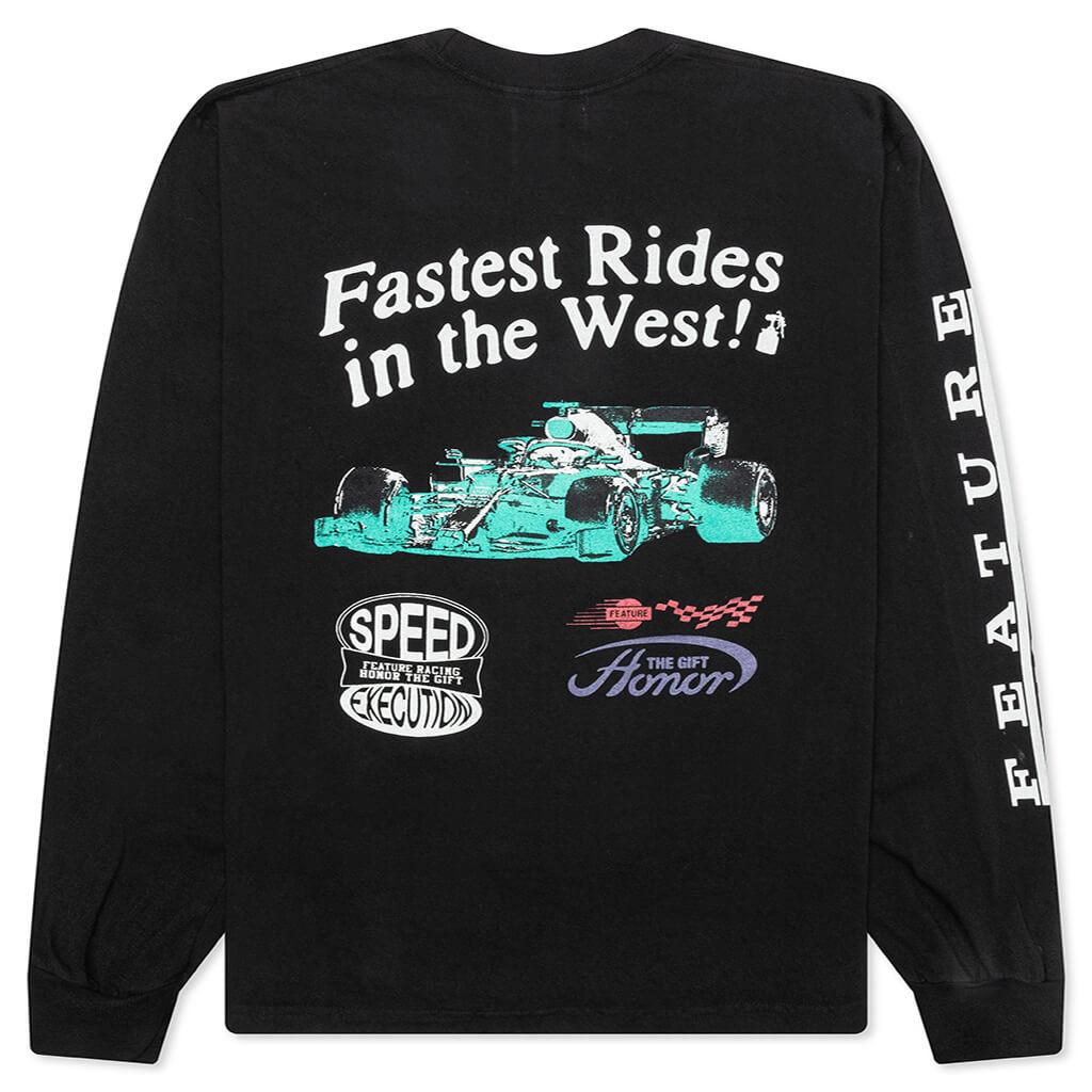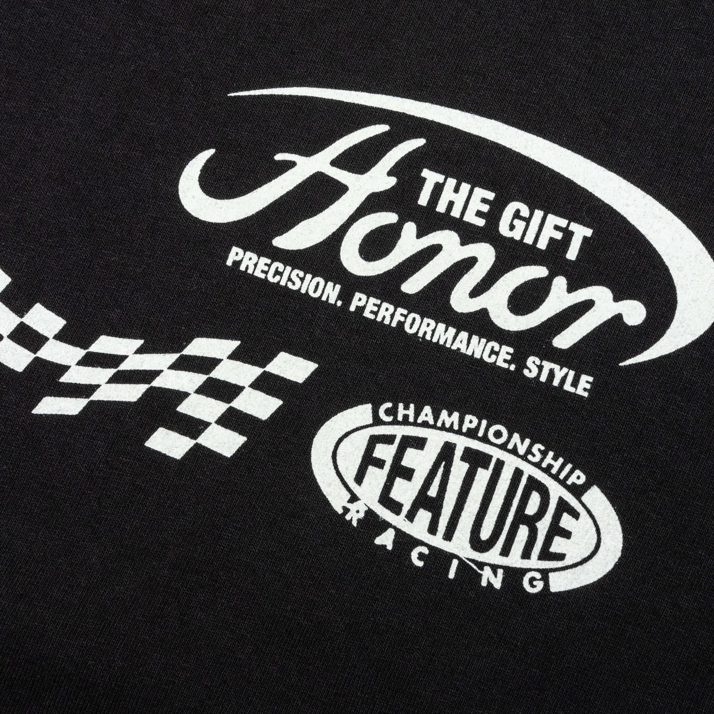 The FEATURE x Honor The Gift Fastest Rides L/S Tee in 'Faded Black' combines motorsport-inspired style with a premium streetwear feel. Crafted from cotton in an oversized fit, this long-sleeve tee features co-branded graphics on the front, back, and sleeves for a bold, all-around look. A woven label tag at the seam adds a final touch, embodying the energy and collaborative spirit of FEATURE and Honor The Gift. 100% Cotton Oversized fit Co branded printed graphic on front, back, & sleeves Motorsport inspired graphics Woven label tag at seam Style No: HTG240502-BLK