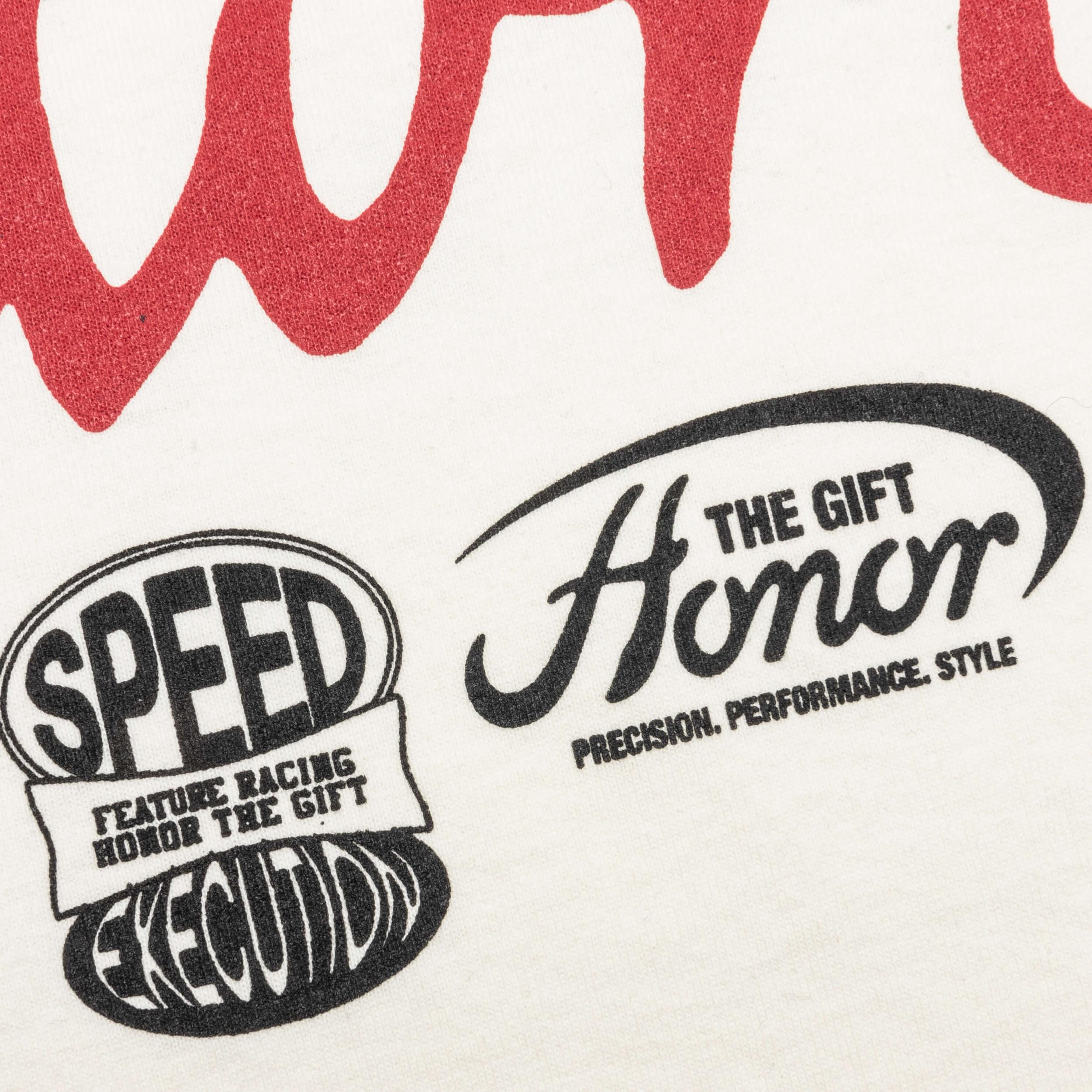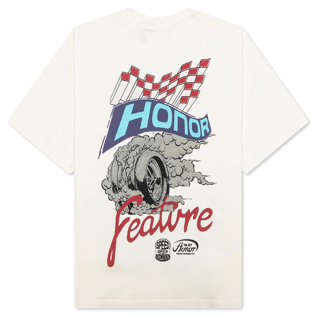 The FEATURE x Honor The Gift Speed Tee in White brings motorsport energy to a classic oversized fit. Constructed from cotton, this tee is adorned with co-branded graphics at the chest, back, and sleeves, capturing the dynamic spirit of the track. A woven label tag at the seam completes the design, blending FEATURE's attention to detail with Honor The Gift’s bold aesthetic for a statement piece that stands out in any collection. 100% Cotton Oversized fit Co branded printed graphic at chest, back, & sleeves Motorsport inspired graphics Woven label tag at seam Style No: HTG240503-WHT