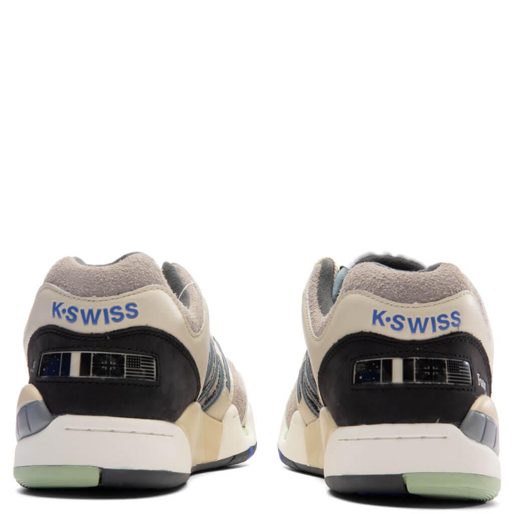 FEATURE joins the heritage lifestyle tennis label K-Swiss to introduce the newest iteration of the ‘Si-18 International.’ First introduced in 1989, the Si-18 International is an iconic representation of K-Swiss’ dedication to honoring athletic heritage while optimizing performance for future design. The FEATURE x K-Swiss collab sports a Marshmallow leather upper with Pistachio Shell leather overlays in the form of the brands signature D-ring stripes. FEATURE and K-Swiss branding is debossed on the lateral side of the sneaker while Marshmallow and black leather detailing run up along the collar and around the heel. Foam cushioning and a rubber outsole prioritize comfort, finishing the look. DUE TO THE NATURE OF THIS PRODUCT, ALL SALES ARE FINAL. Leather upper Leather overlays D-ring eyelets Debossed branding Rubber outsole Foam cushioning Style No: 78833-204-M